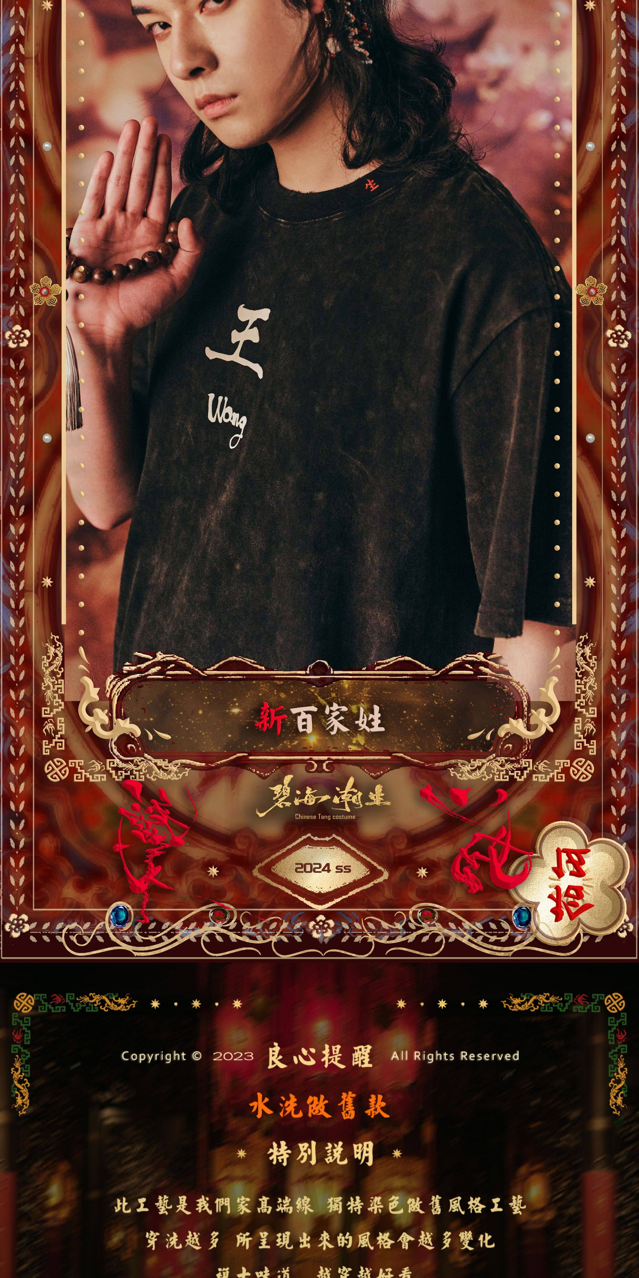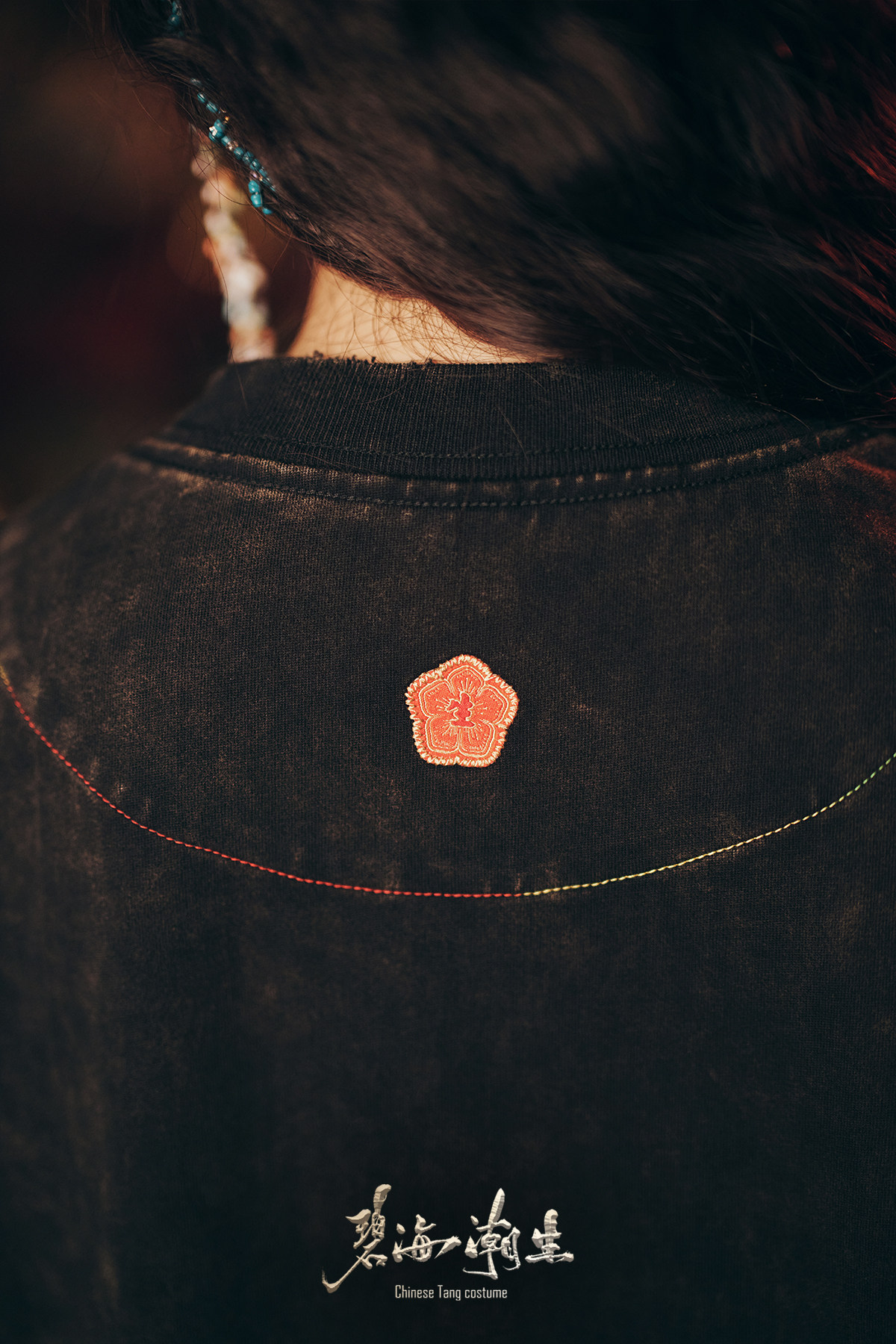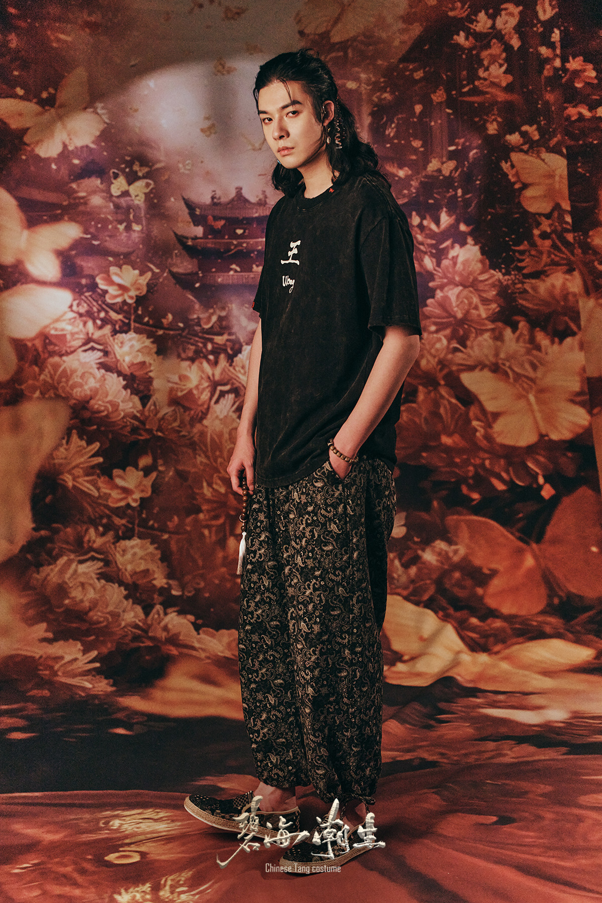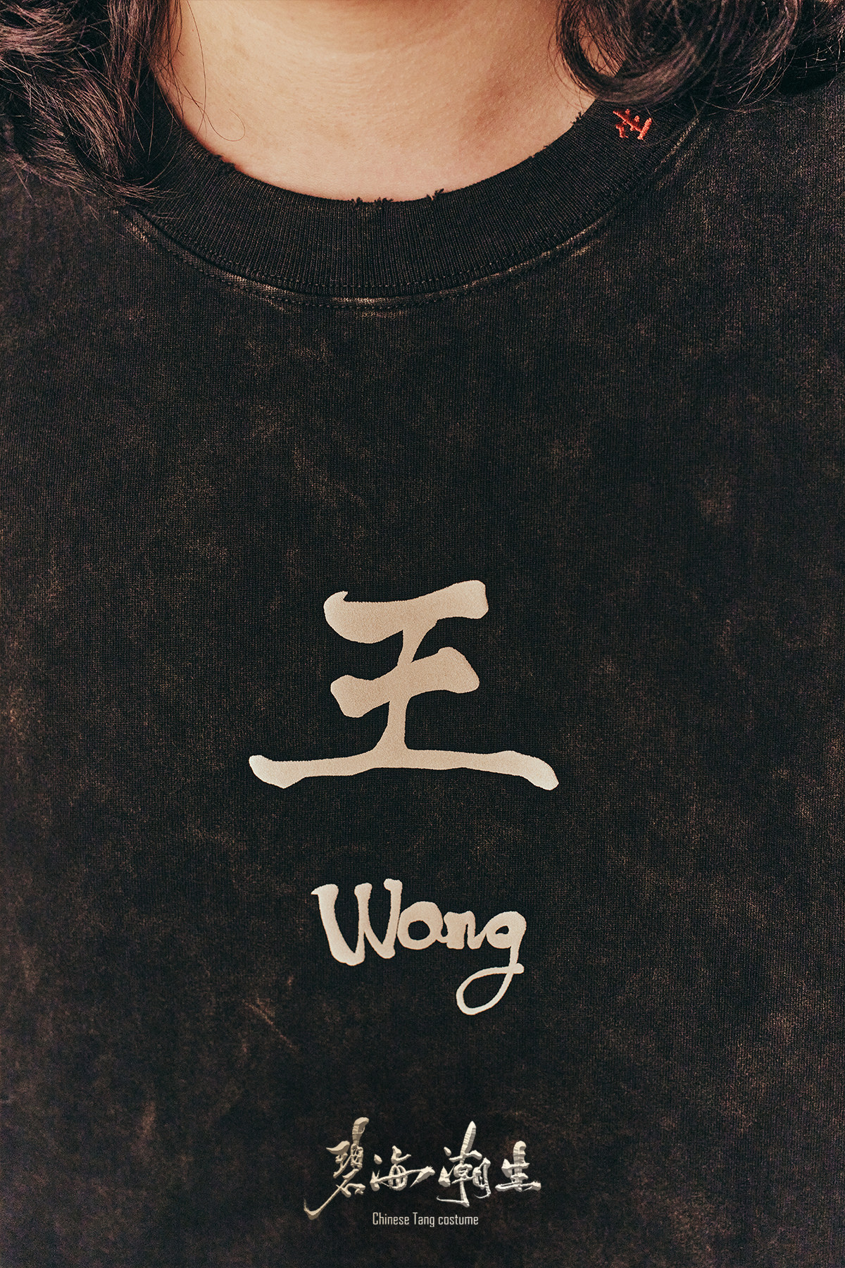 Spring and Summer New Chinese Style Pure Cotton Printed Washed Black Short-Sleeve T-Shirt with the Surname of Bi Hai Chao Sheng (碧海潮生)