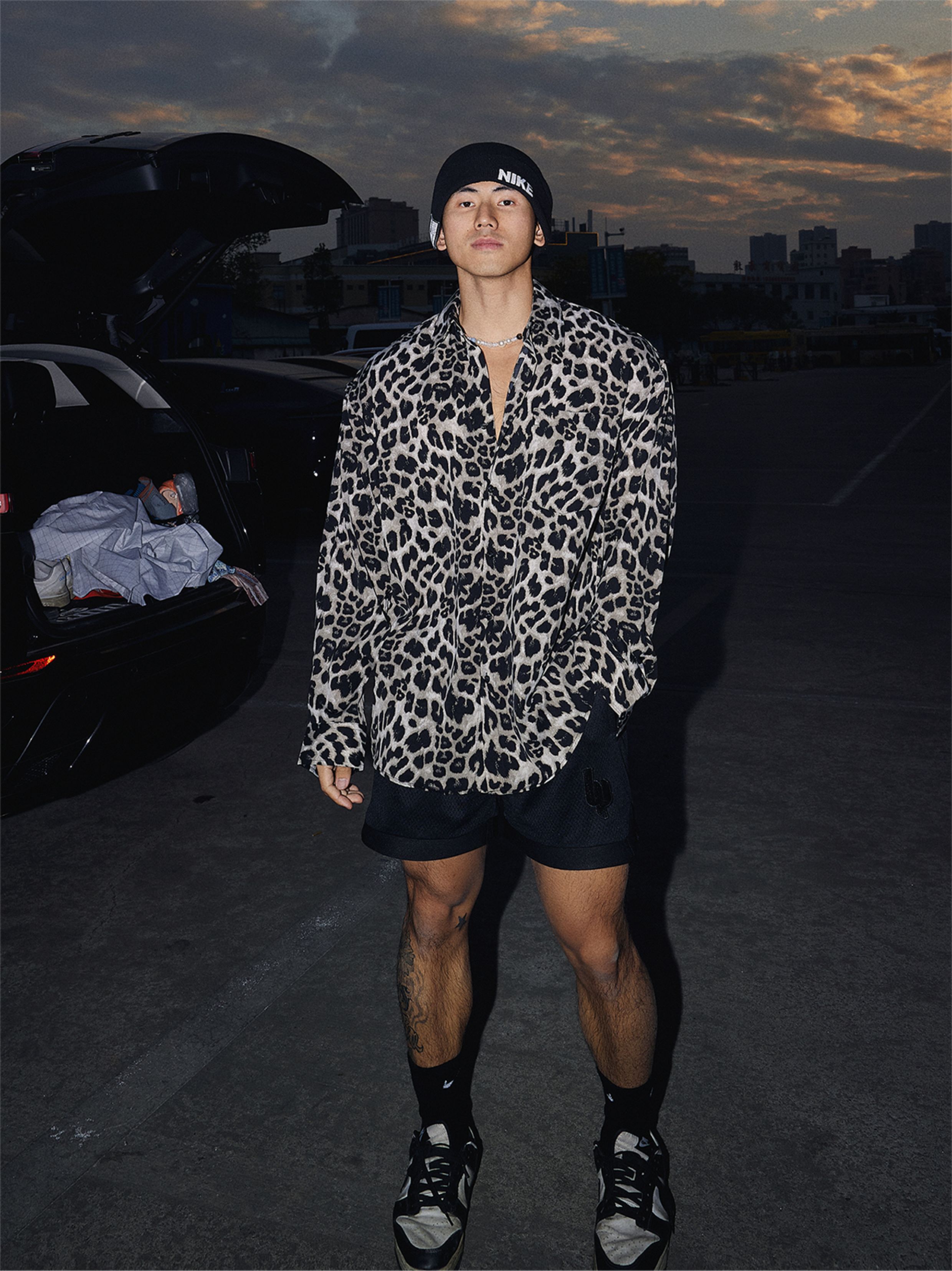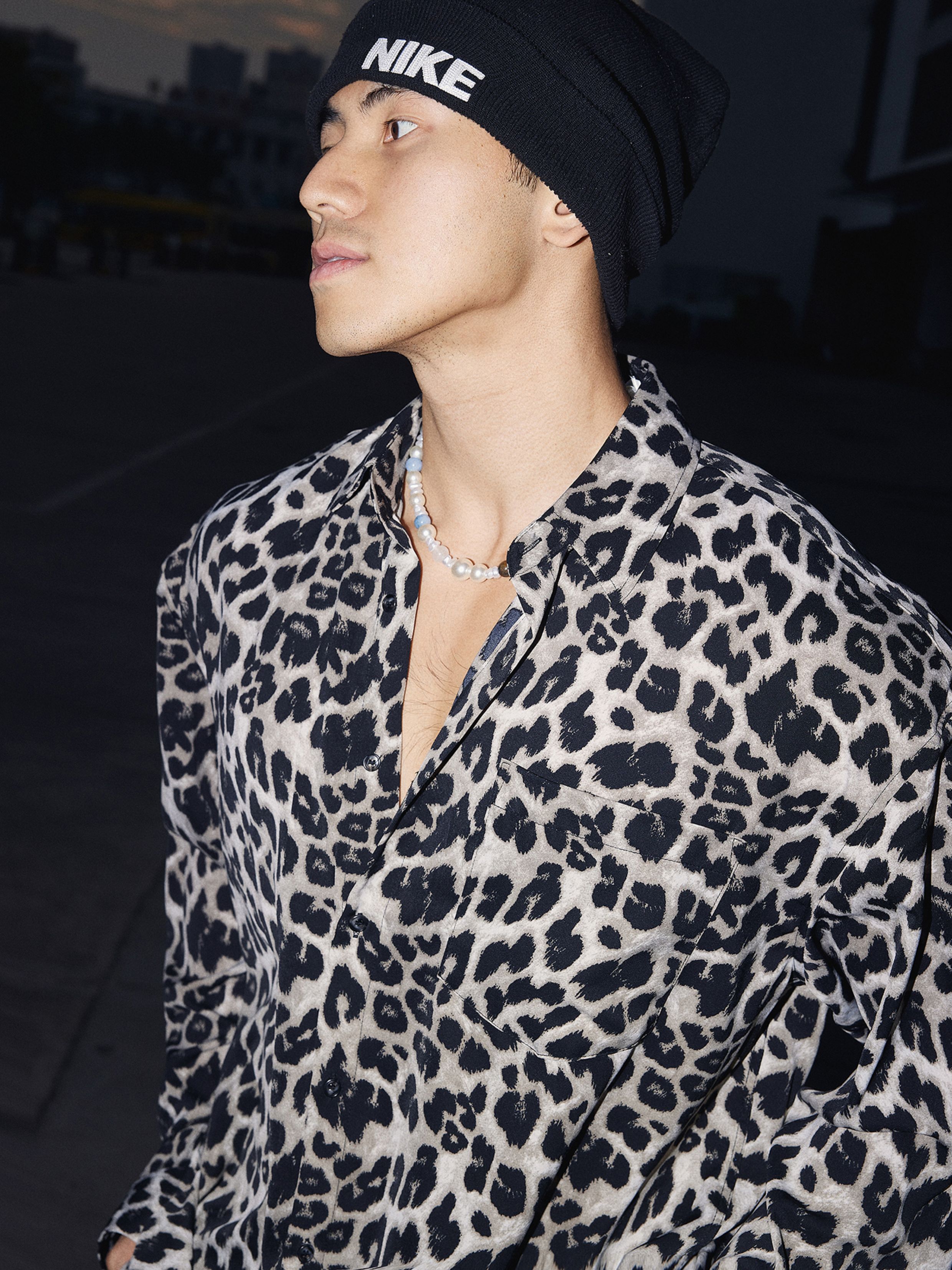 Papaslilmonster American Style Mature and Restrained Leopard Print Shirt for Men, Cool and Stylish Spring/Summer Shirt