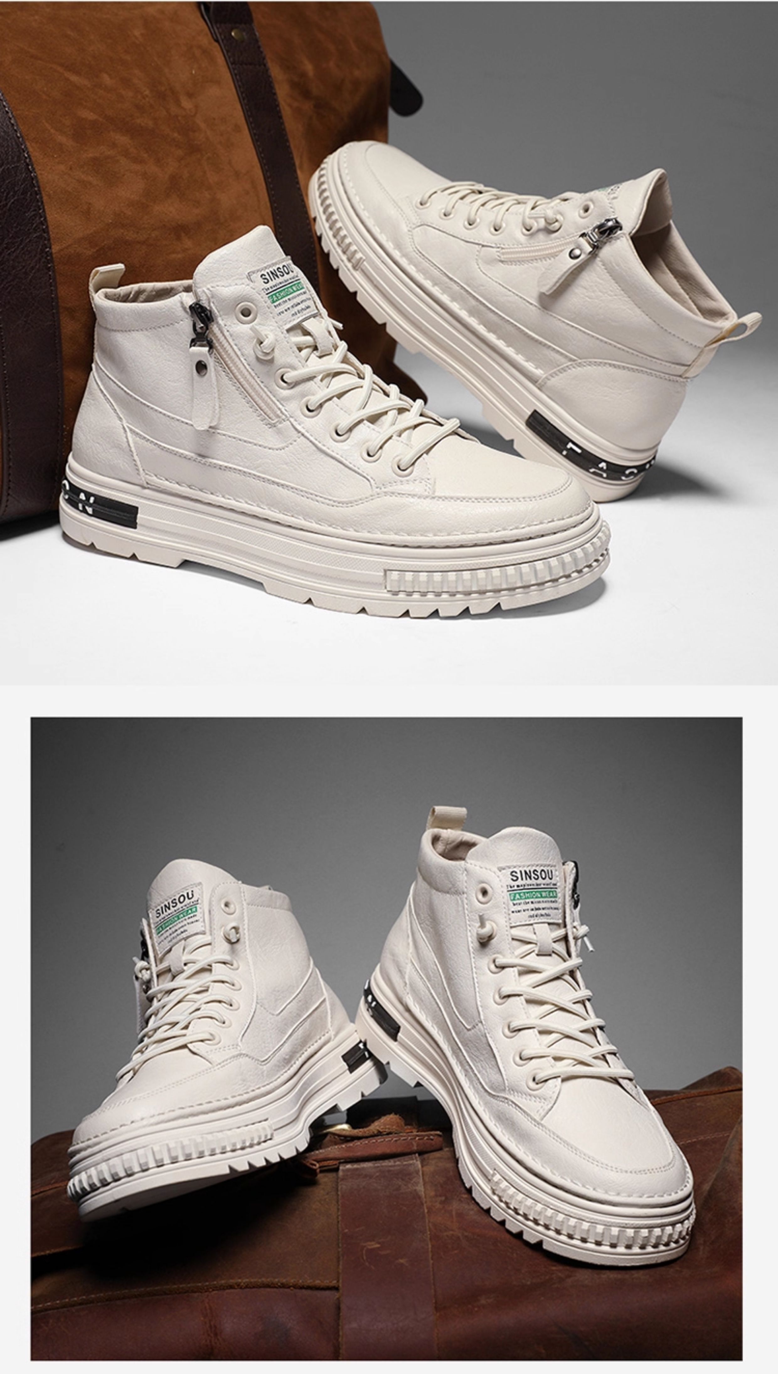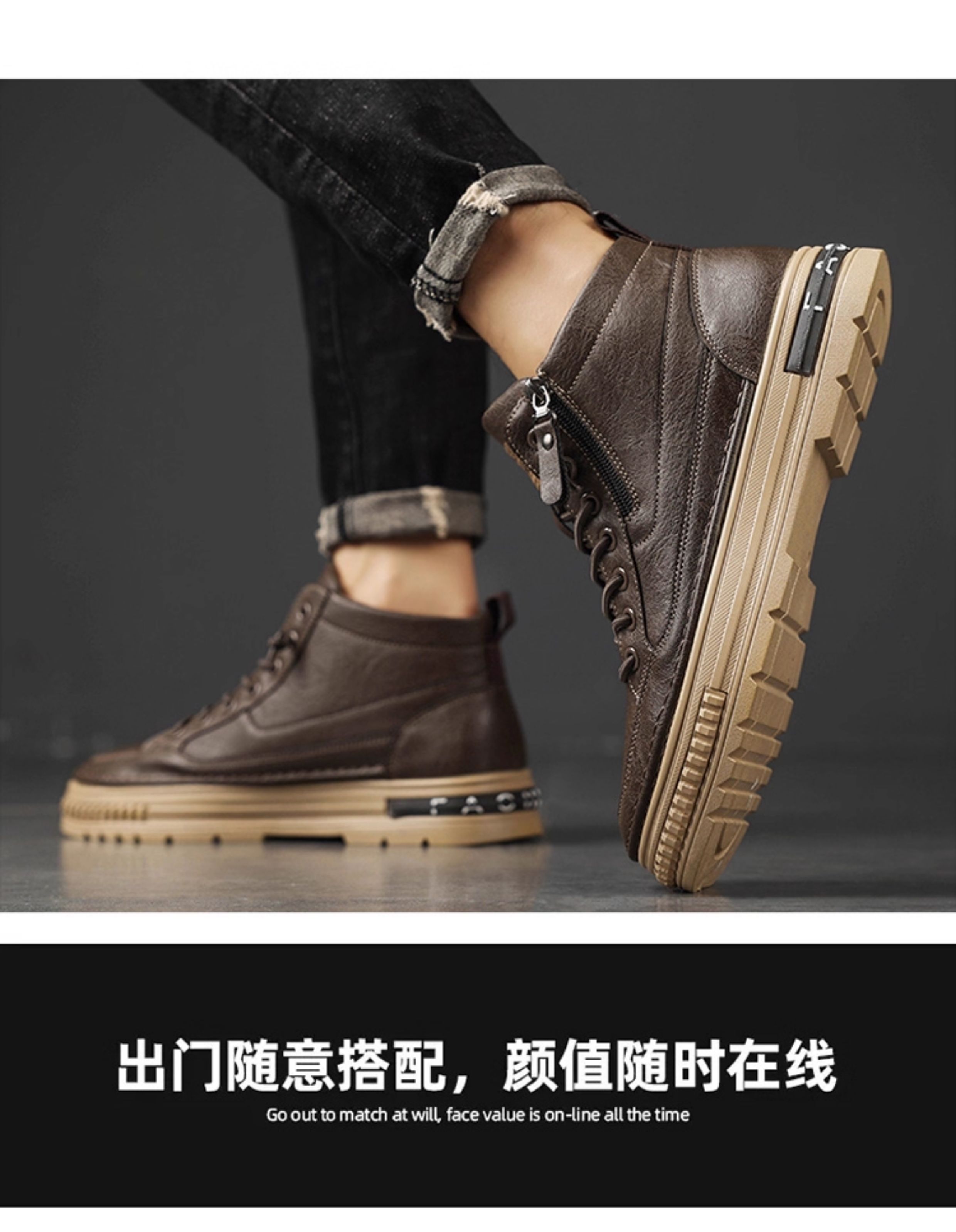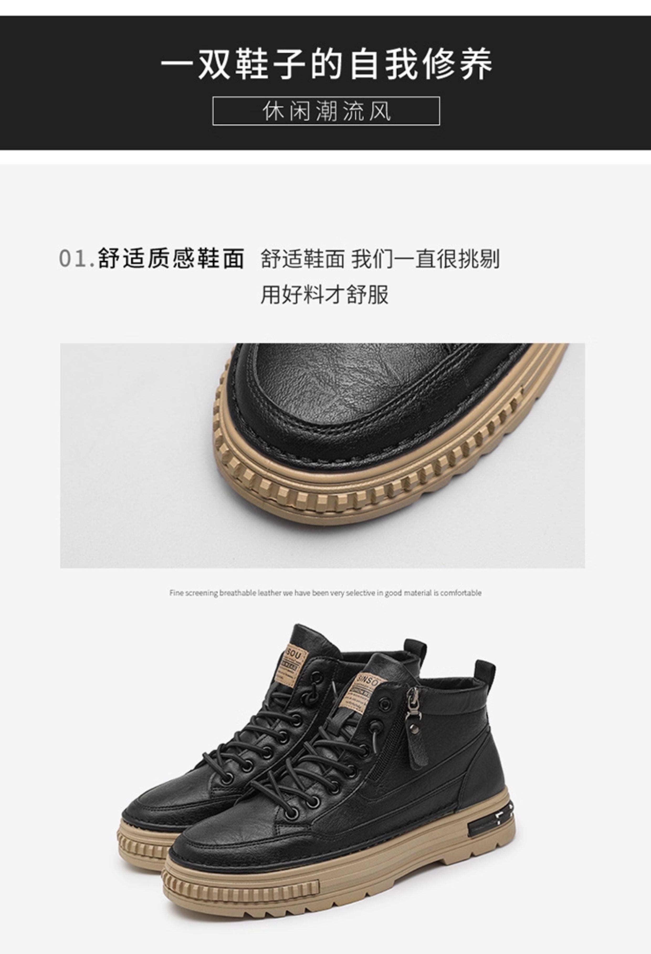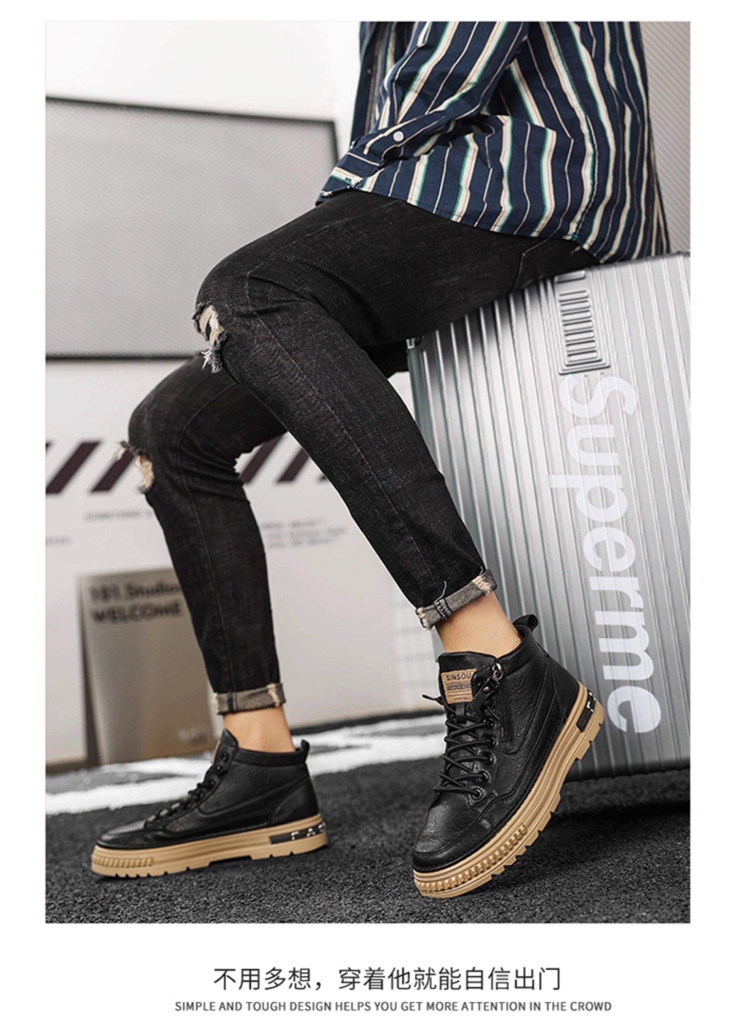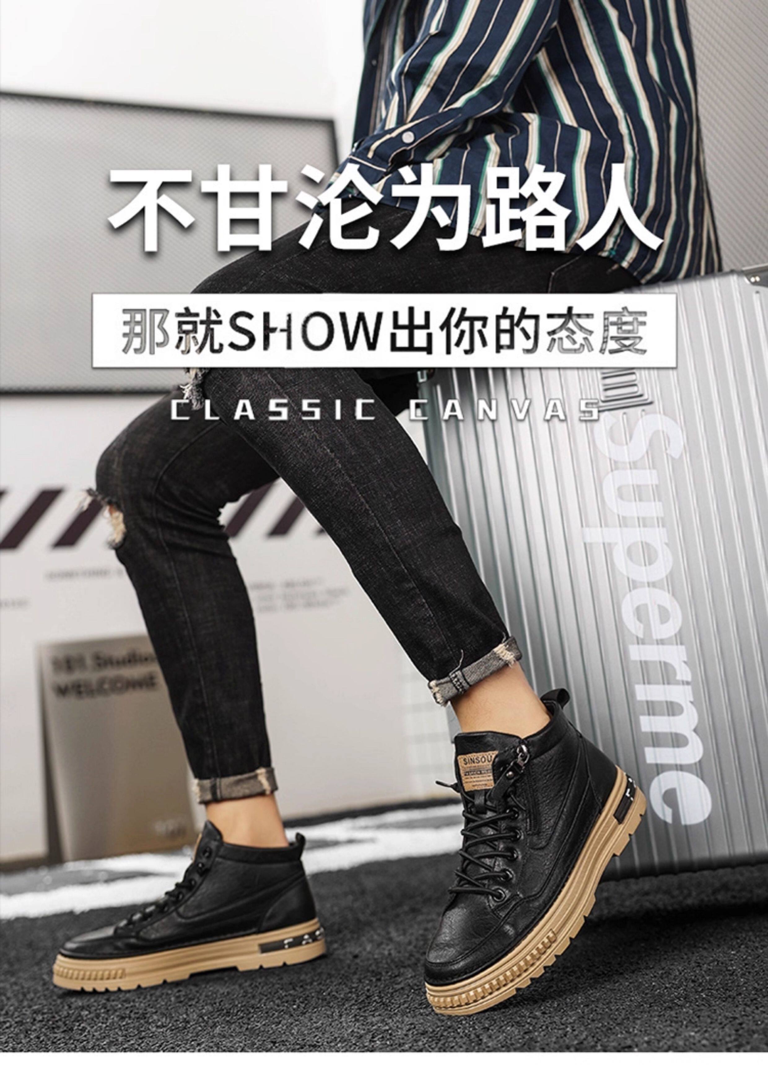 Invisible Height-Increasing Men's Shoes 10cm Versatile Casual Black Leather Shoes Men's Thick-Soled High-Top Martin Boots Winter Fleece-Lined