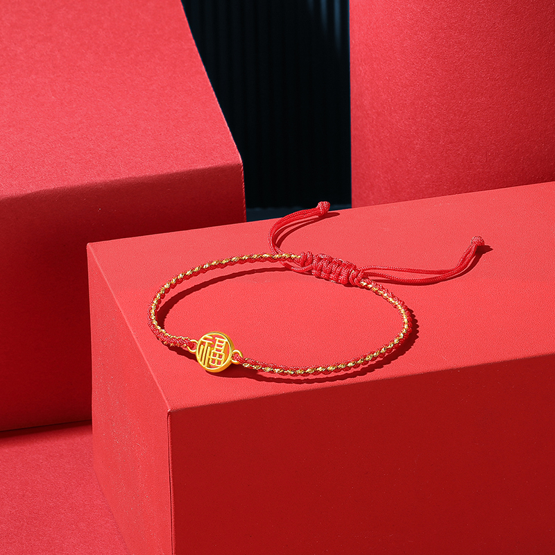 Chow Tai Fook Good Things Happen Pure Gold Bracelet Gold Cord 5D Hard Gold Hollow Fortune Pendant Red String Gift Birthday