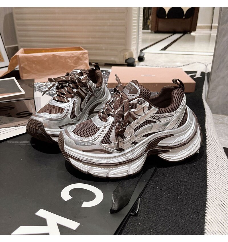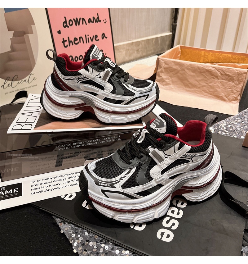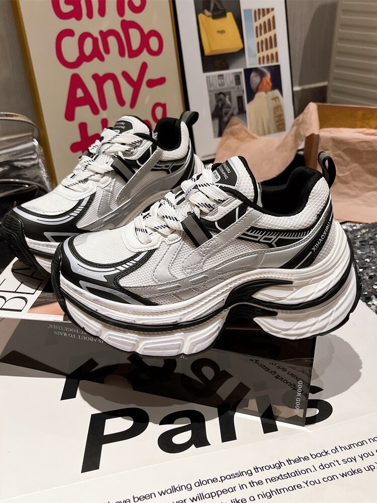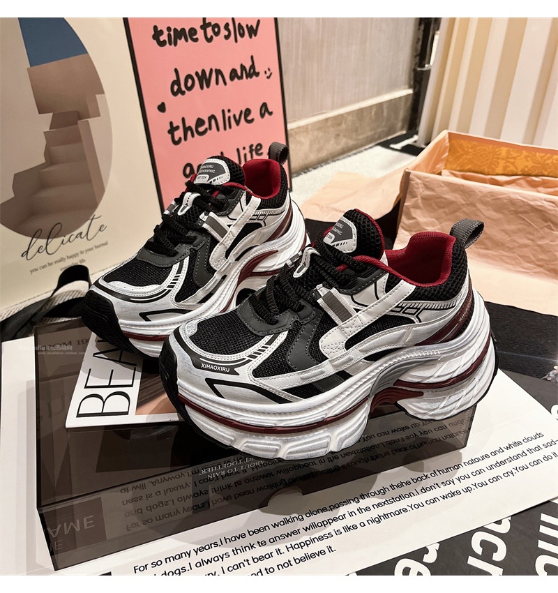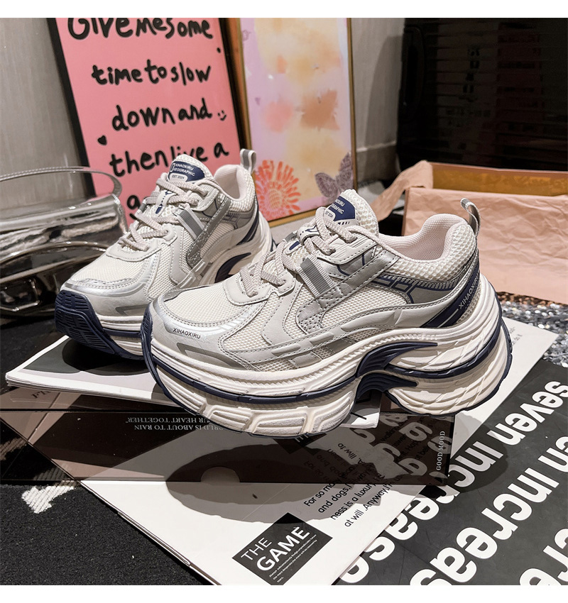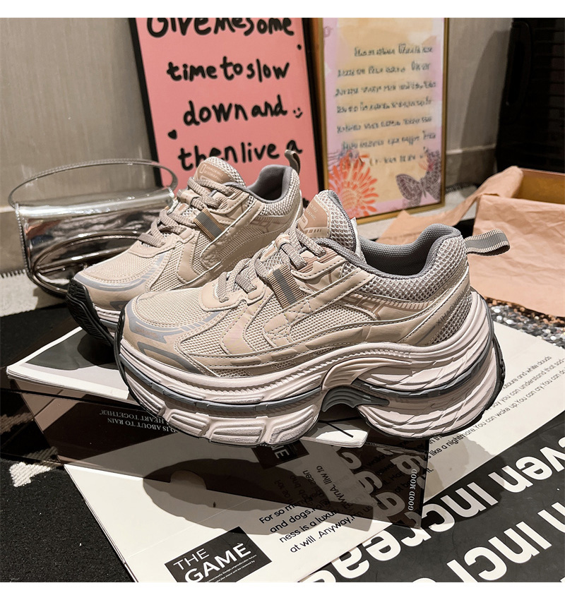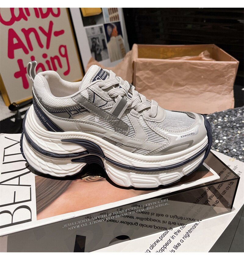 Hong Kong Style Thick-Soled Height-Increasing Mesh Dad Shoes for Women, 2025 Spring and Autumn New Fashion Versatile Casual Sneakers