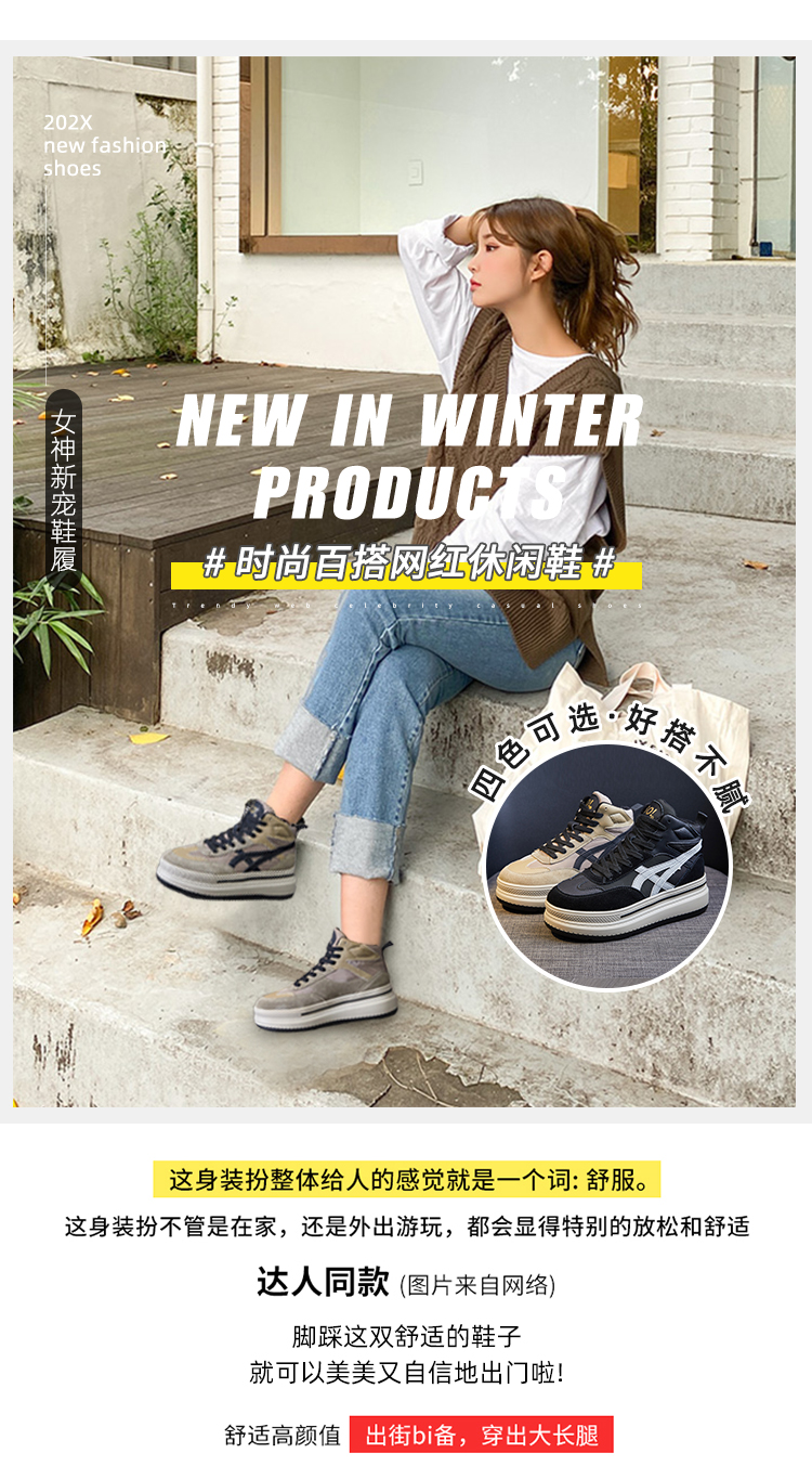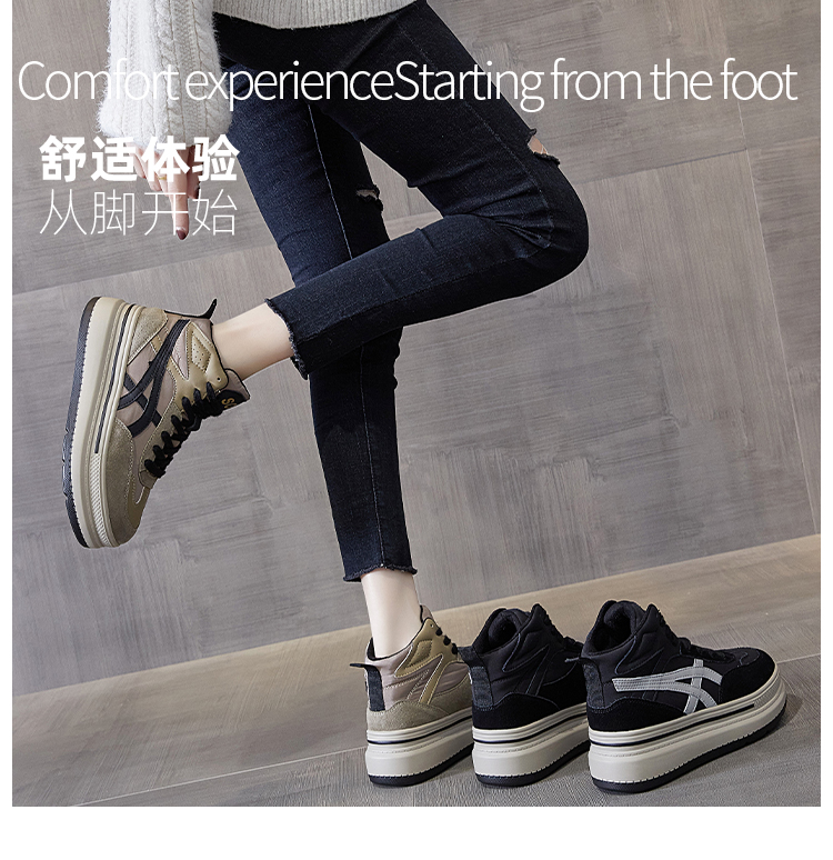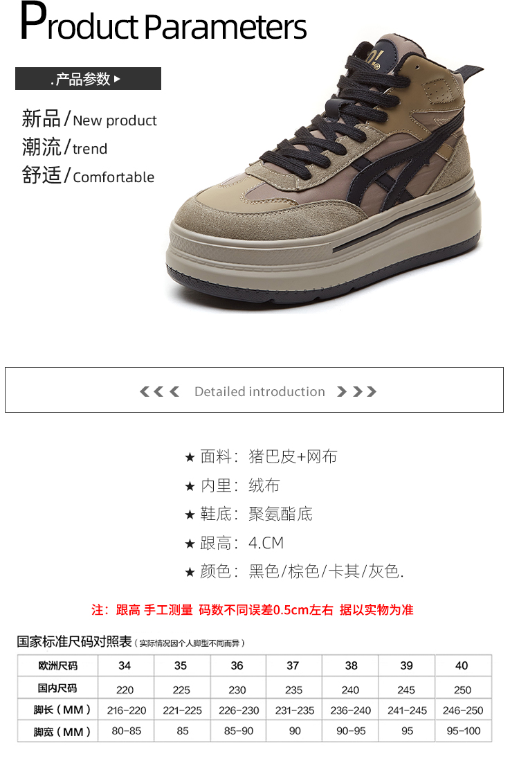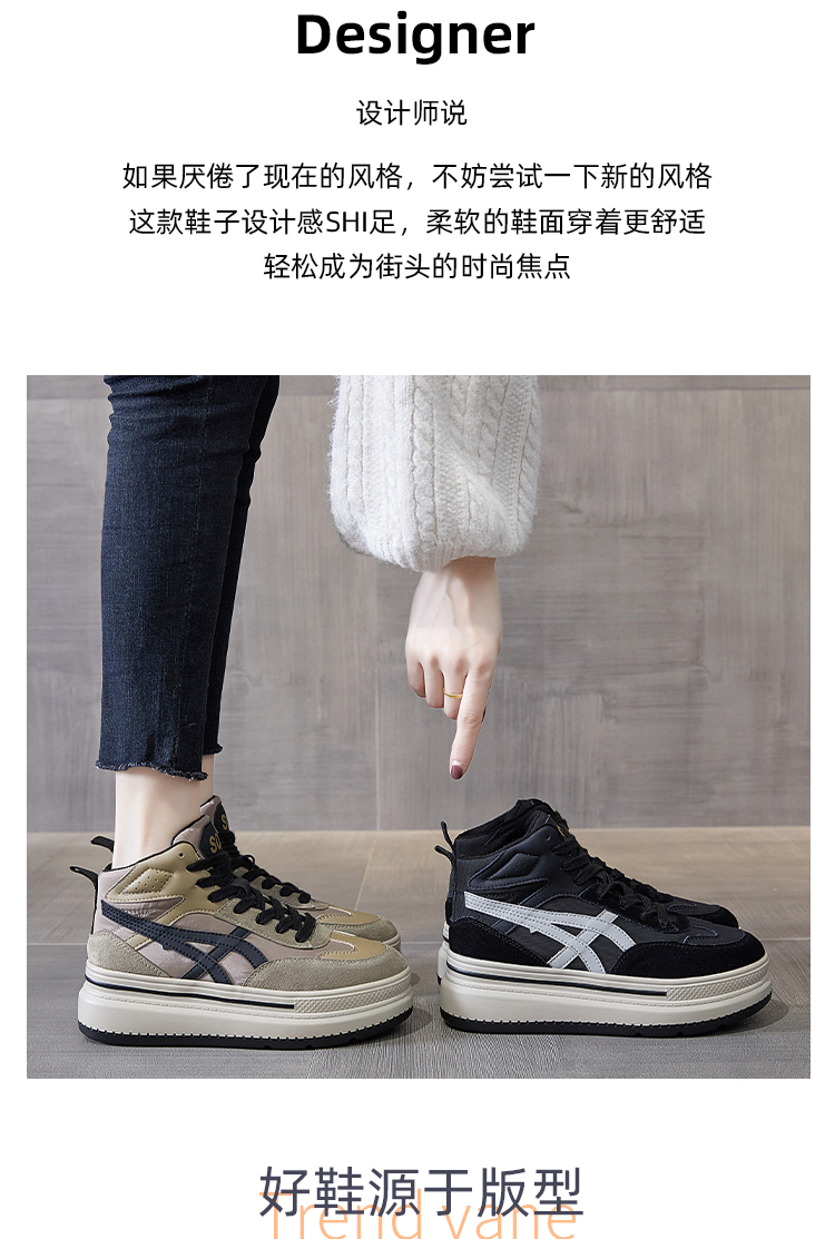Celebrity-Style High-Top Shoes for Women, 2024 Spring and Autumn Hot-Selling Versatile Thick-Soled Height-Increasing Platform Casual Internet Celebrity Sneakers