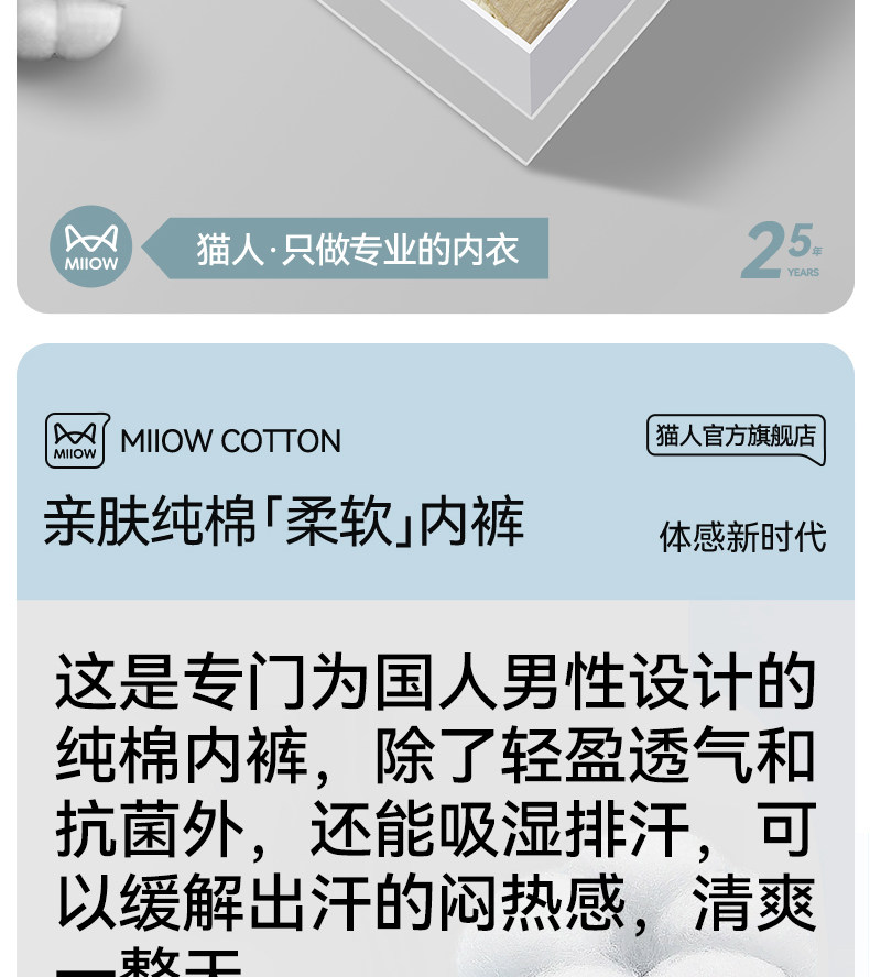 Catman Men's Pure Cotton Underwear 2025 New Seamless Large Size 7A Grade Breathable Antibacterial Youth Boxer Shorts
