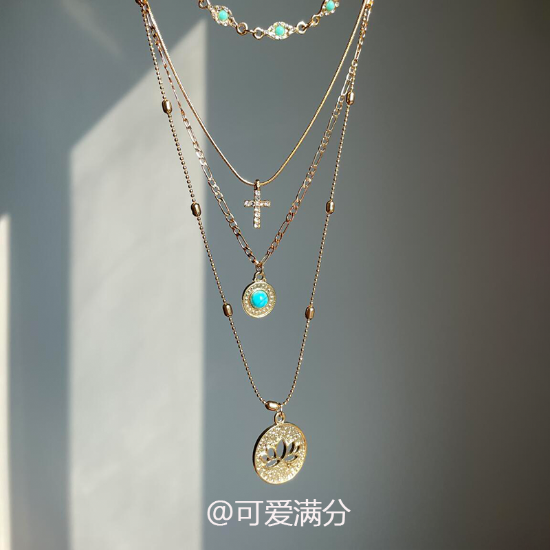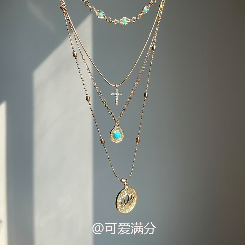 「Strolling on the Sea Island」European and American Retro Hollow Flower Cross Necklace, High-End and Exquisite Multi-Layered Clavicle Chain
