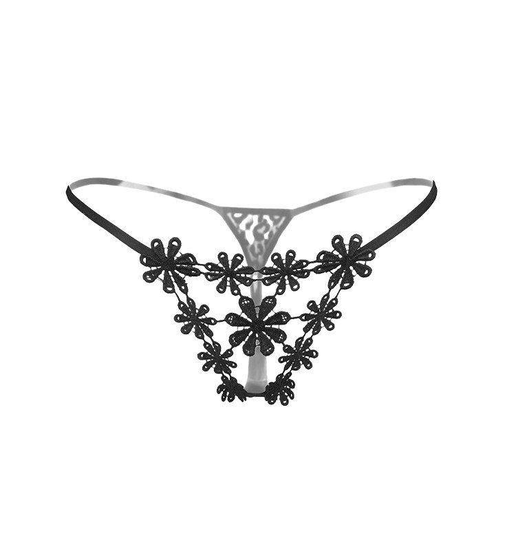 British Herberly Sexy Women's Underwear New Petal Embroidery Crotchless Panties Tempting Hollow-Out Thong T-Pants