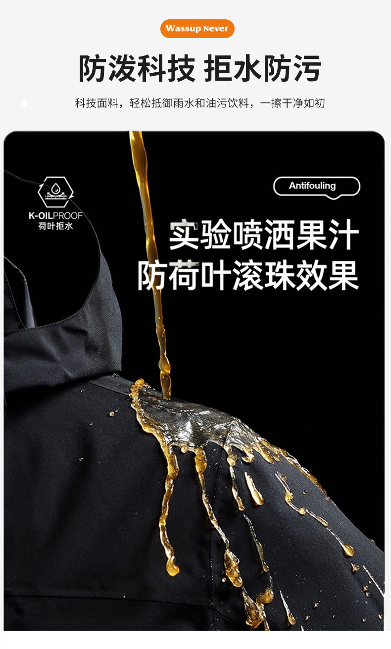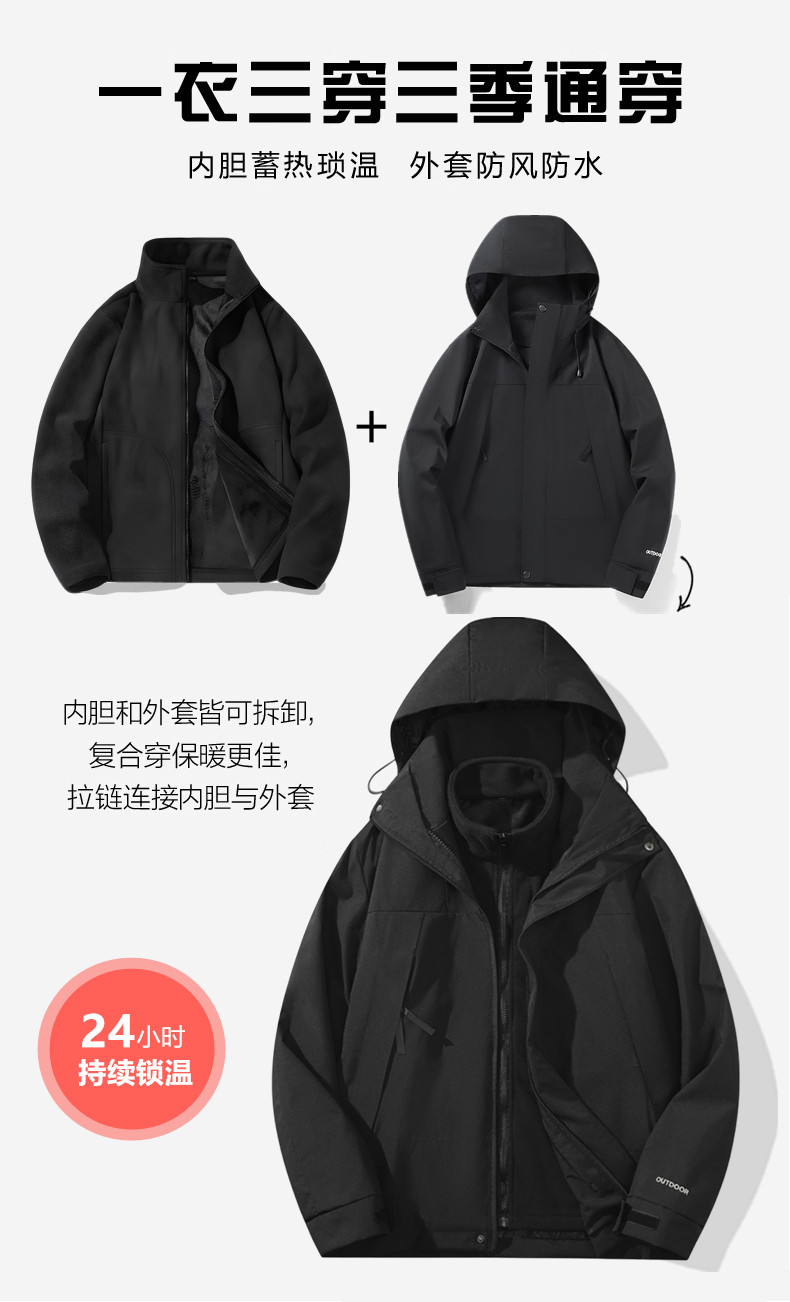 Wassup Never Outdoor Jacket for Women 2025 New Mountaineering Windproof and Waterproof Three-In-One Men's Black Jacket