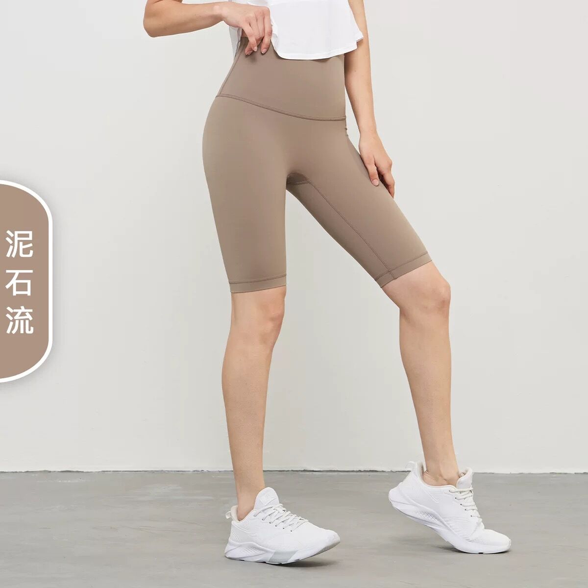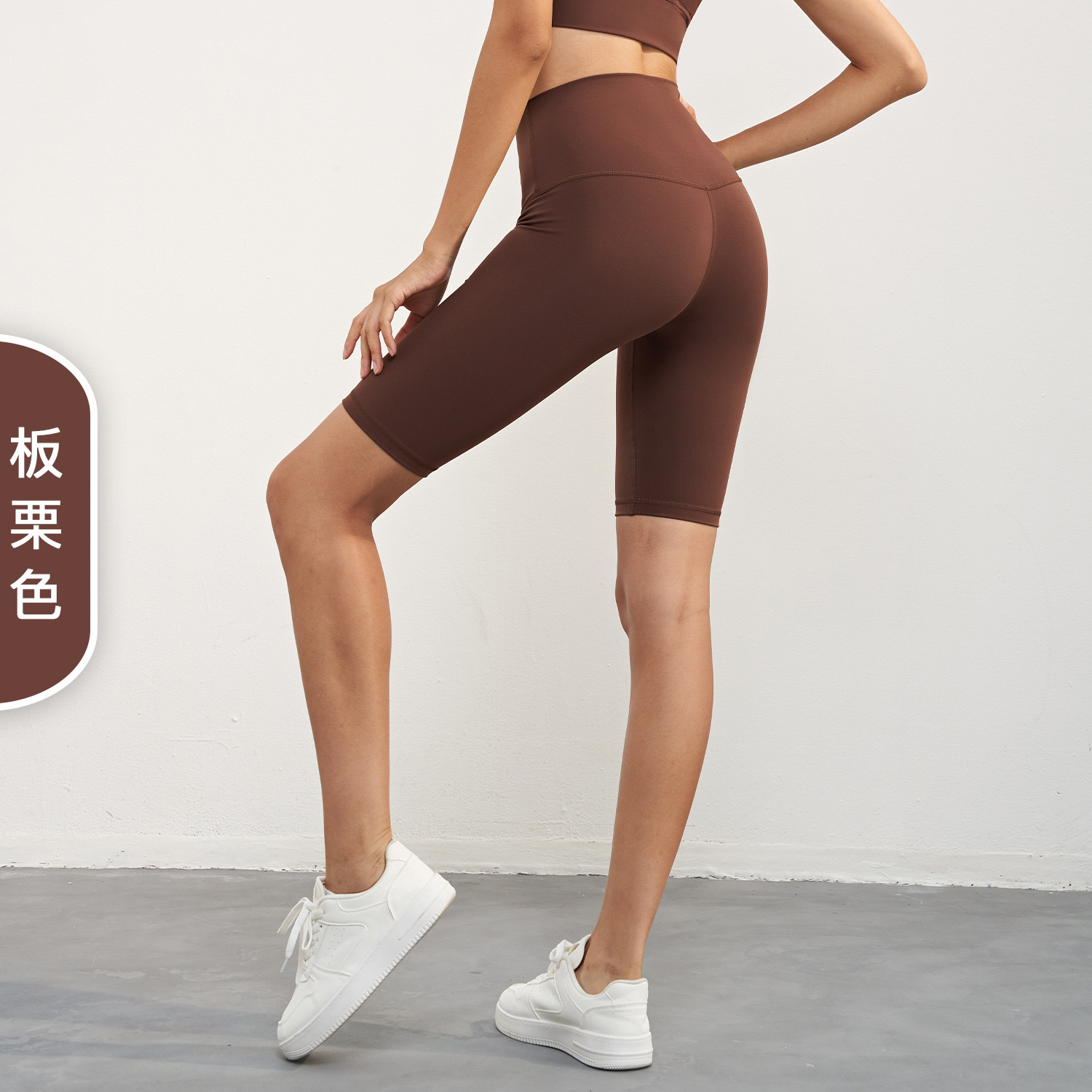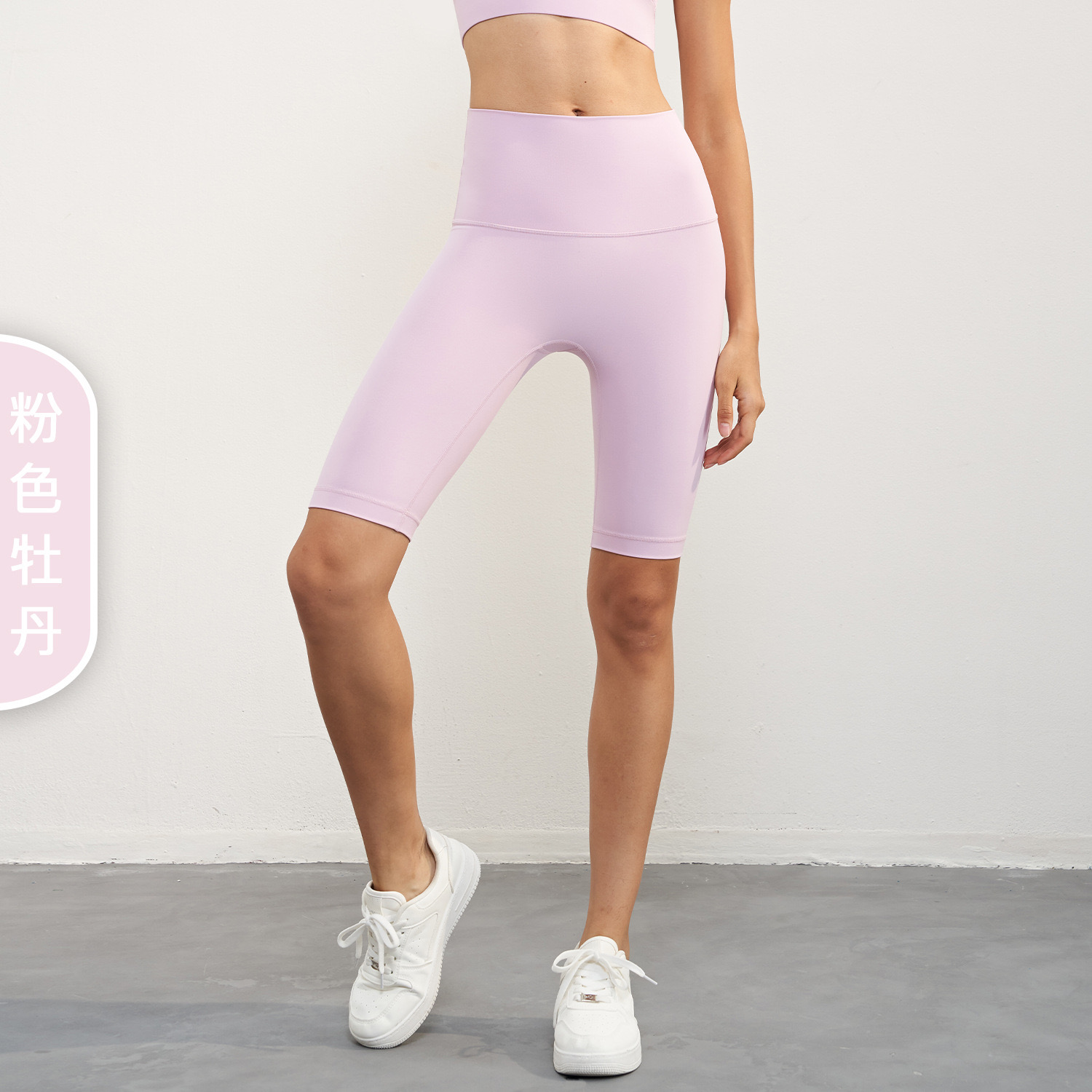 So Comfortable Series Double-Sided Brocade High-Waisted Nude-Feel Fitness Pants Peach Butt Five-Point Leggings for Women to Wear as Outerwear in Summer