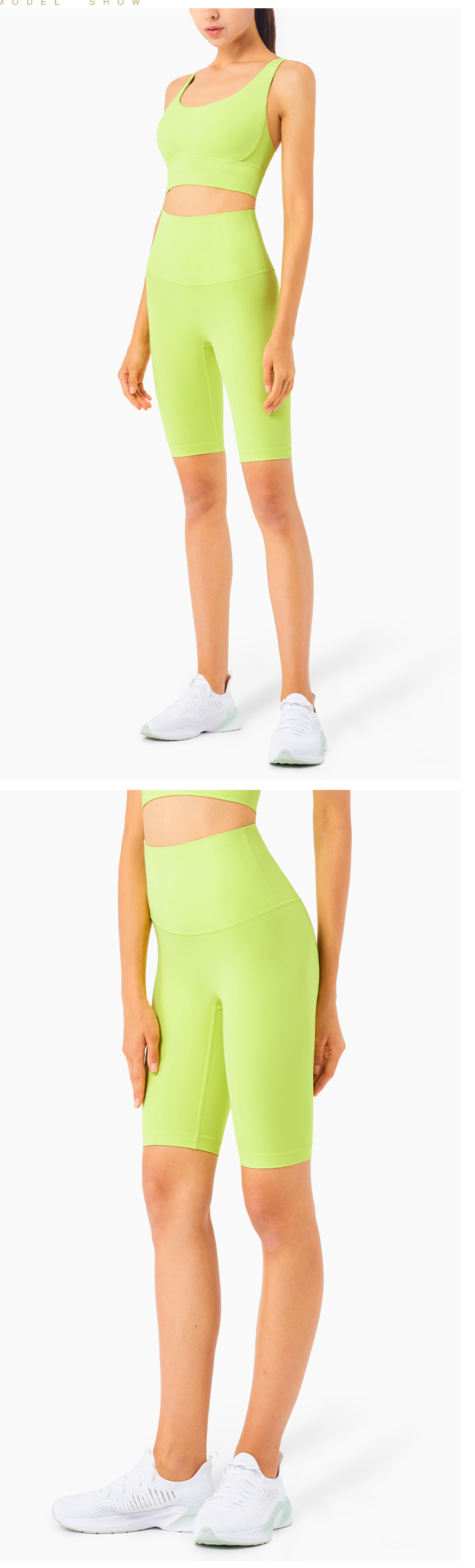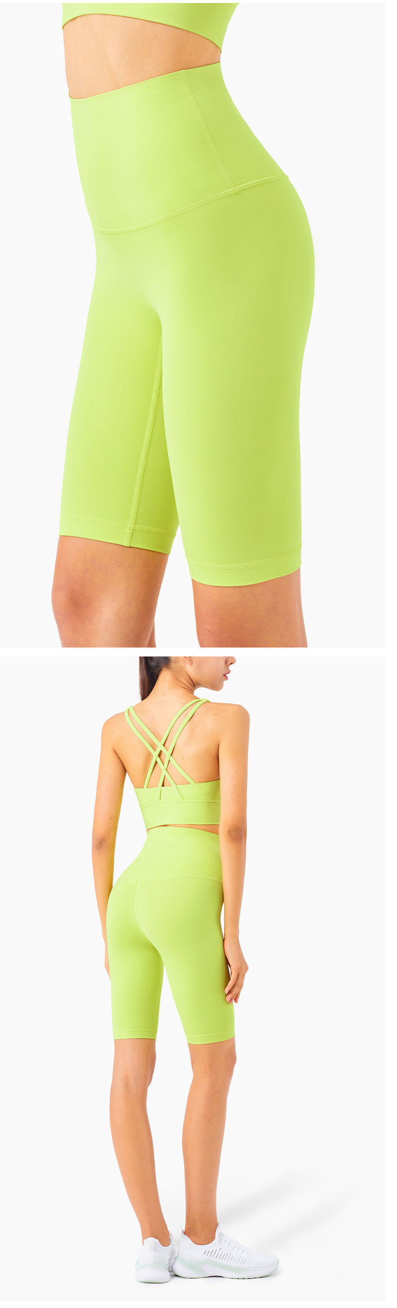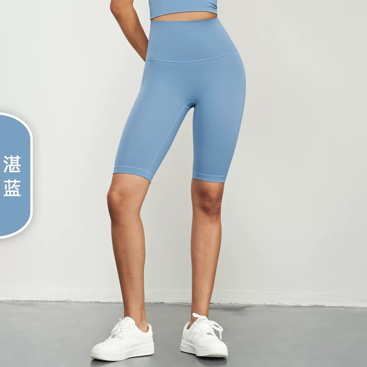 So Comfortable Series Double-Sided Brocade High-Waisted Nude-Feel Fitness Pants Peach Butt Five-Point Leggings for Women to Wear as Outerwear in Summer