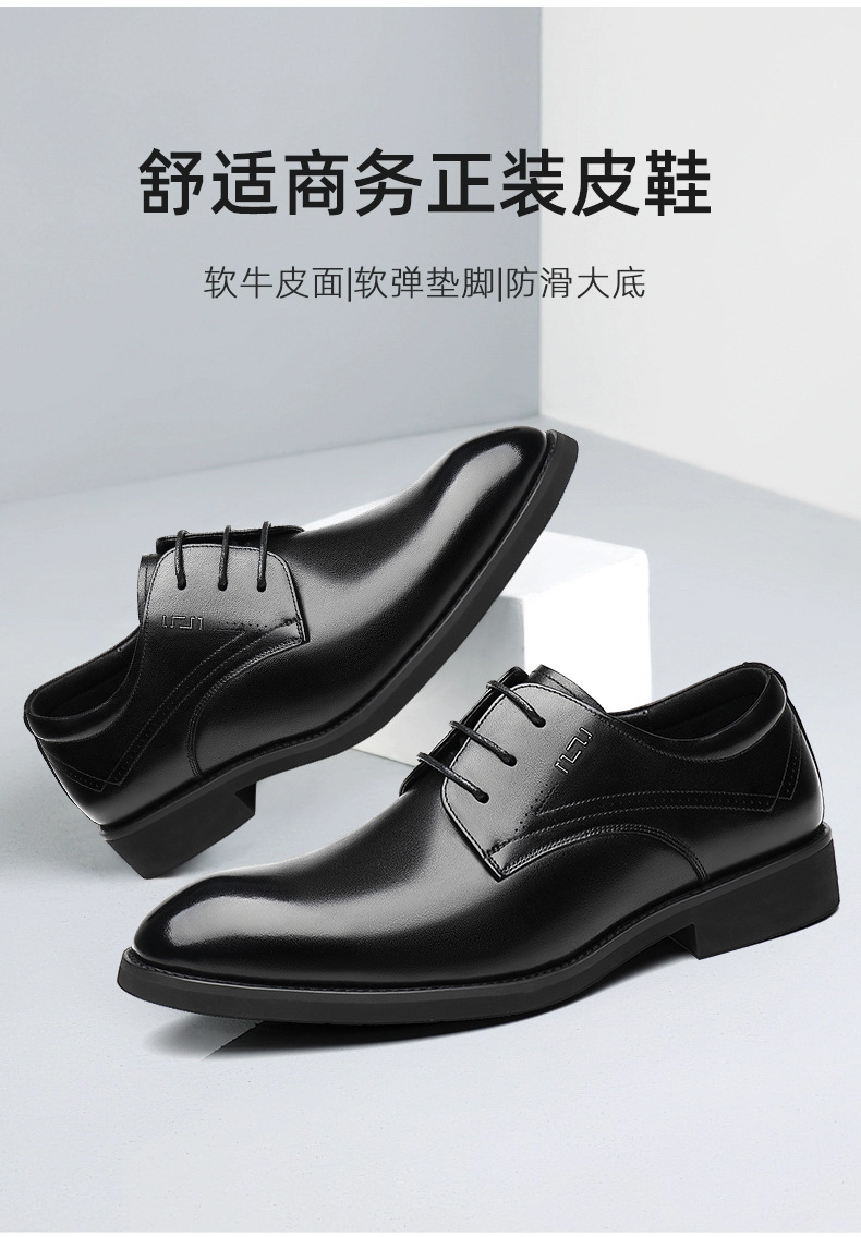 Dusafini Official Leather Shoes for Men, Business Formal Wear, British Style Genuine Leather Derby Shoes, Men's Height-Increasing Wedding Shoes Within 8cm