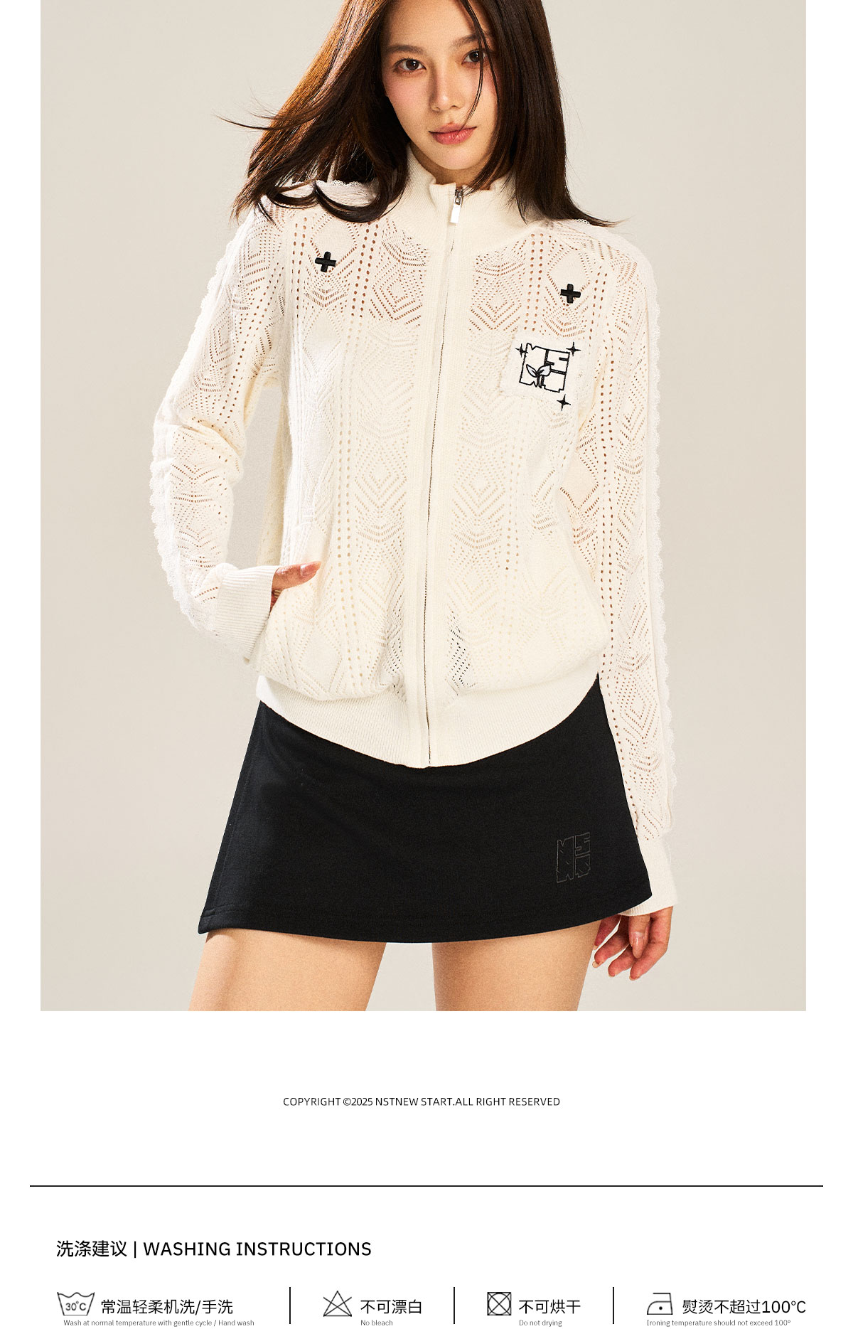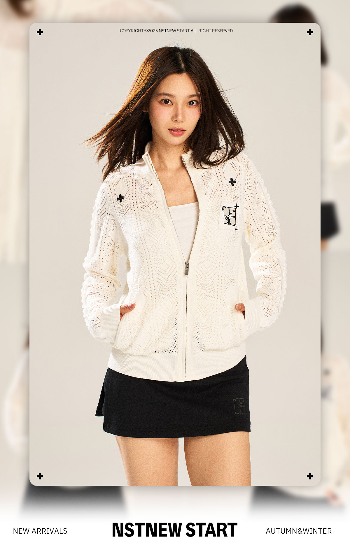 Nstnew Start Germination Project Patchwork Slimming Lace Hollow-Out Shoulder-Length Jacket for Women, Vintage Preppy Style Cardigan