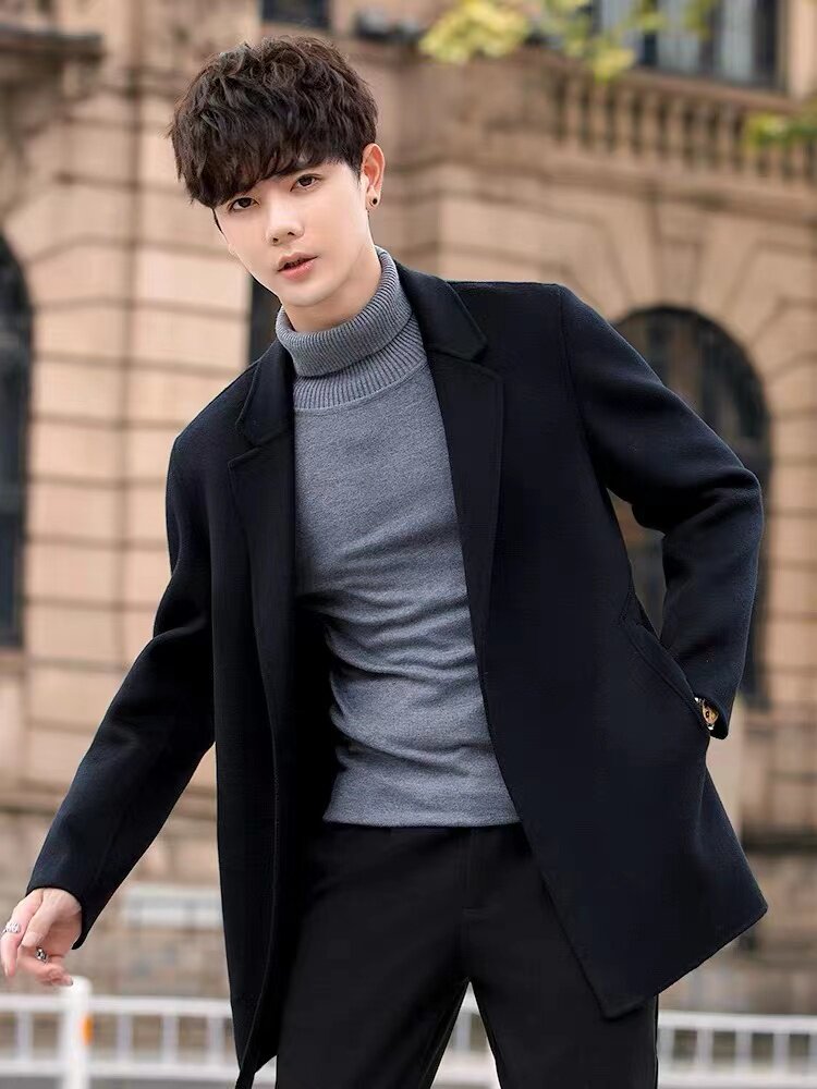 Winter Woolen Suit Jacket for Men, Thickened Style, Korean Version, Loose Fit, Non-Cashmere, High-End Suit for Men