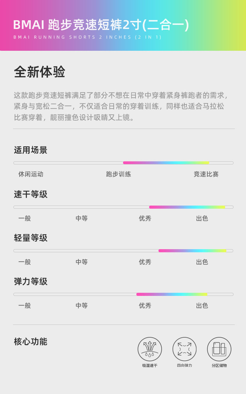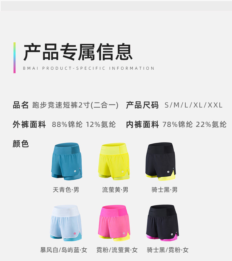 Bimax Running Racing Shorts 2inch Two-In-One Men's and Women's Marathon Summer Breathable Quick-Drying Outdoor Sports Pants