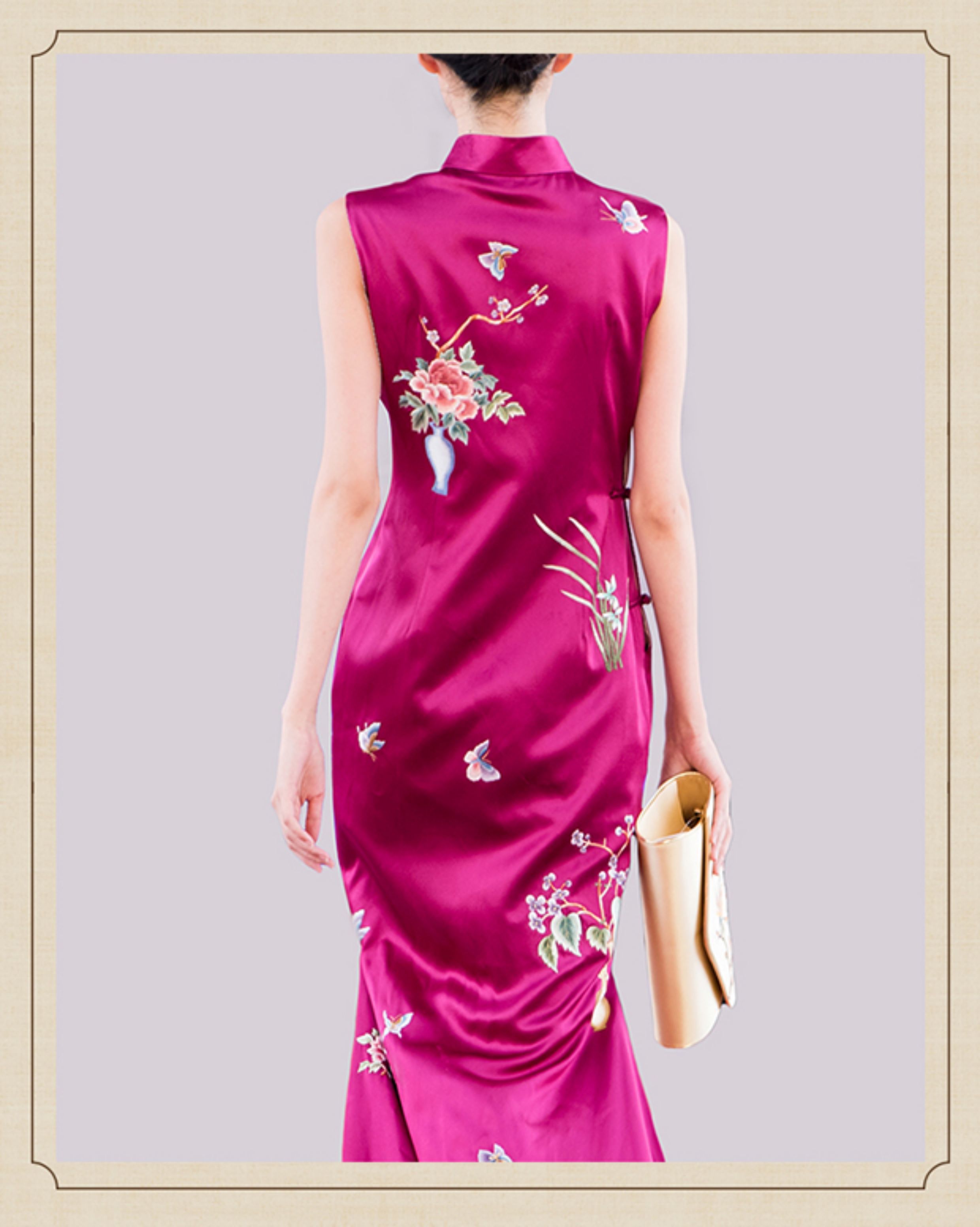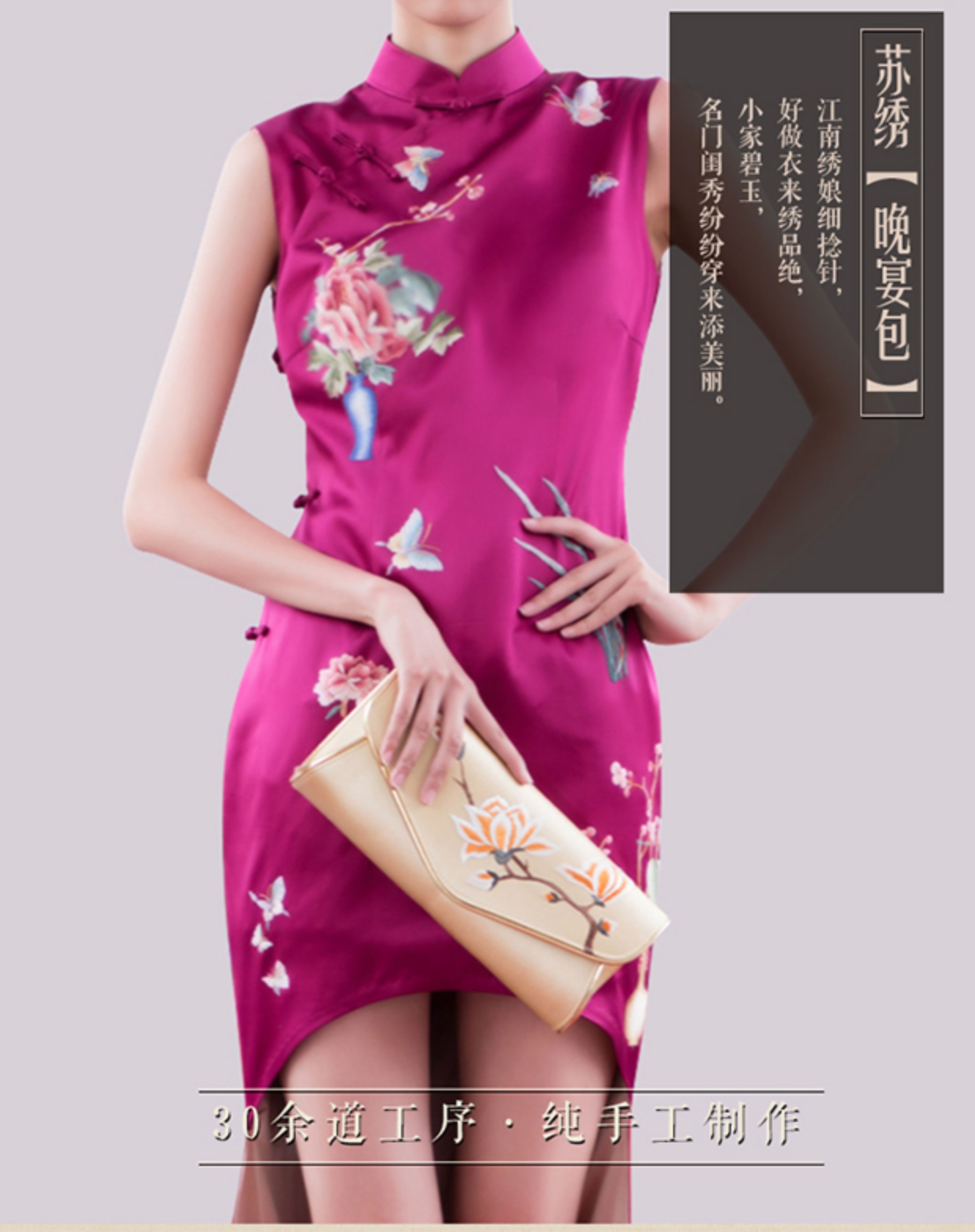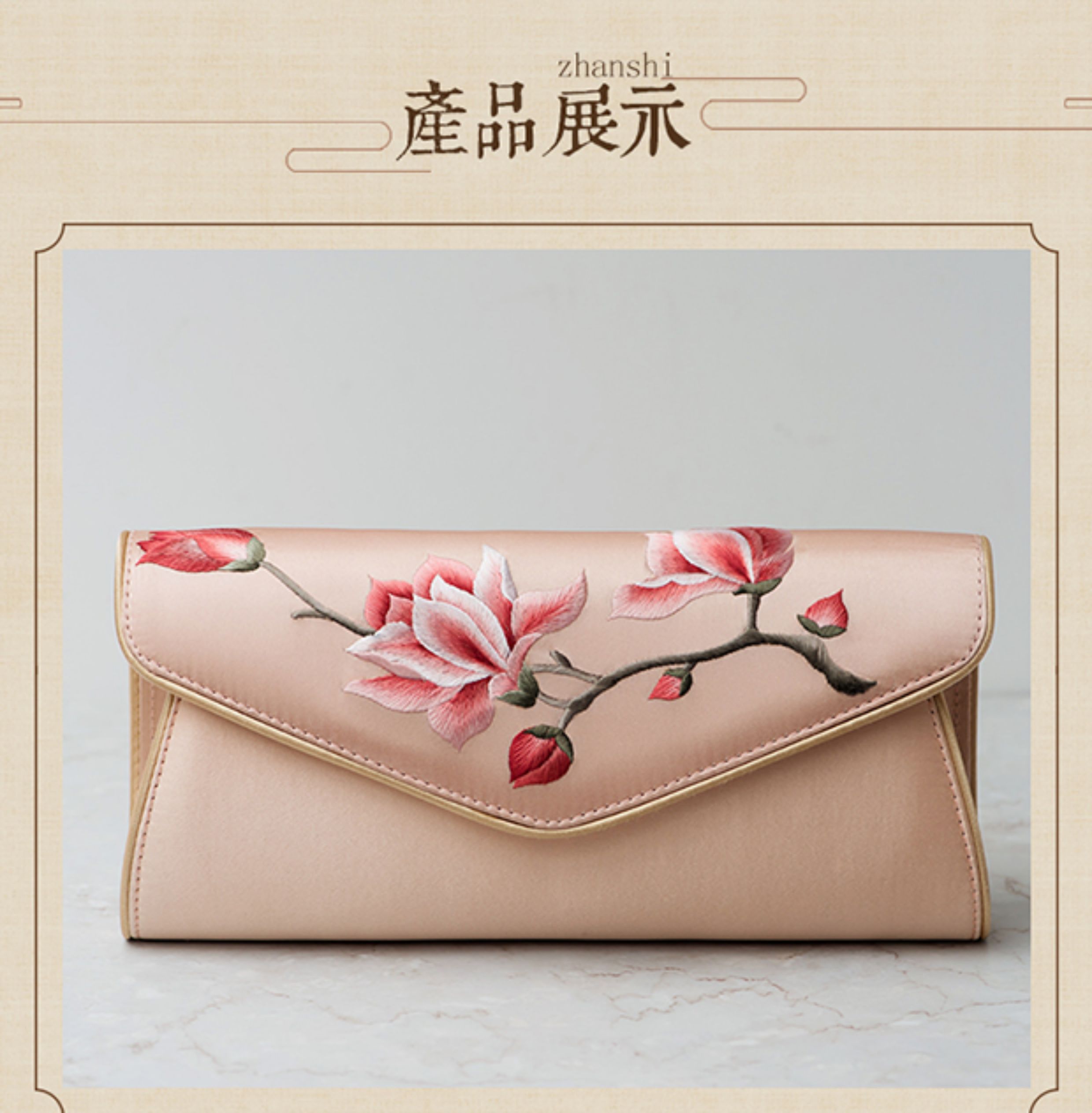 High-End Mulberry Silk Embroidered Cheongsam Bag for Women, Handmade Embroidered Clutch Wallet, Gift for Wedding, Mother's Style Clutch Bag