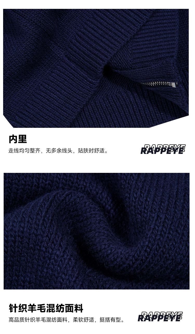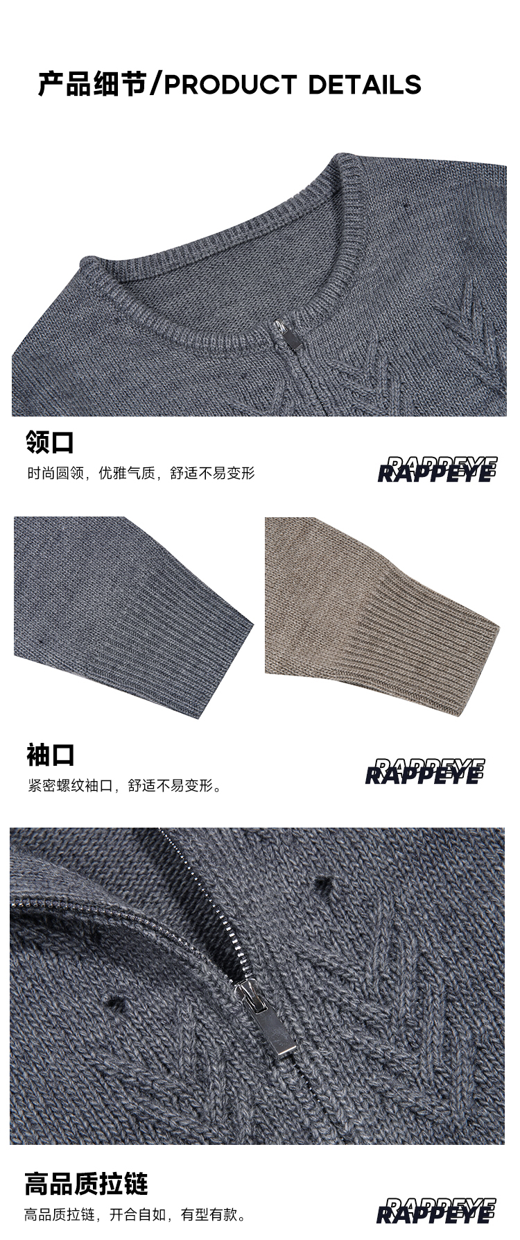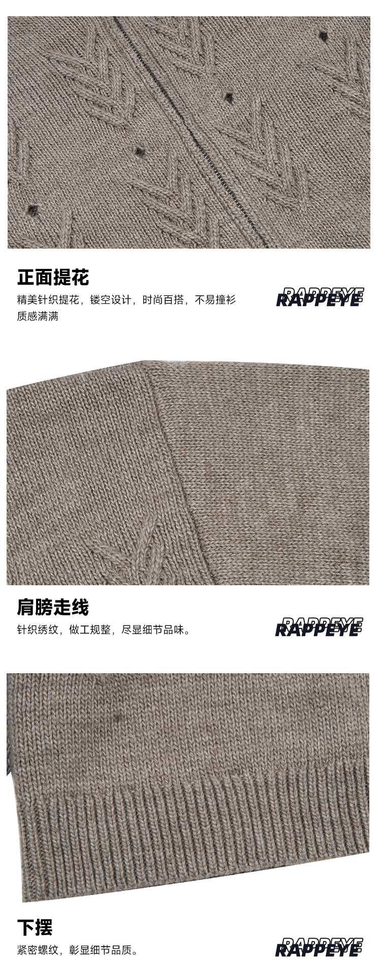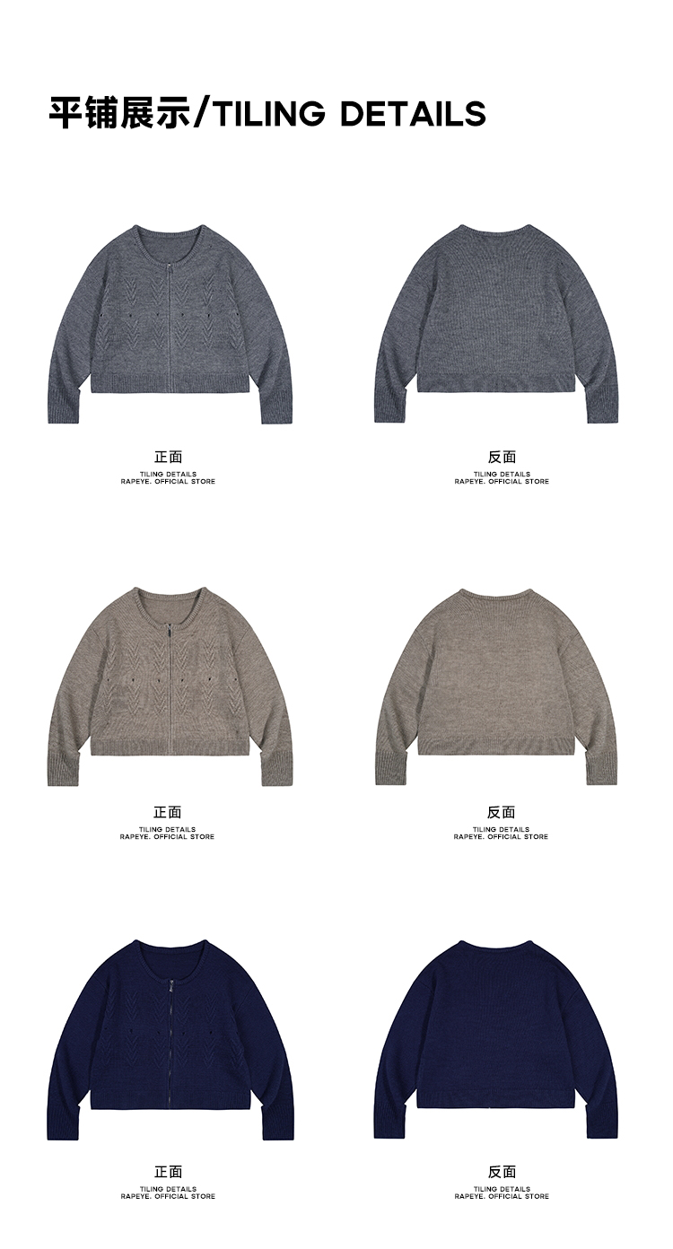 Rappeye Retro Simple Jacquard Cut Out Loose Round Neck Zipper Sweater Wool Knitted Arrow Cardigan Jacket
