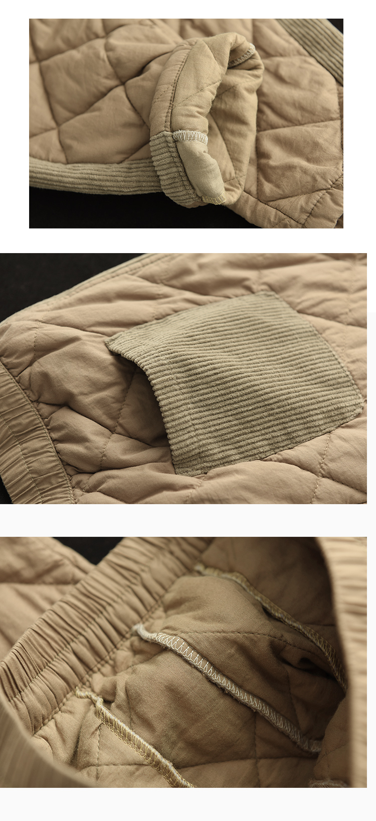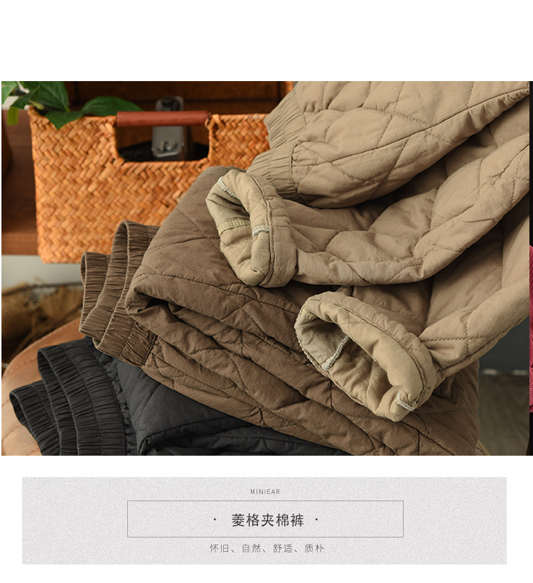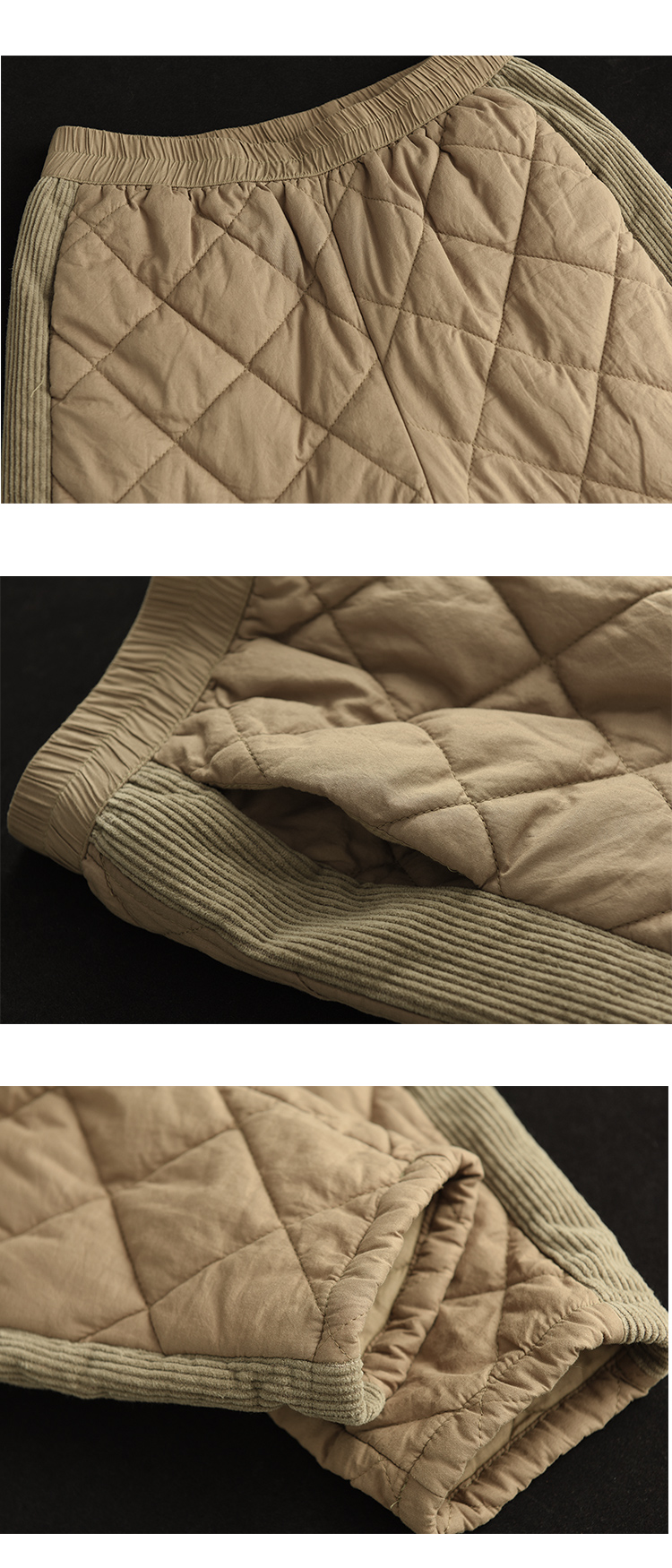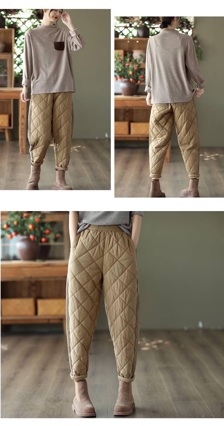 Yuanyuanmeiyi Winter Retro Patchwork Corduroy Padded Cotton Pants for Women, Elastic Waist, Quilted Thickened Harem Pants, Warm Pants