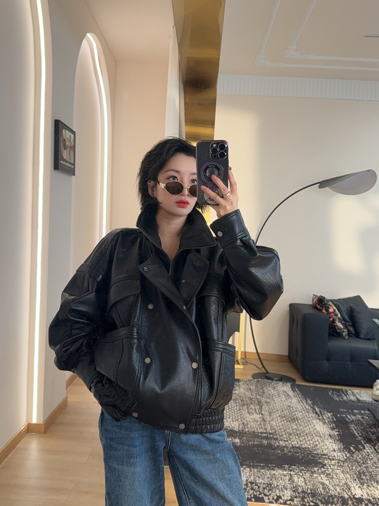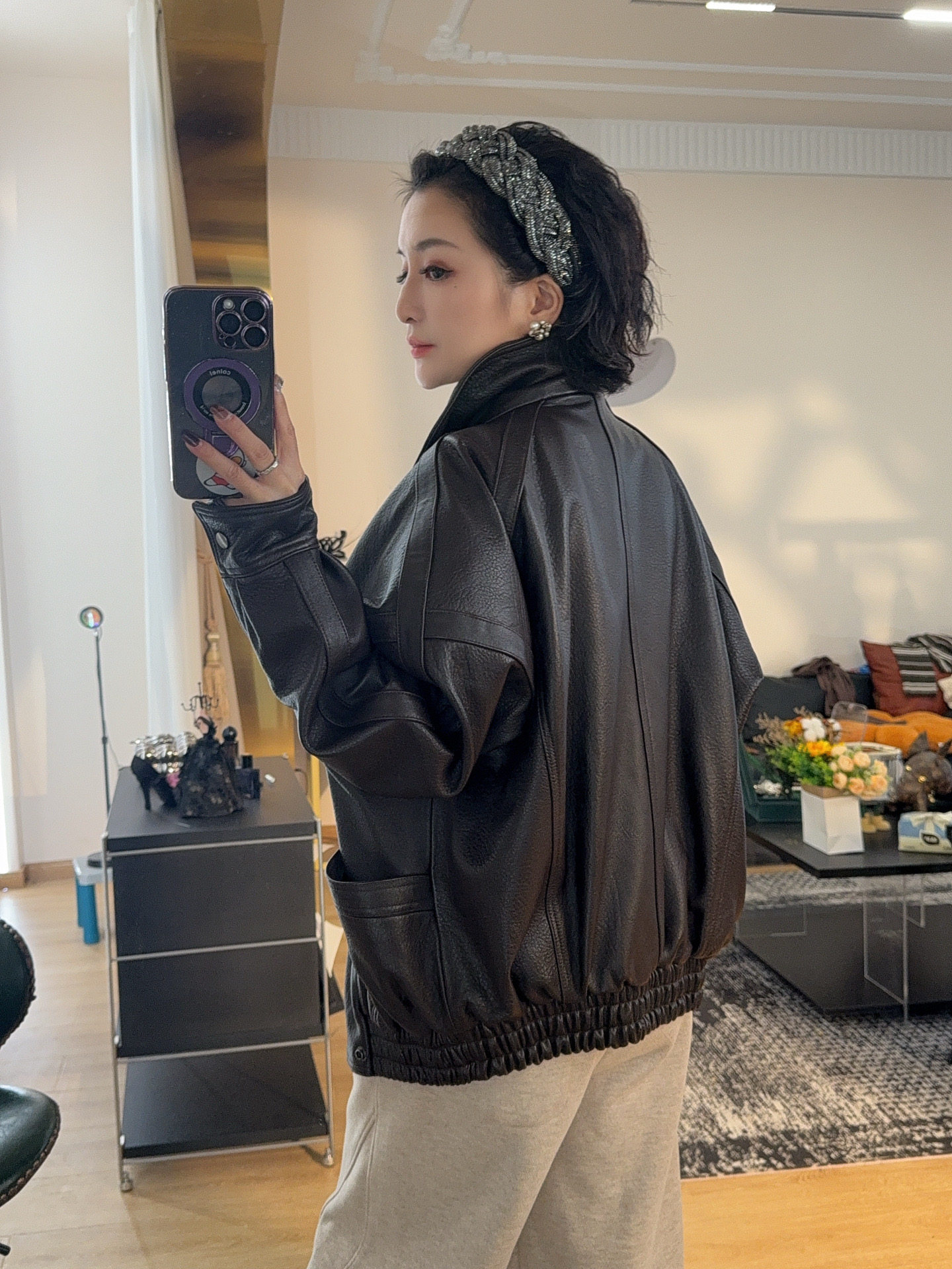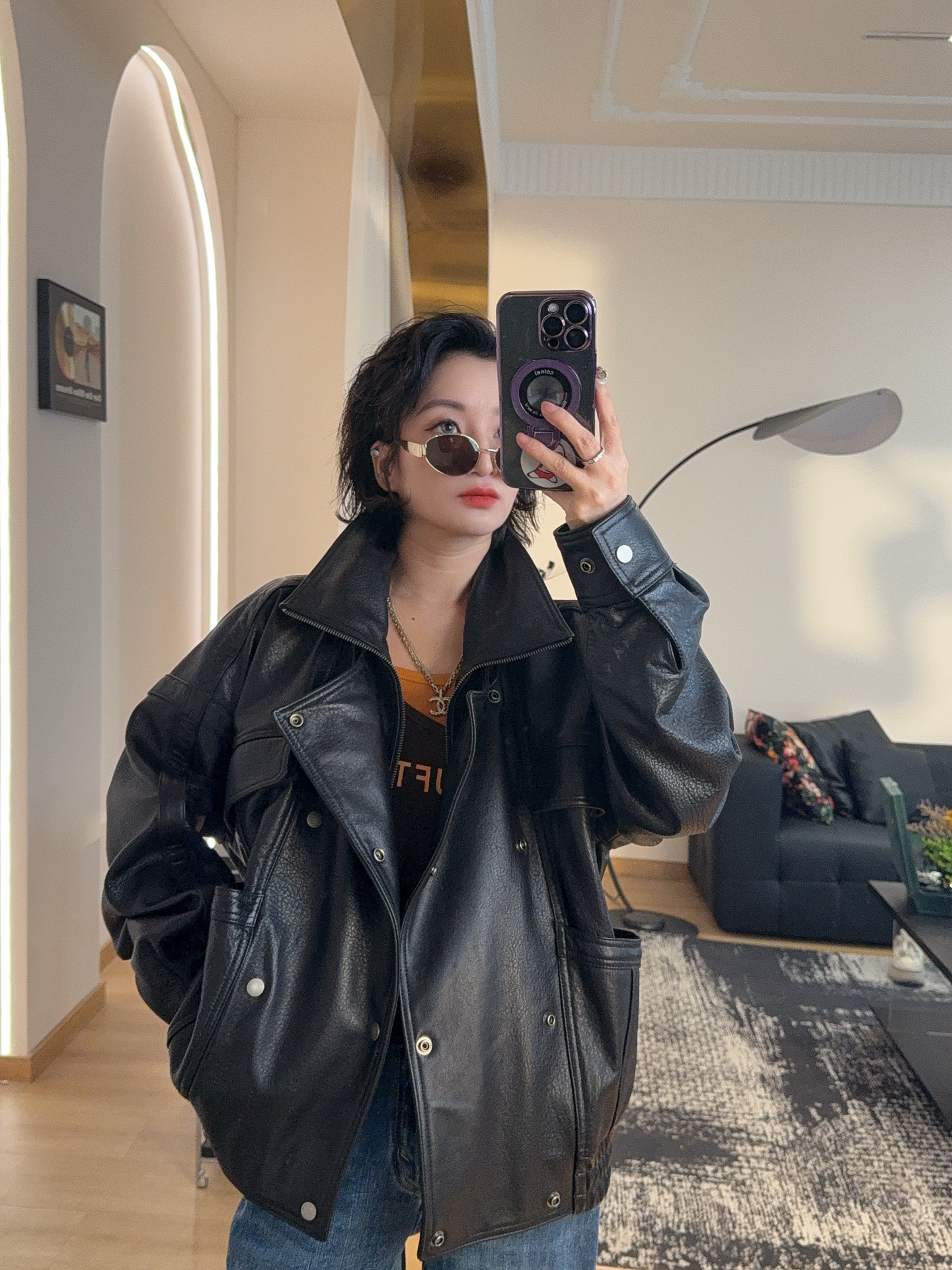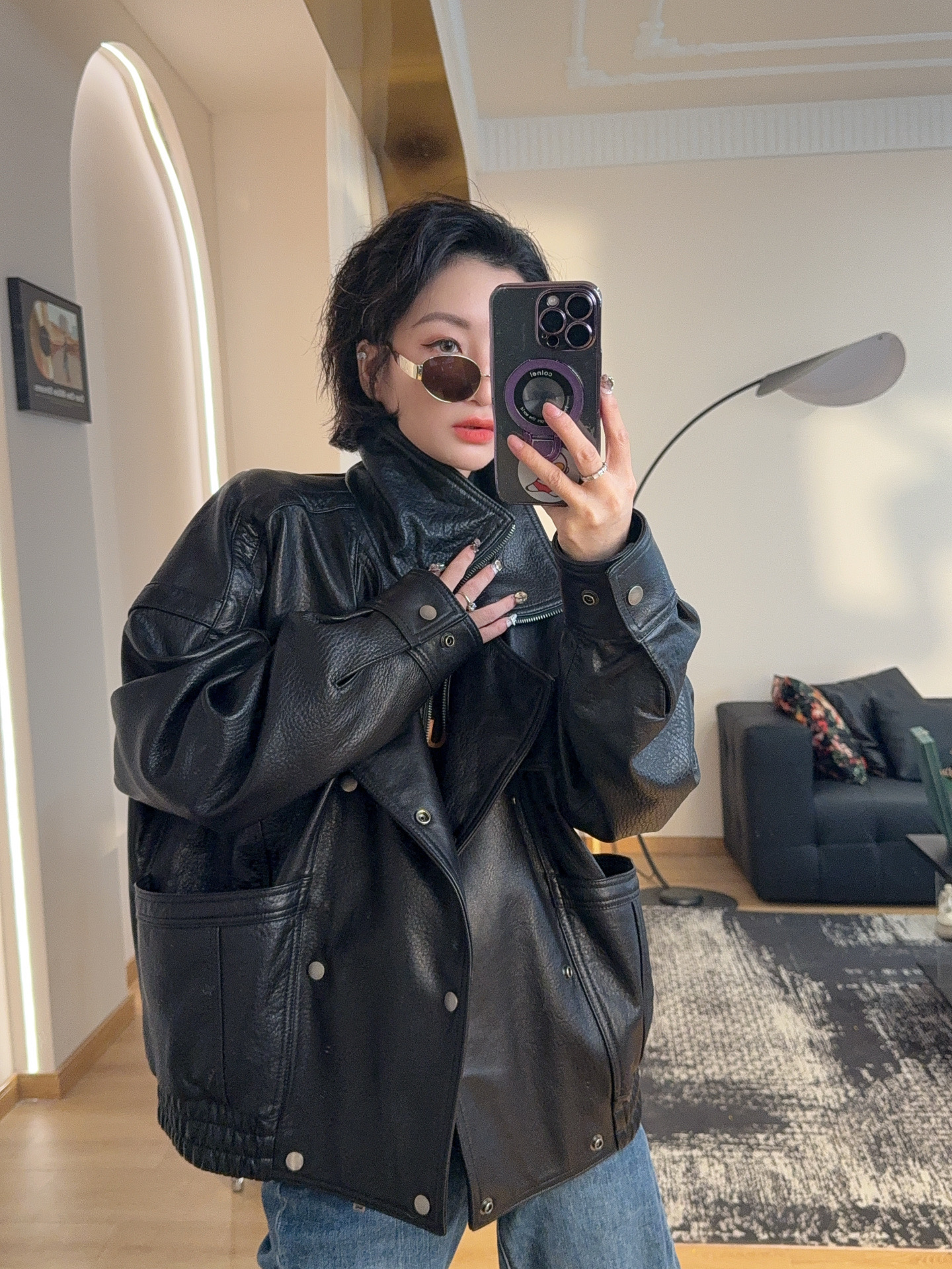 Qishi Y*L Same Source as Imported from Spain, Embossed Sheepskin Vintage Heavy-Duty Aviator Double-Collar Leather Jacket