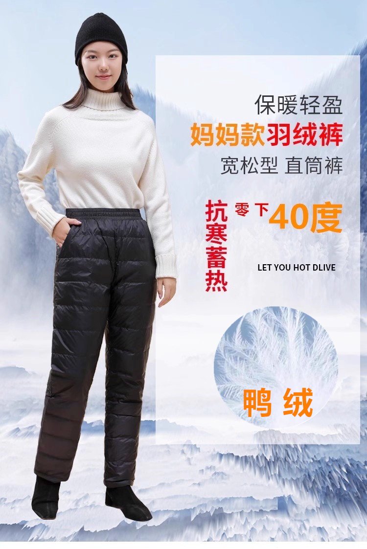 Women's down Pants for Outdoor Wear, Lightweight for Mothers, High-Waisted for Middle-Aged and Elderly, Loose-Fitting for Winter, Thickened Straight-Leg Duck down Cotton Pants for Grandma