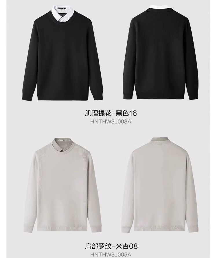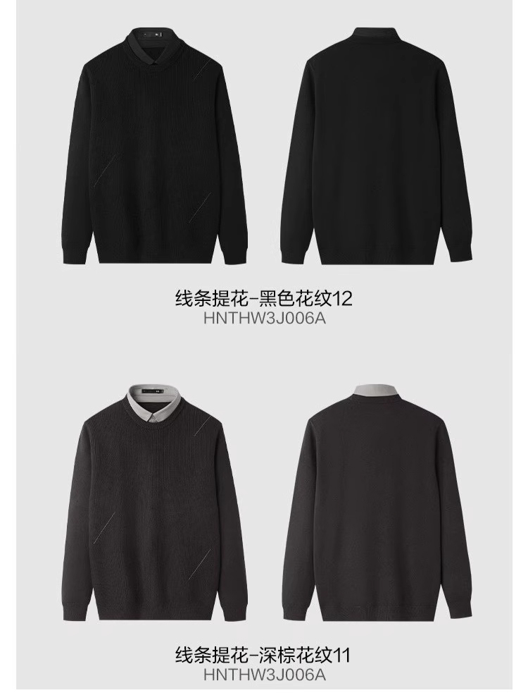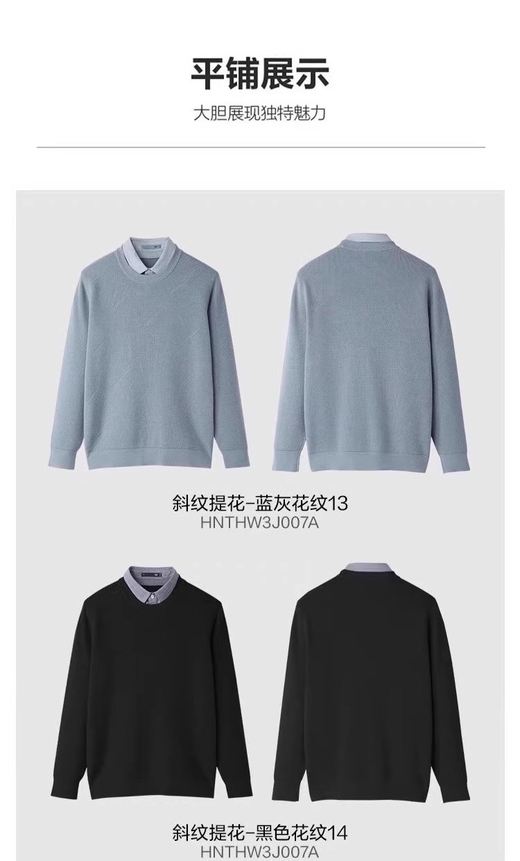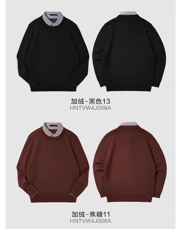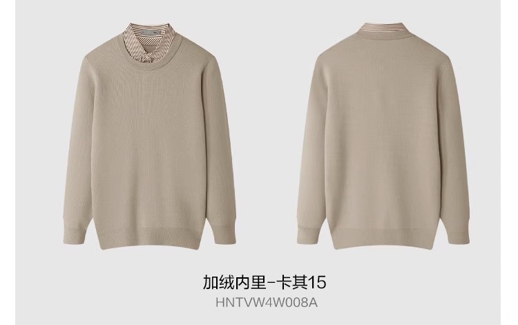 Hla/Hailan House Light Business Style Fleece-Lined Double-Collar Knit Sweater 25 Autumn/Winter New Jacquard Faux Two-Piece Thick Sweater for Men
