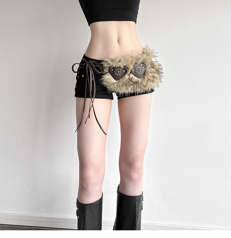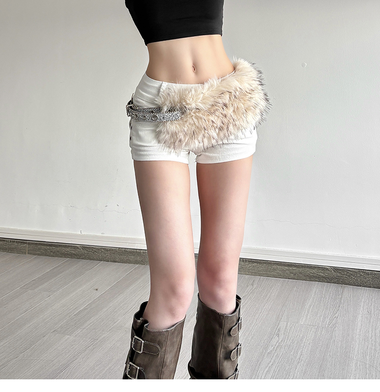 Kliou Fashion ins Unique Furry Patchwork Belt for Women, Stylish and Slimming Waist Chain Decoration for Pants
