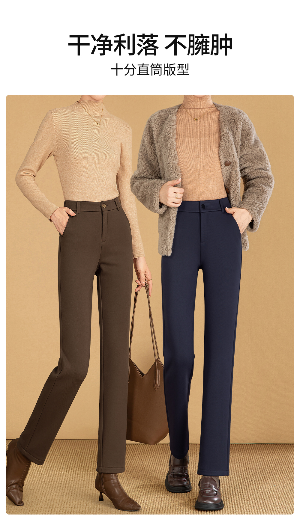 Yasi Straight-Leg Pants for Women, New Autumn and Winter Fleece-Lined Professional Women's Pants, Winter Baguette Pants, Women's Cigarette Pants, Winter Dress Pants