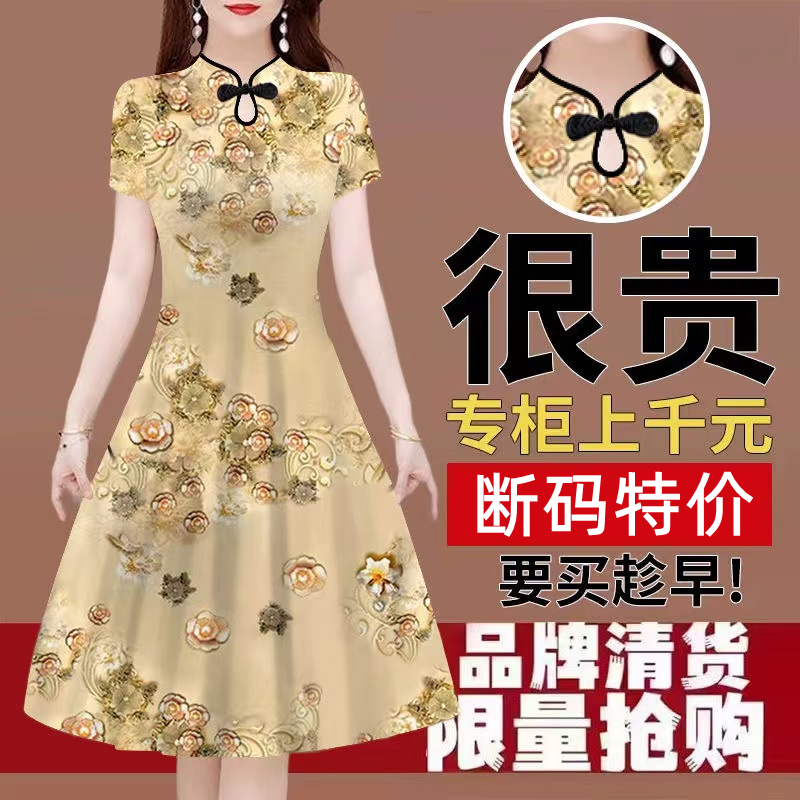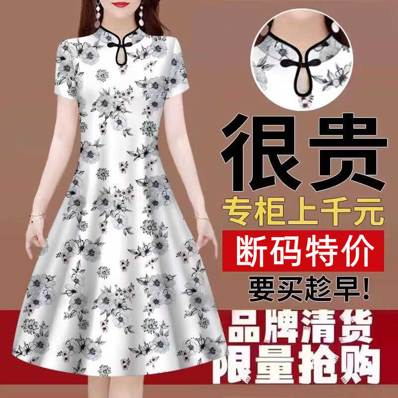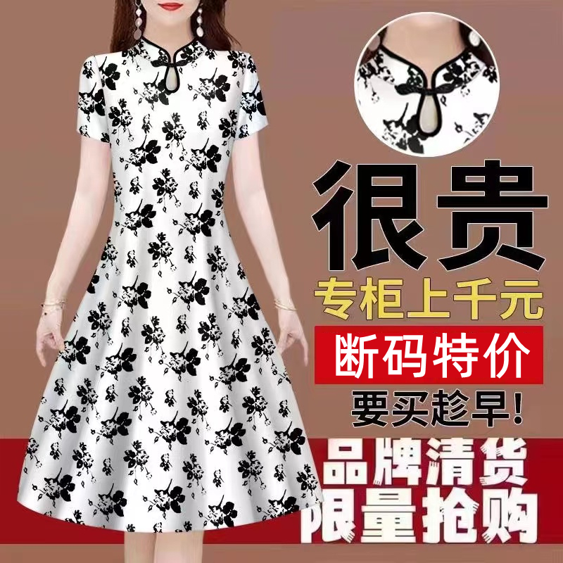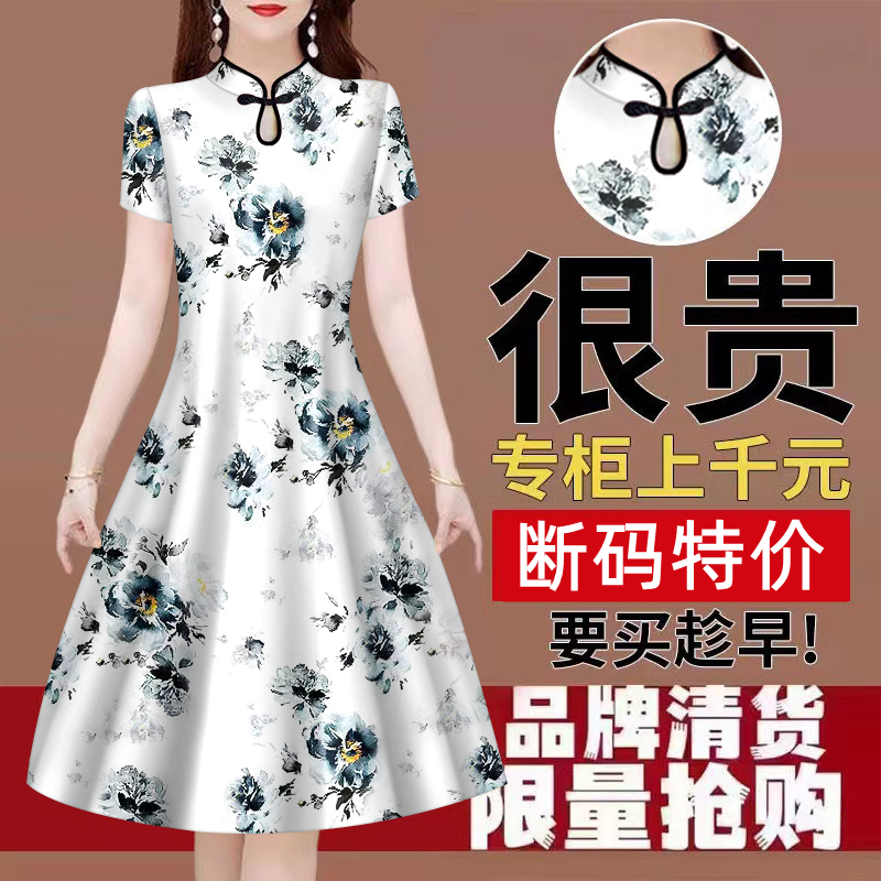 Improved Cheongsam Collar Dress for Women, New Summer Style, Loose Plus Size, Tummy-Covering, Vintage Print, Mid-Length Dress