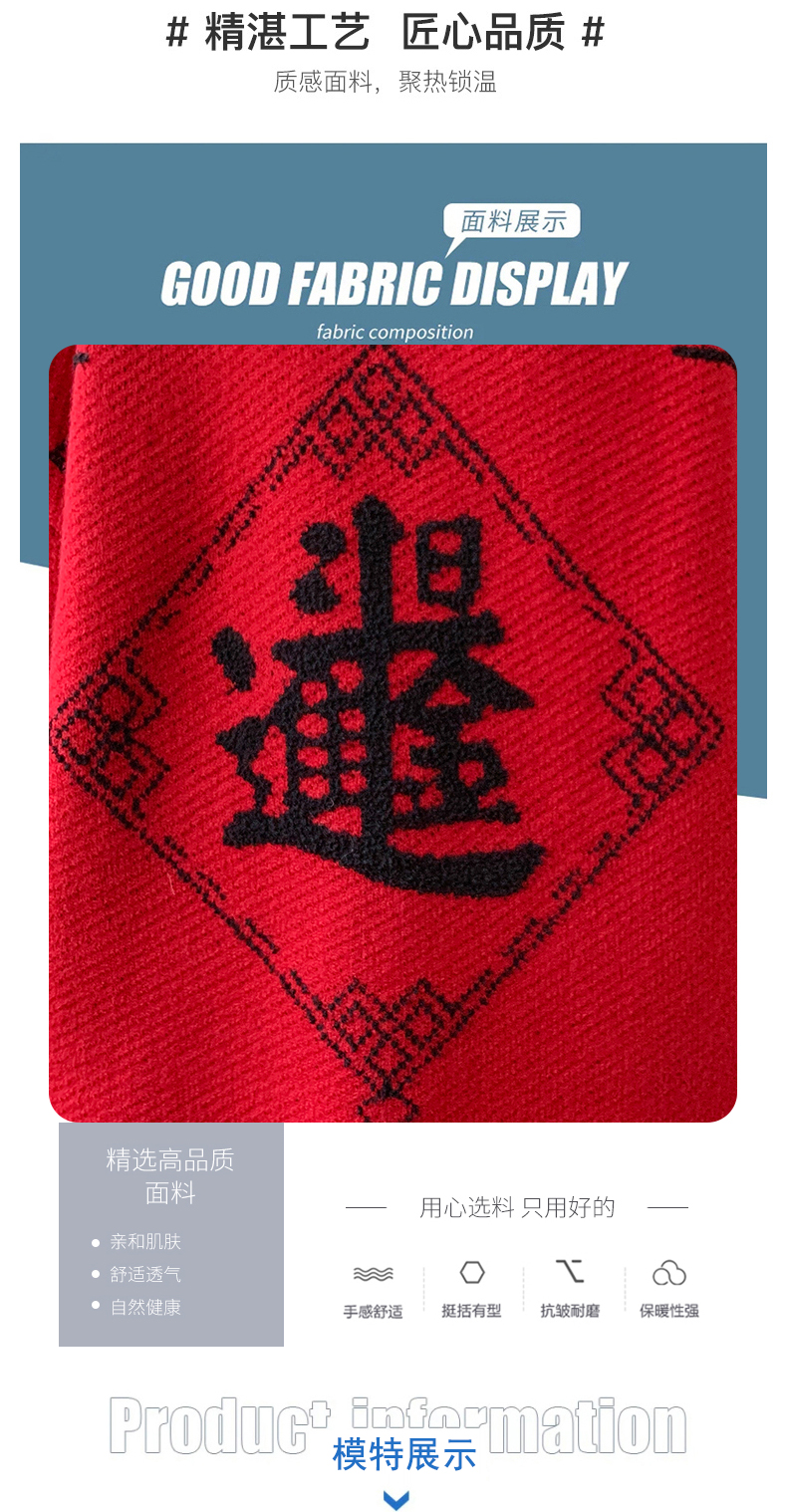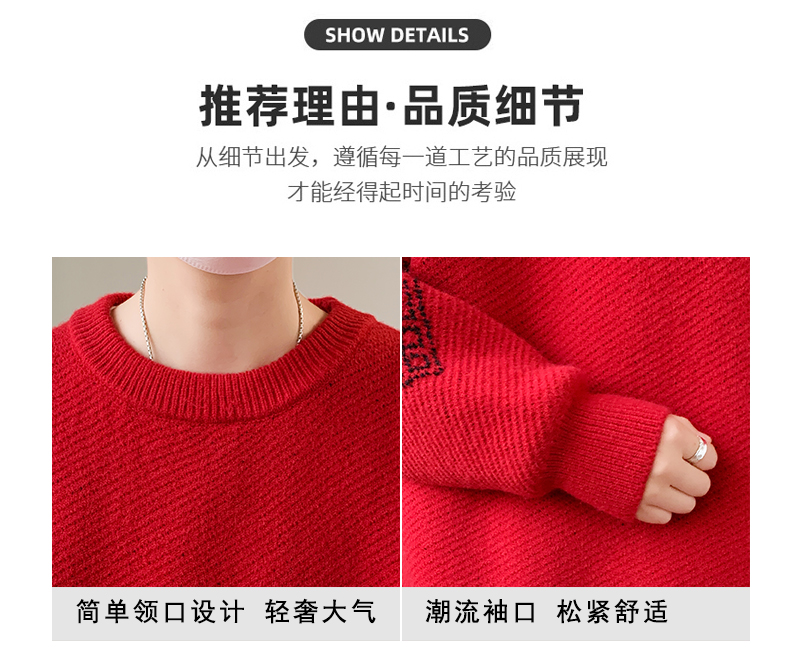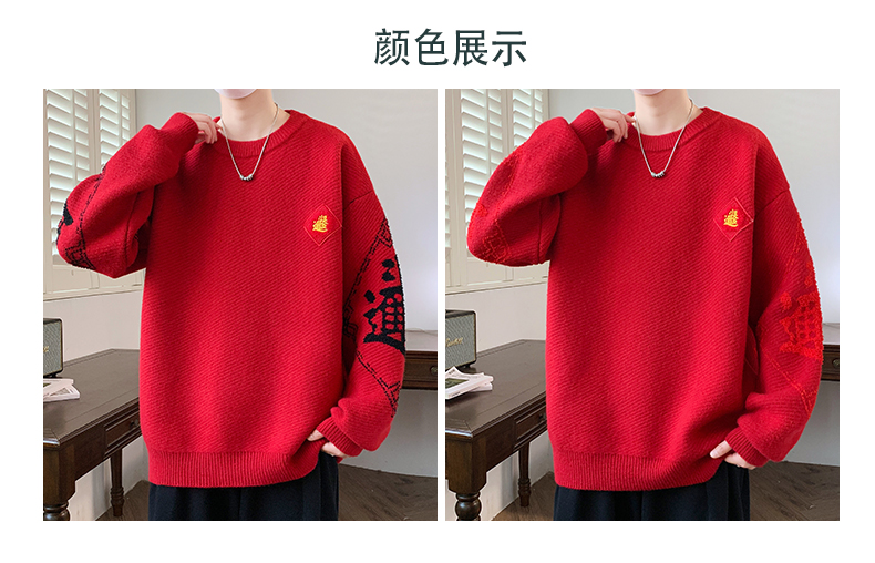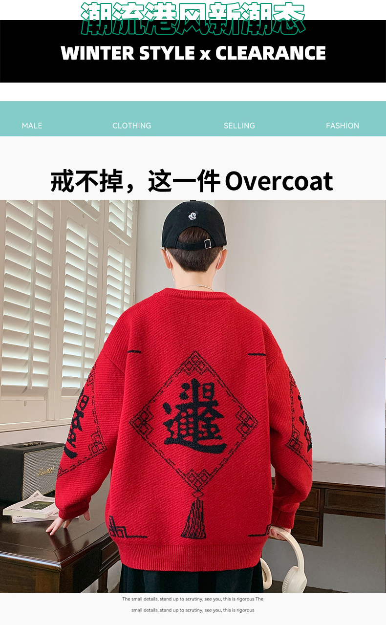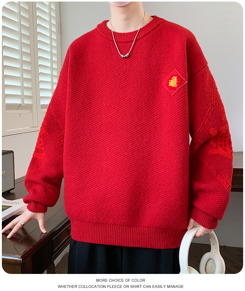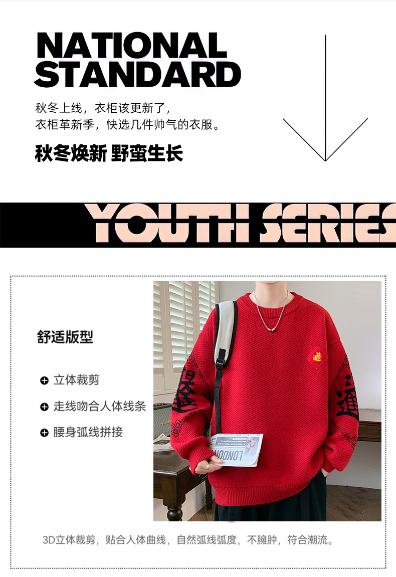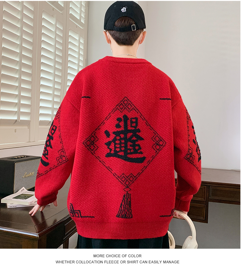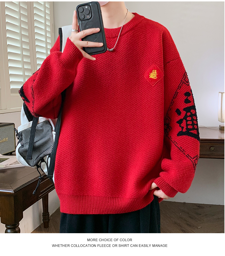 New Year's Red Sweater for Men, Autumn and Winter, Youth New Year's Greeting Outfit, Thick Knitted Sweater for Middle and High School Students