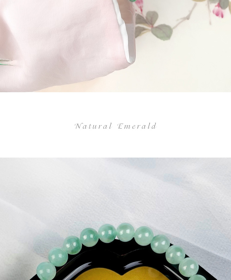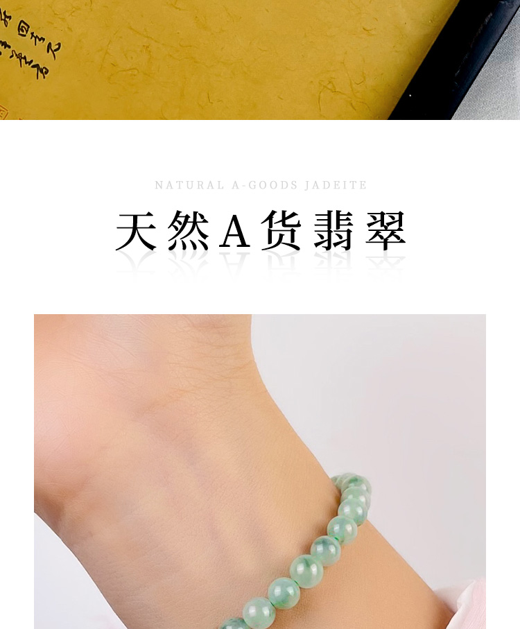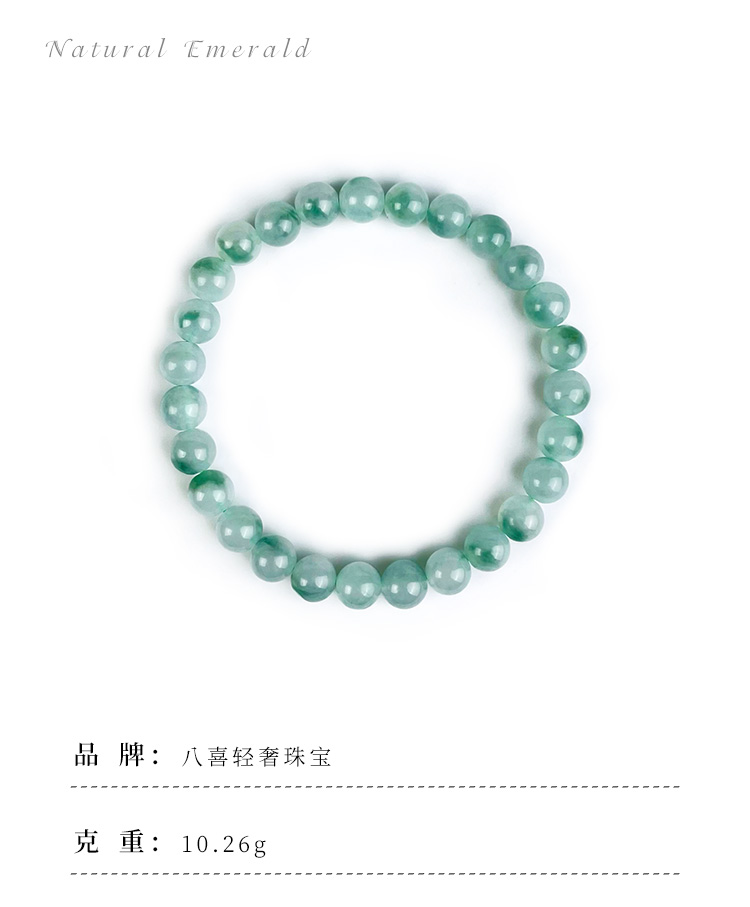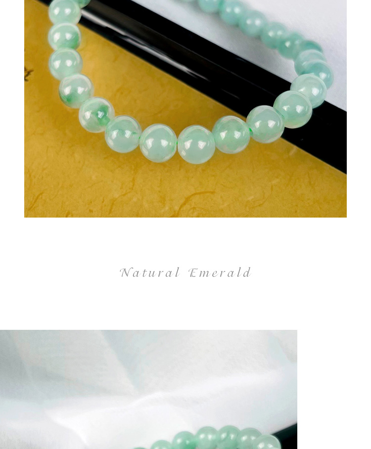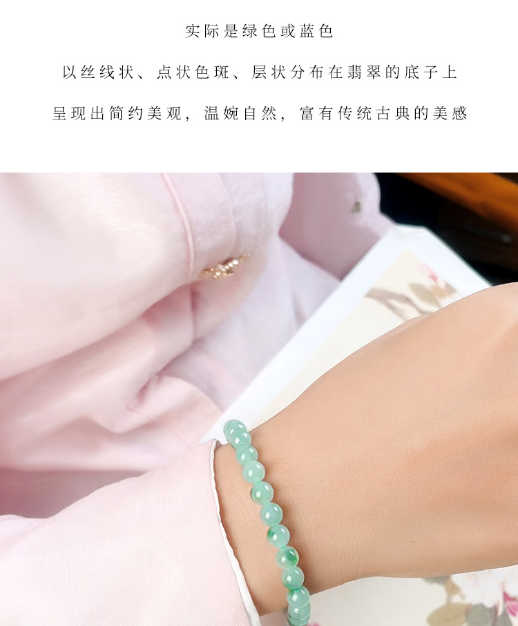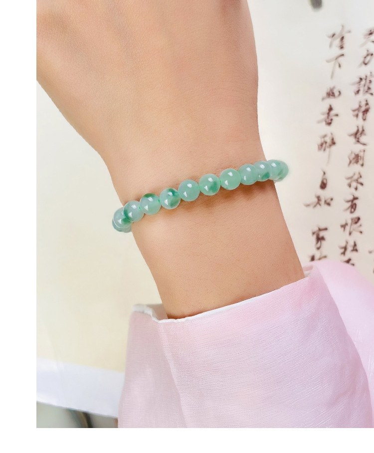 Natural Burmese Jade Bracelet, Grade A, Ice Type, with Flowing Patterns, Light Green, Full Green Jade Bangle, Round Beads, Good Luck Gift Bracelet