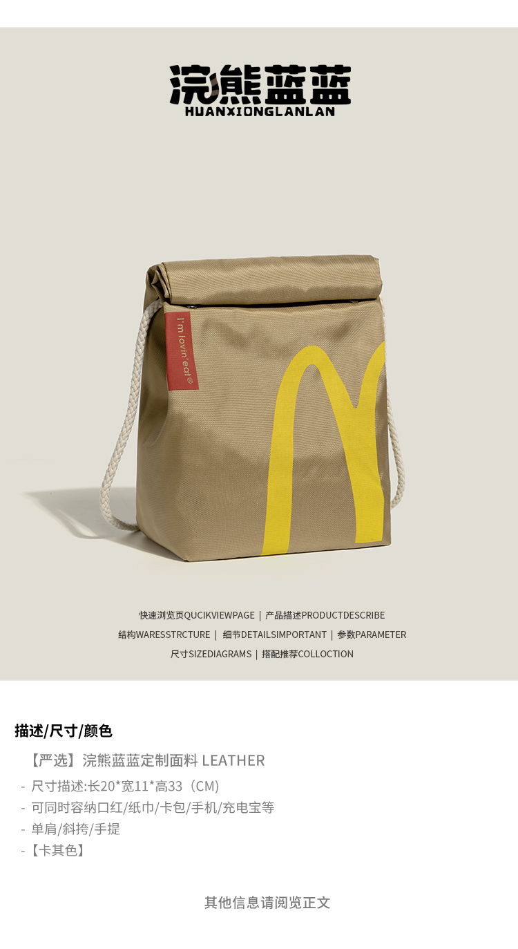Raccoon Blue Mcdonald's Canvas Bag for Women 2025 New Model Student Class Paper Bag Large Capacity Lightweight Crossbody Bag