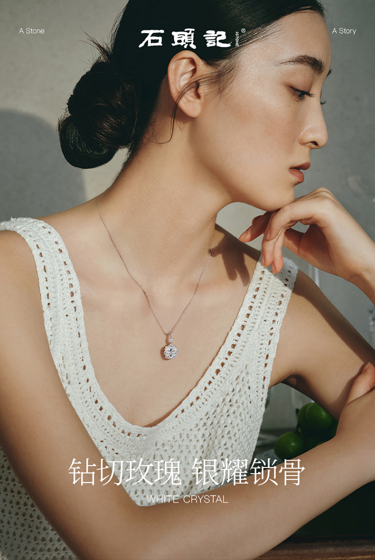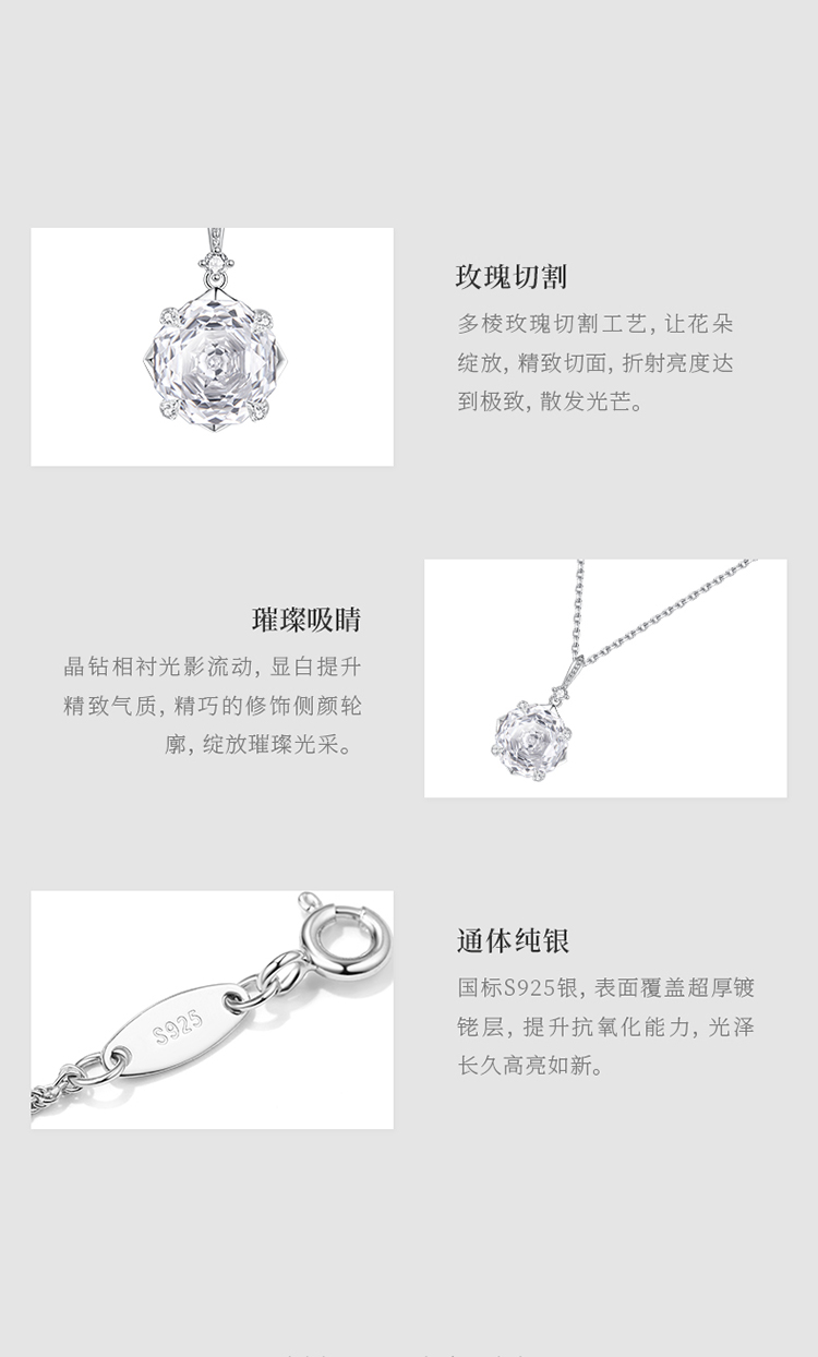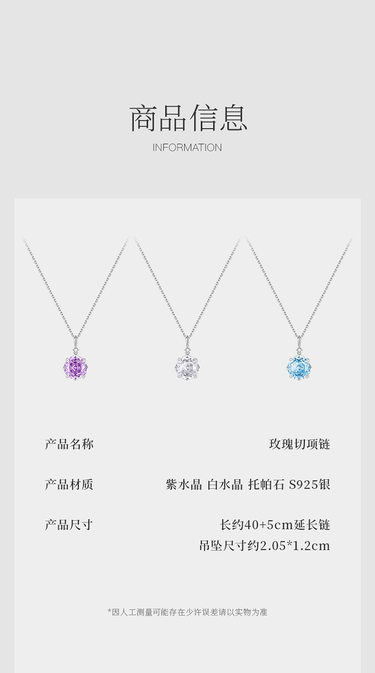 iSTONE Rose Cut White Crystal Necklace Topaz Sterling Silver Light Luxury High-End Amethyst Necklace