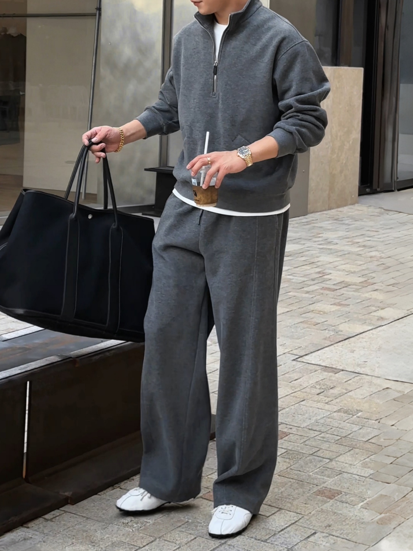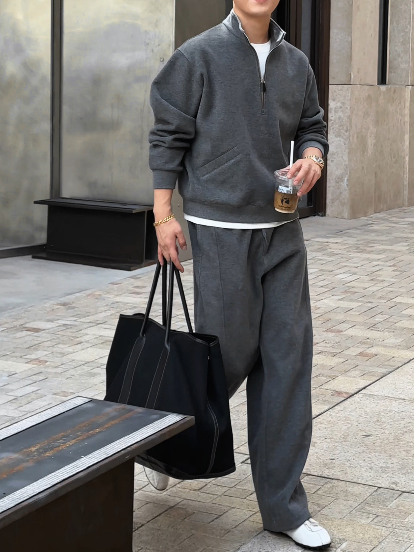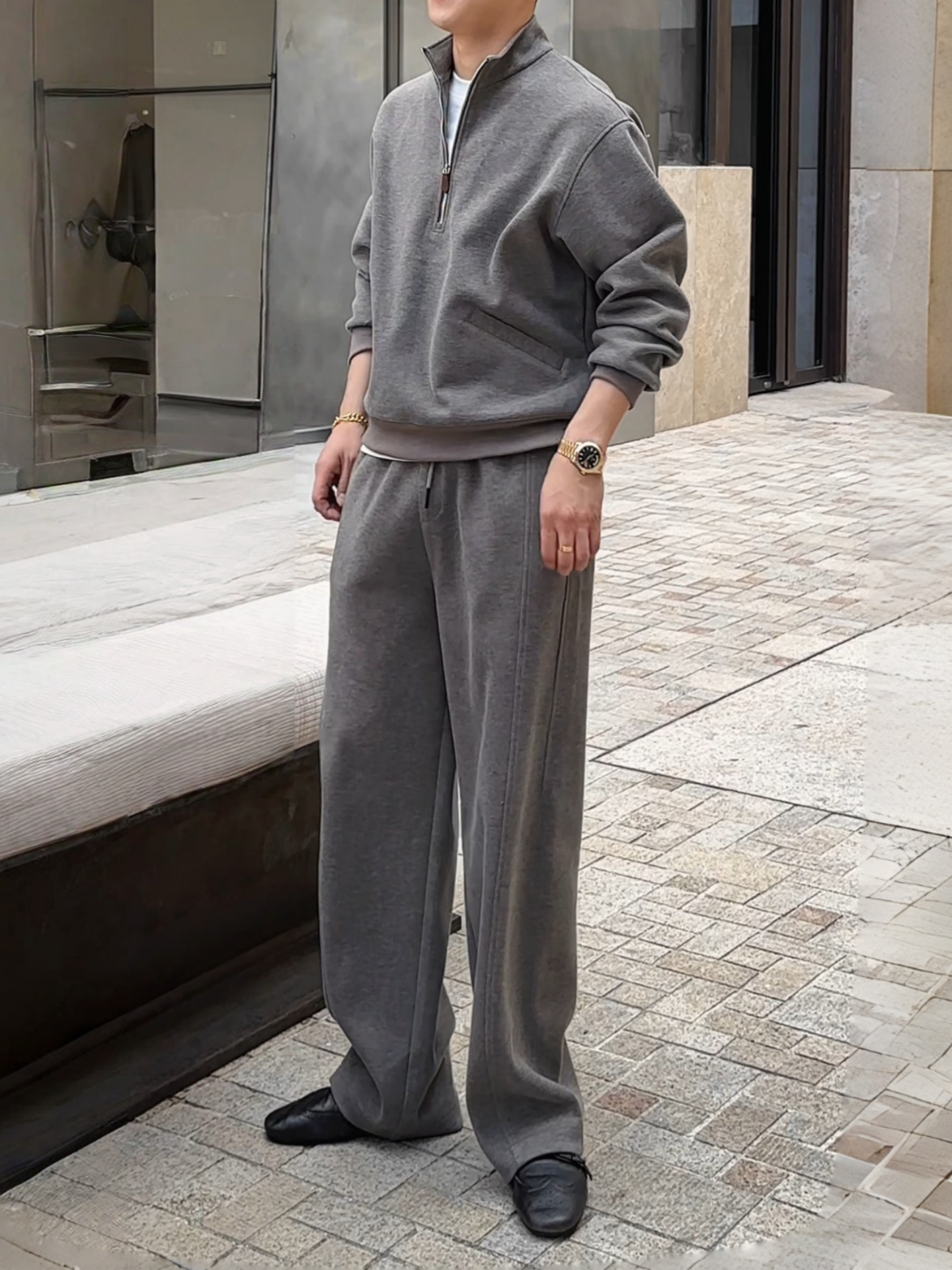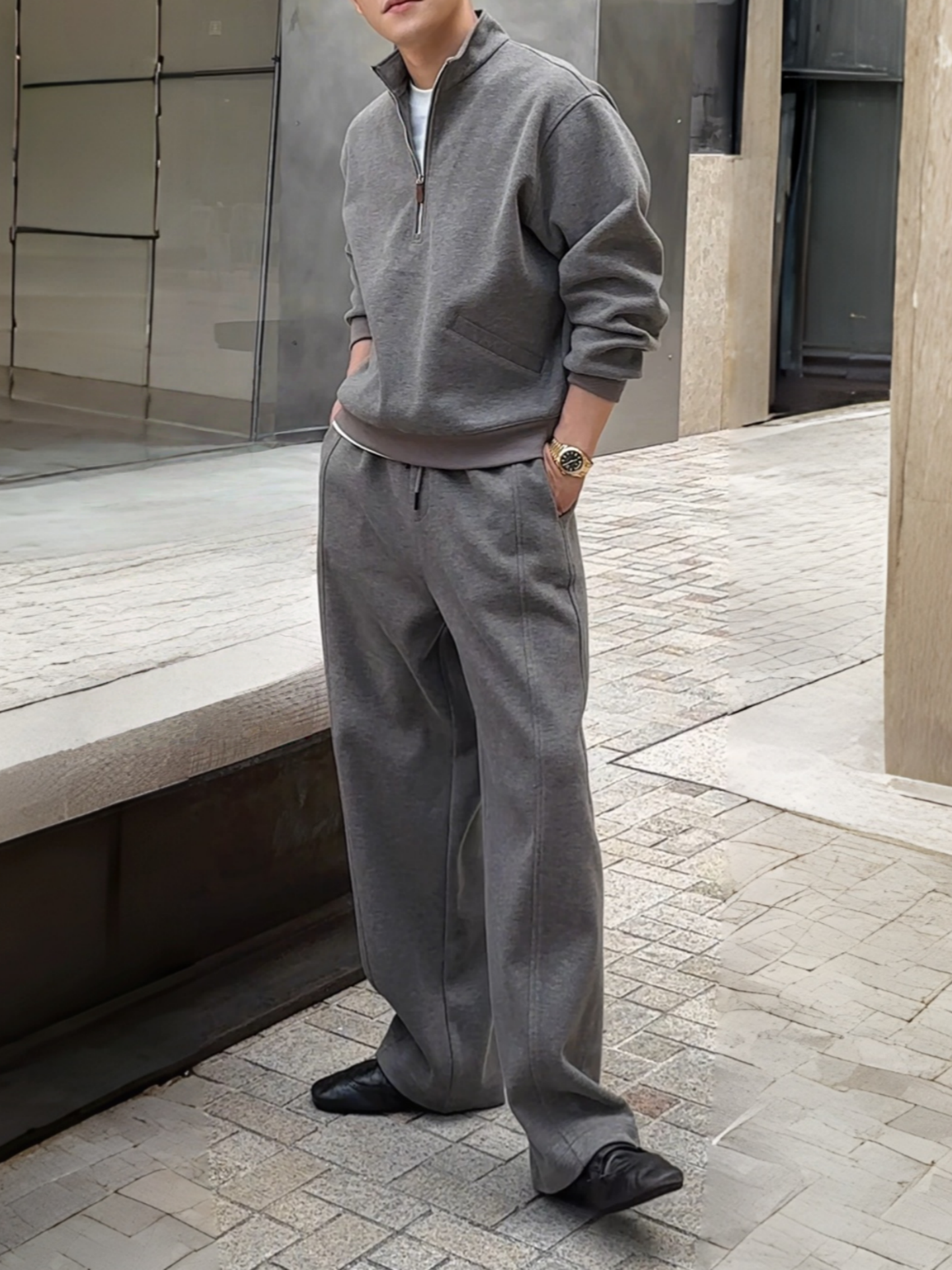 High-End Autumn Casual Sports Half-Zip Sweatshirt and Casual Pants Set for Men, Thick Autumn and Winter Couple Outfit Two-Piece Set