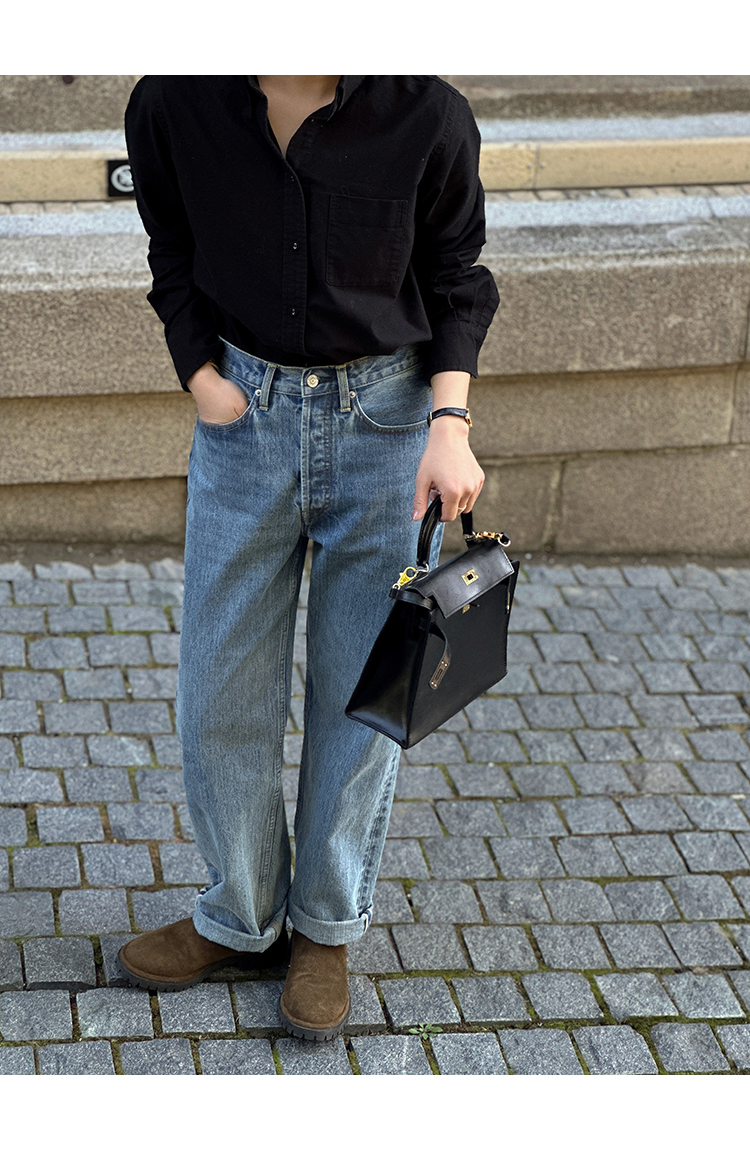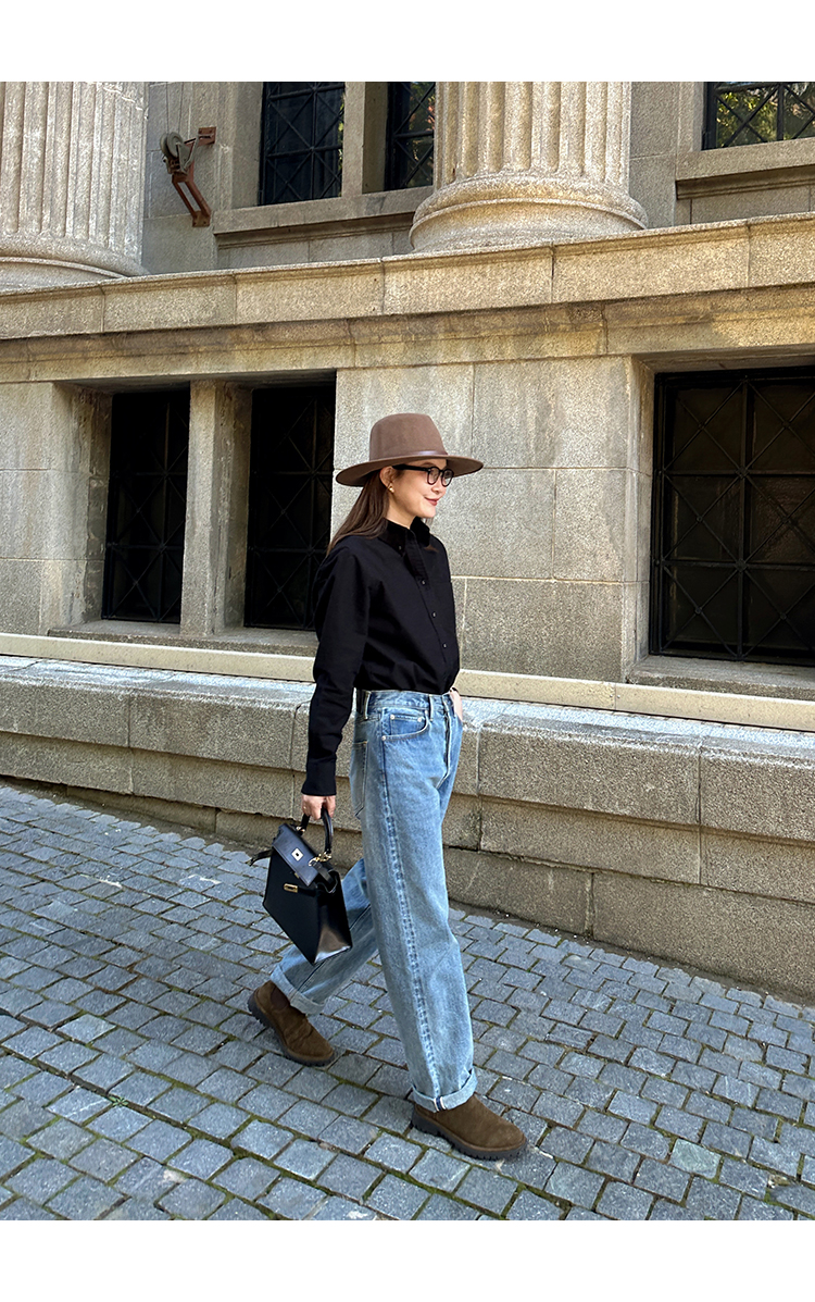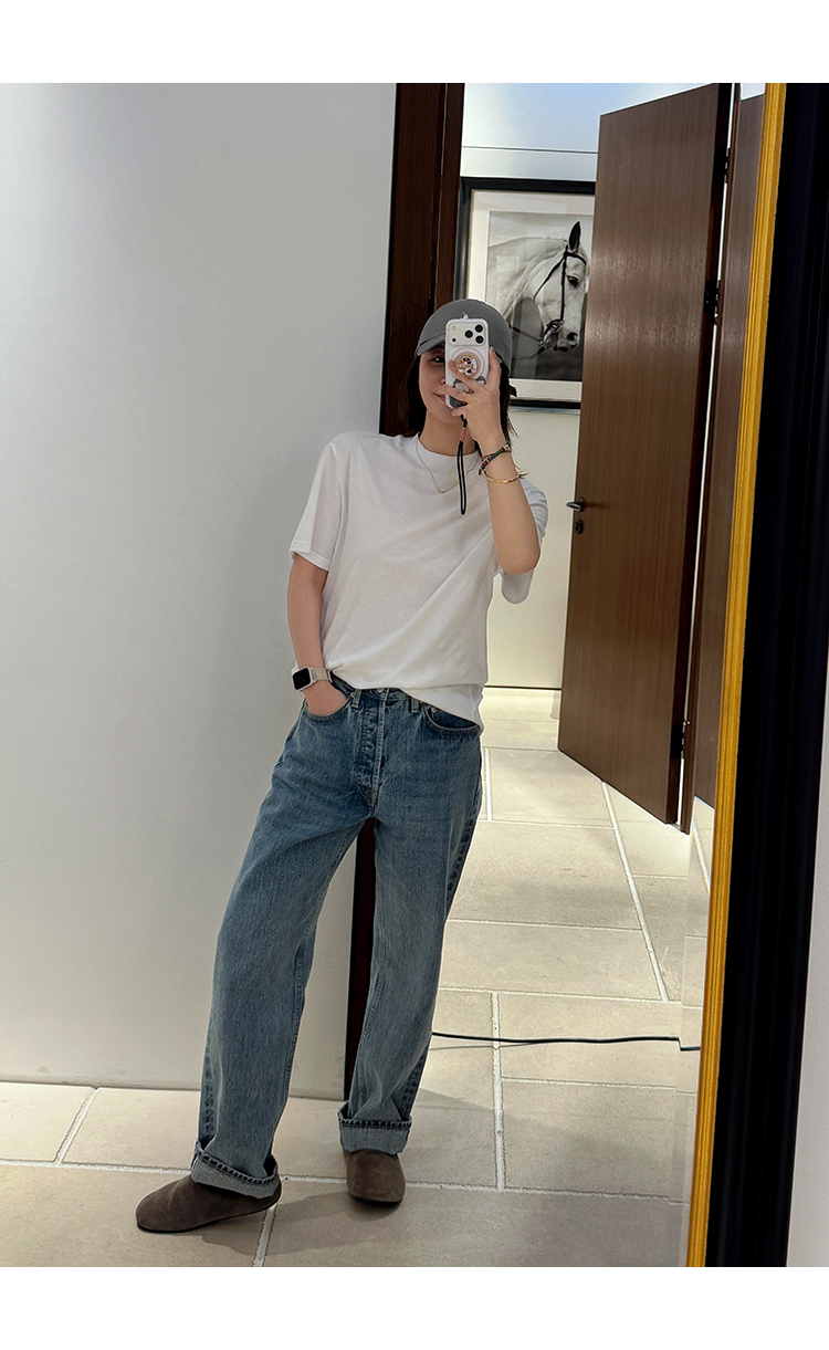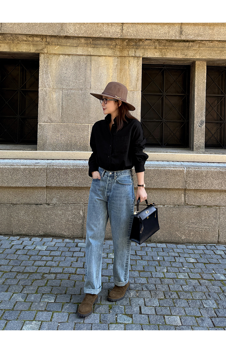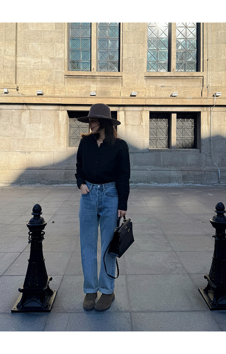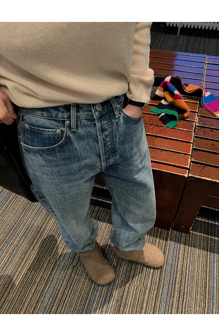 深牛仔蓝面料:100%棉(含微量其他纤维)浅牛仔蓝面料:99.4%棉0.6%其他纤维属性:弹性/无弹 软度/适中 厚度/厚 长度/长款 版型/宽松