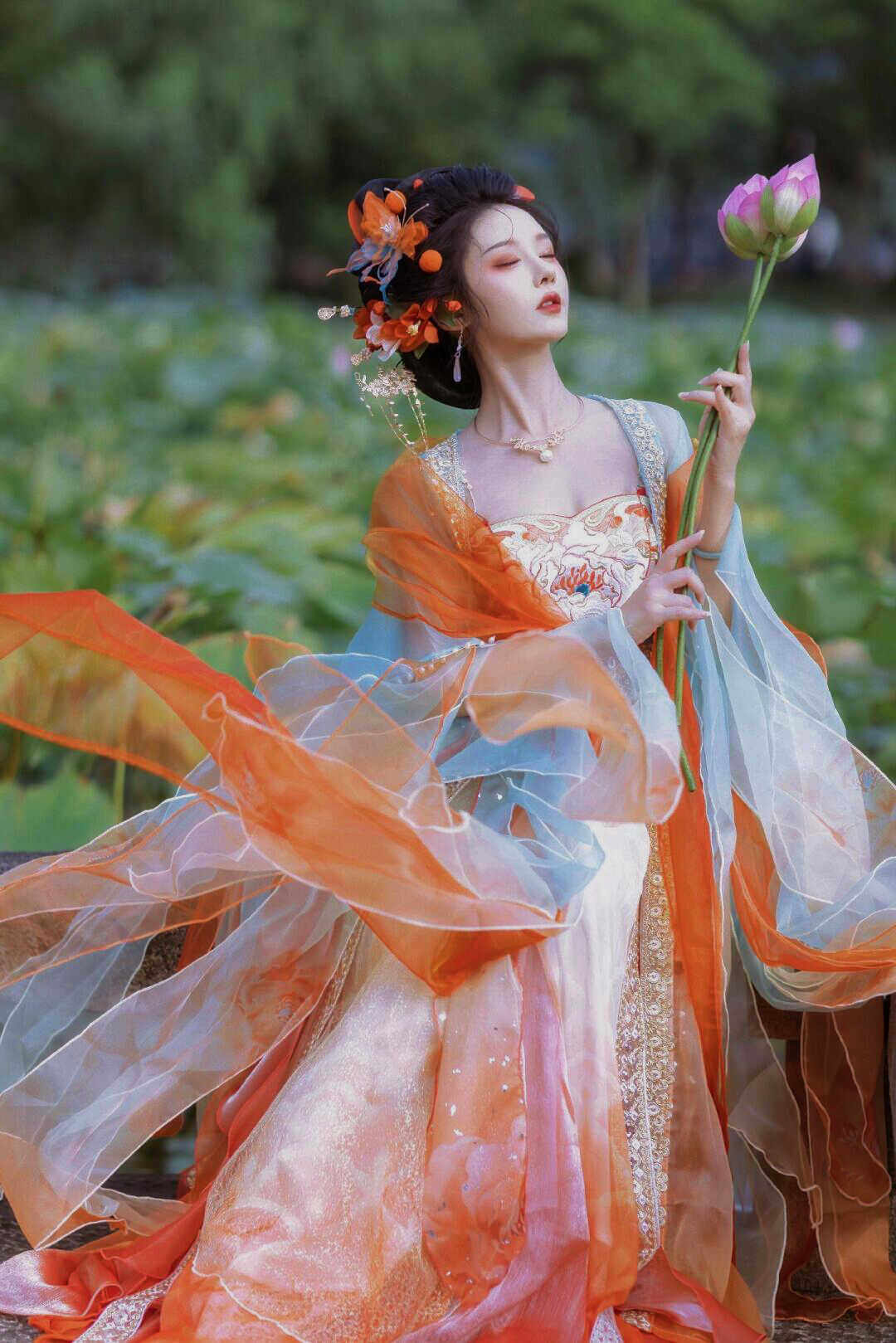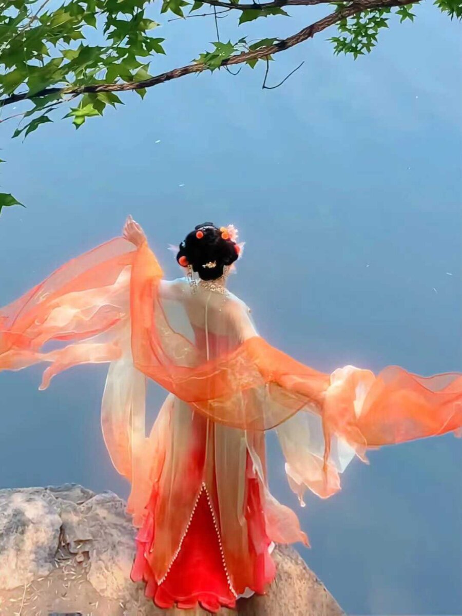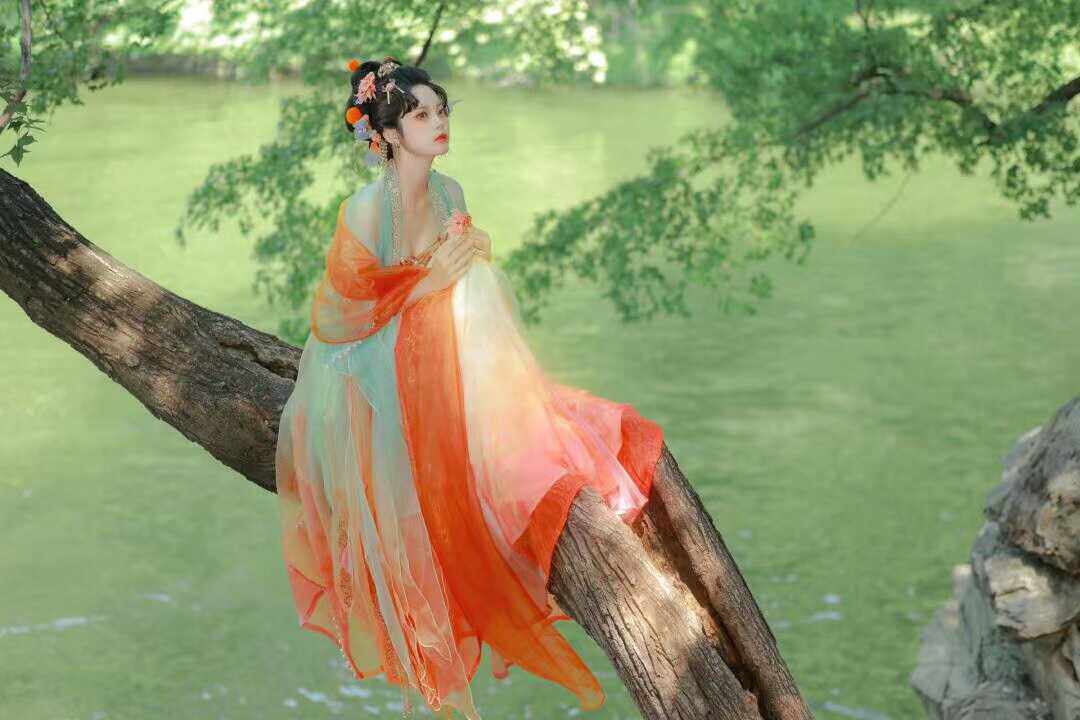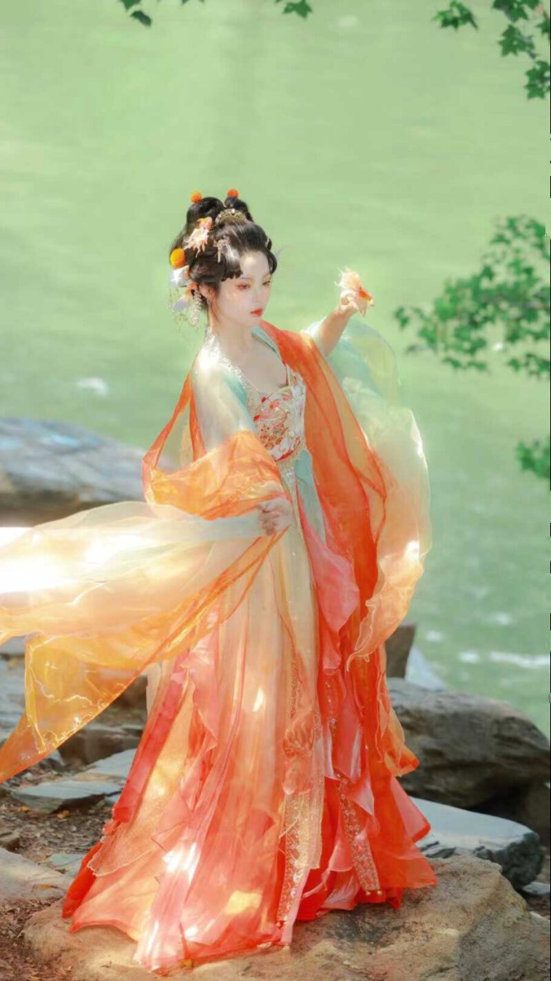 Tang Suit Han Dynasty Chest-Length Suspender Skirt Red Damask Embroider Myrobalan National Style Koi Petal Skirt Butterfly Sleeve Fairy Skirt Elegant