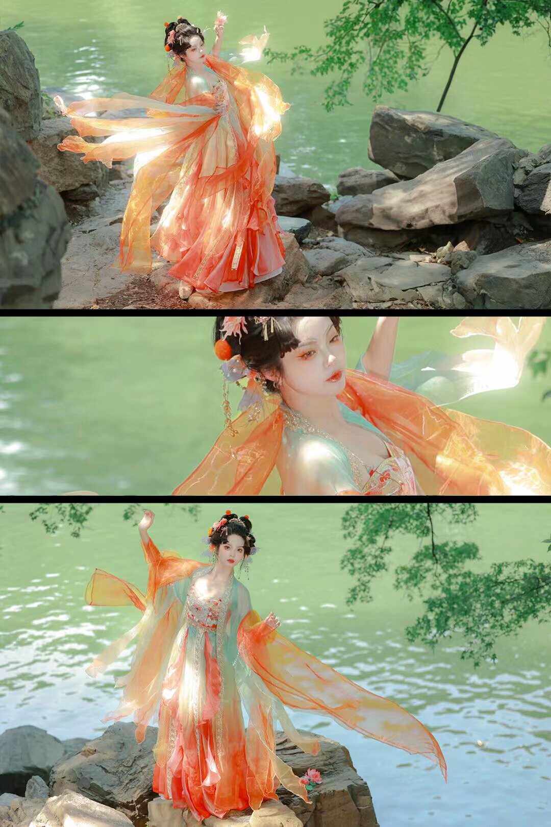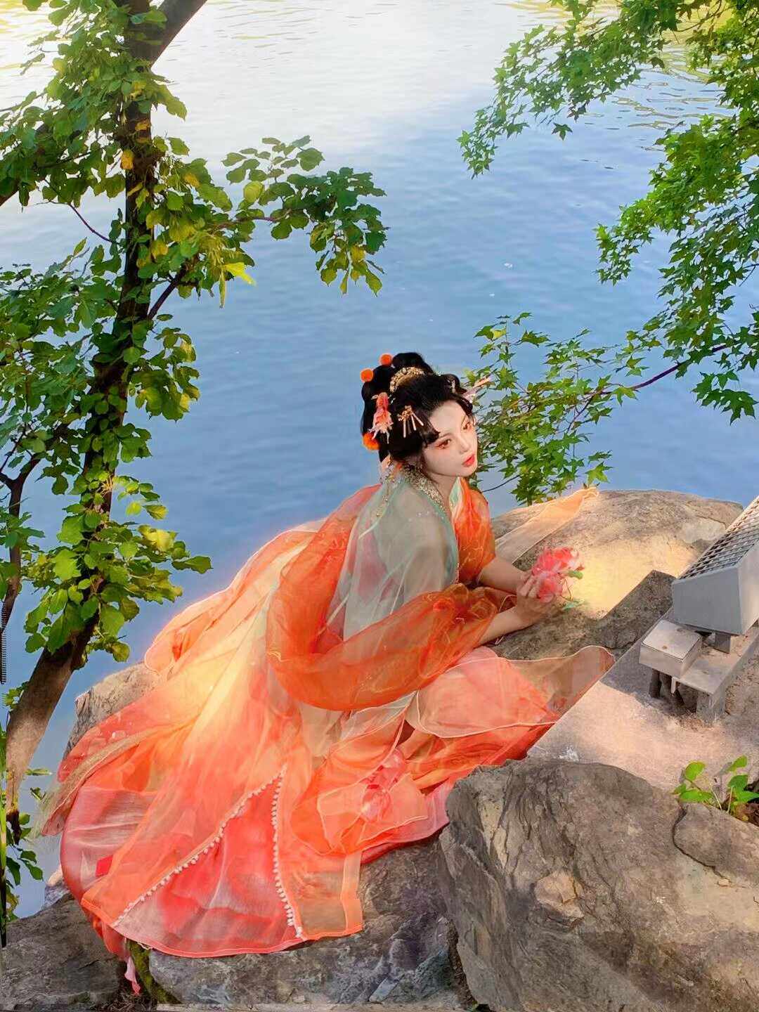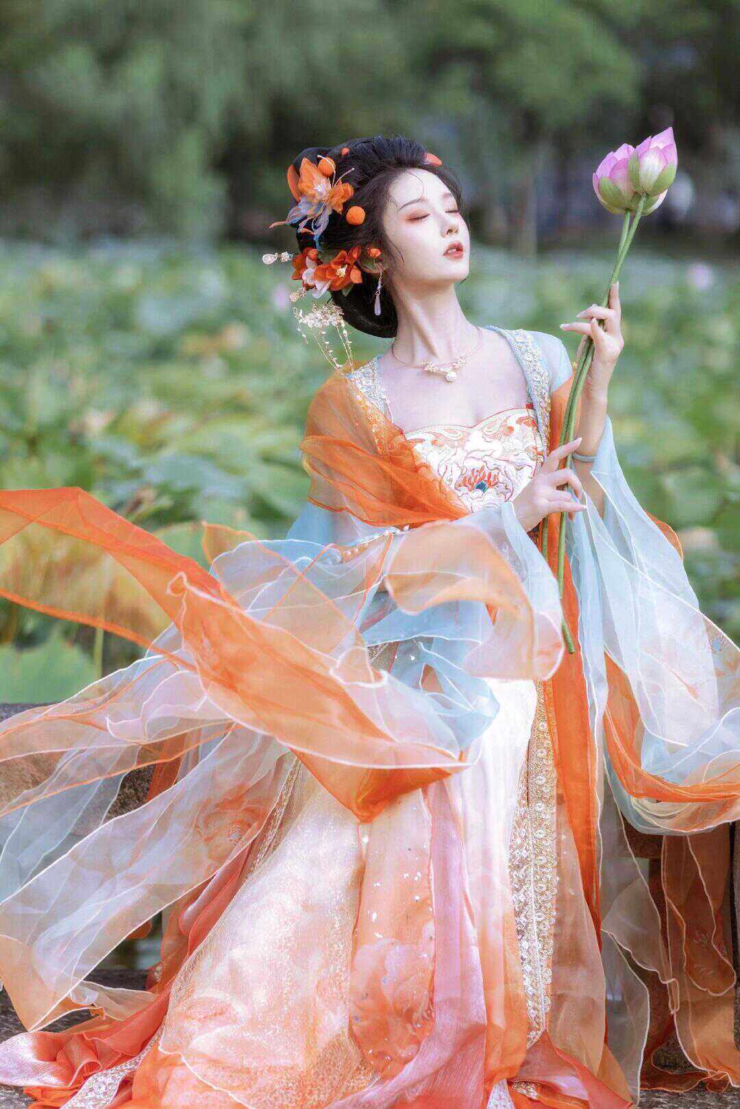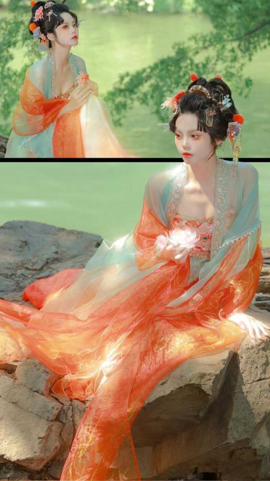 Tang Suit Han Dynasty Chest-Length Suspender Skirt Red Damask Embroider Myrobalan National Style Koi Petal Skirt Butterfly Sleeve Fairy Skirt Elegant