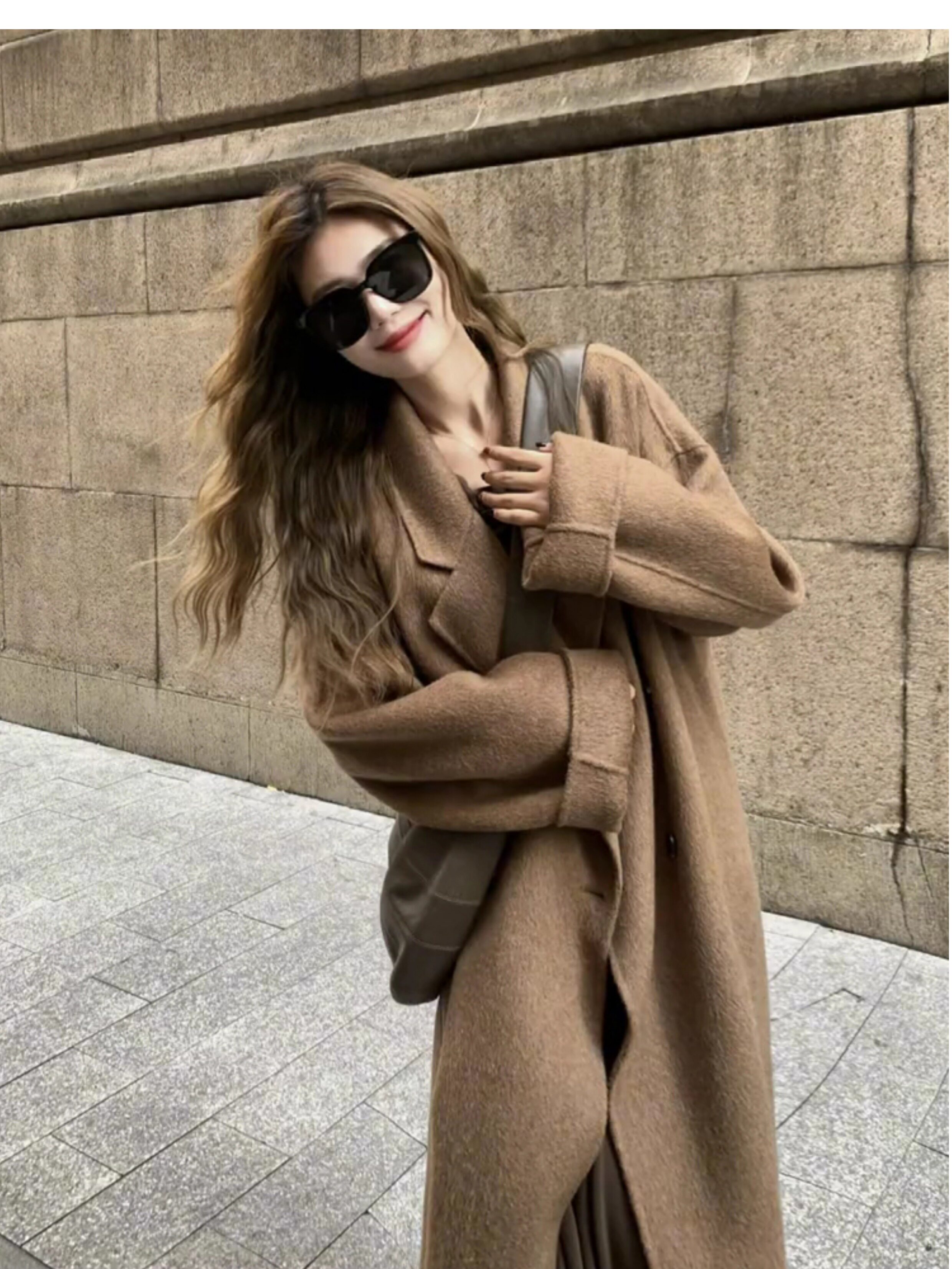 Double-Sided Cashmere Coat for Women 2025 Winter New Style Elegant Loose Lazy Style Mid-Length Melard Woolen Coat