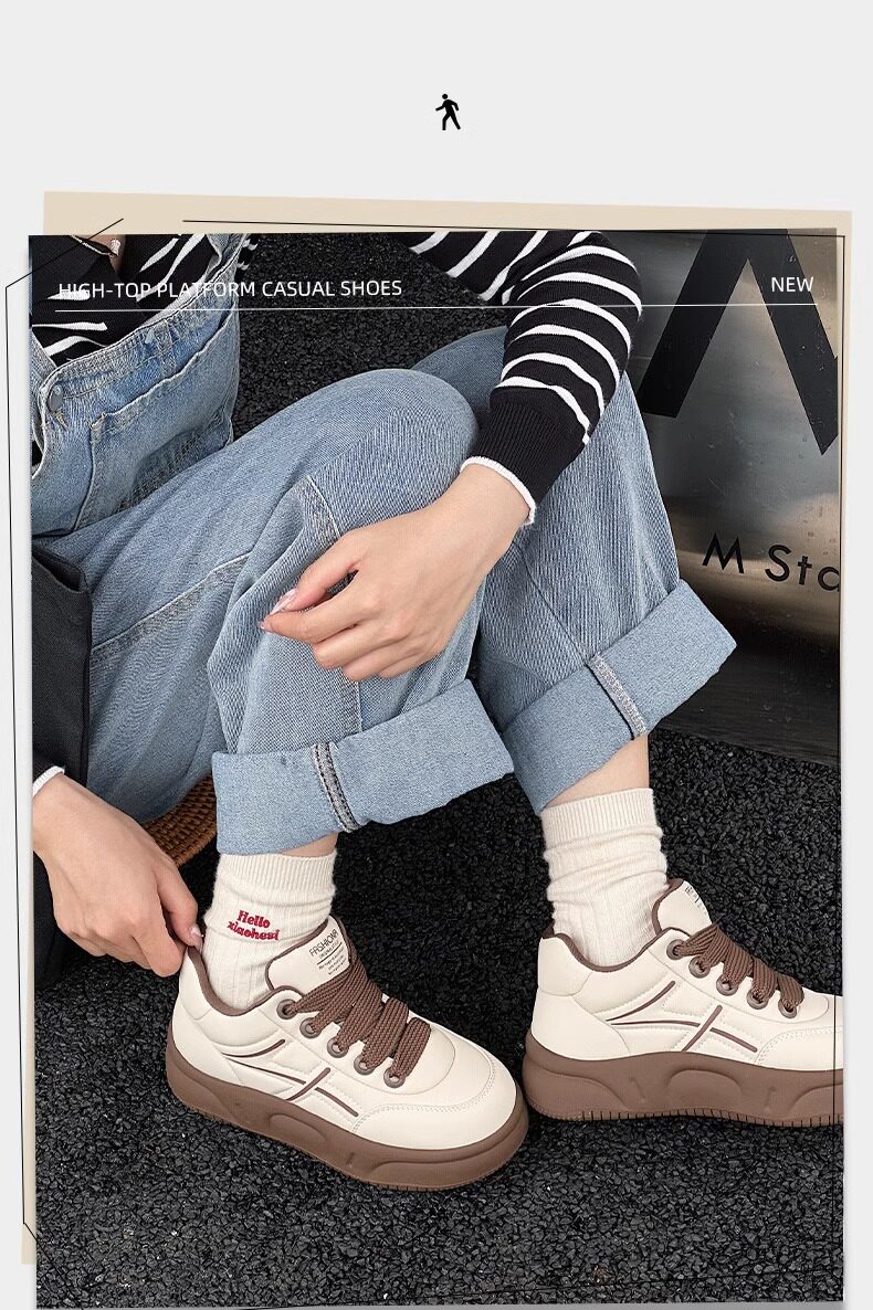 Sanli Genuine Leather Soft-Soled Loafers for Women 2025 New Comfortable Thick-Soled Sports Casual Shoes Versatile High-Top White Sneakers