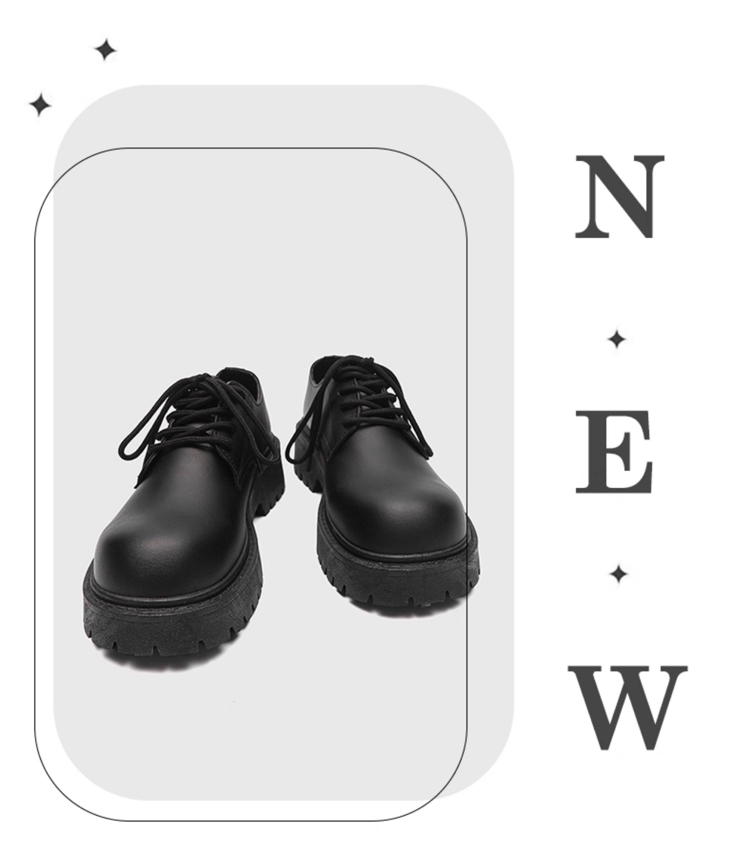 Black Derby Shoes for Men, Round Toe, High-End Feel, Autumn Thick-Soled Height-Increasing Men's Leather Shoes, Cleanfit Trendy Shoes