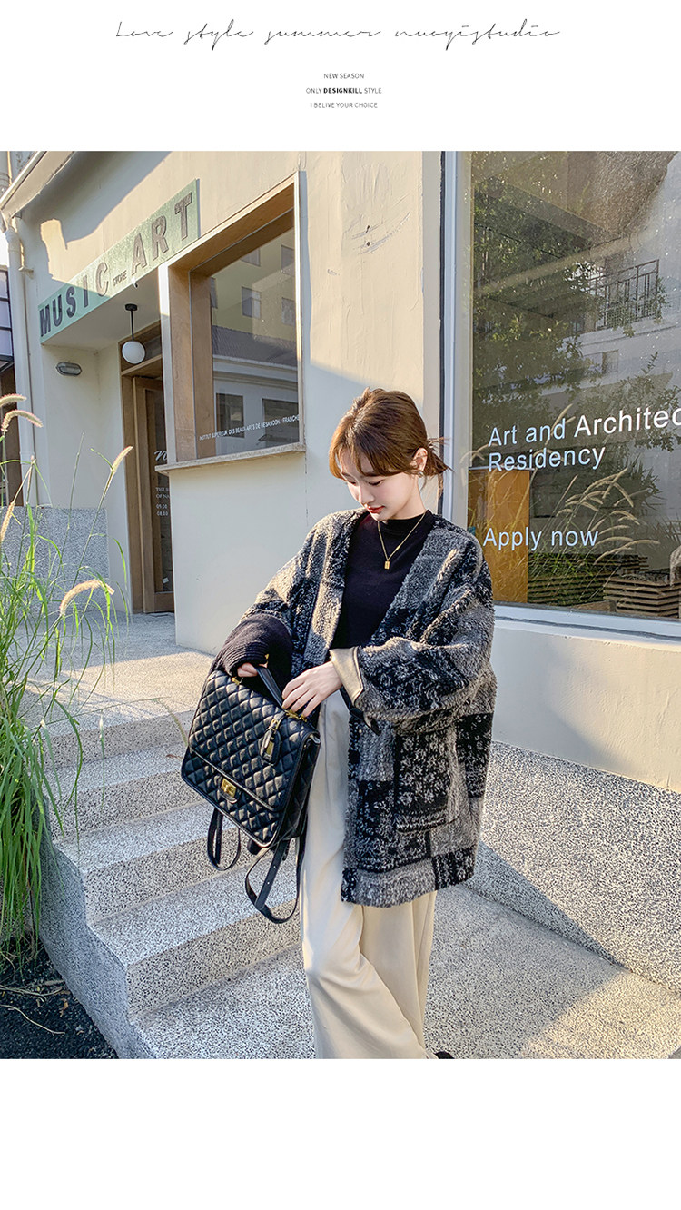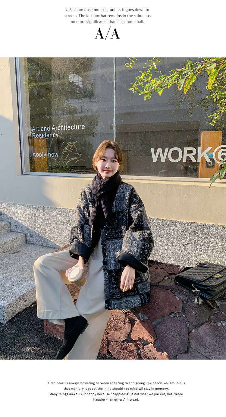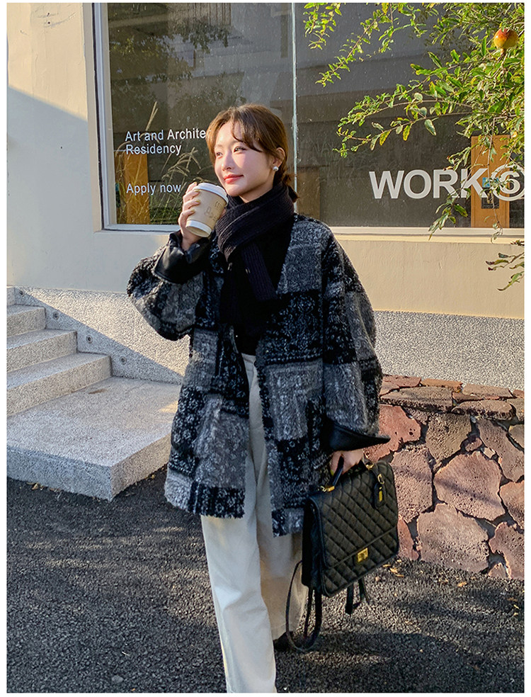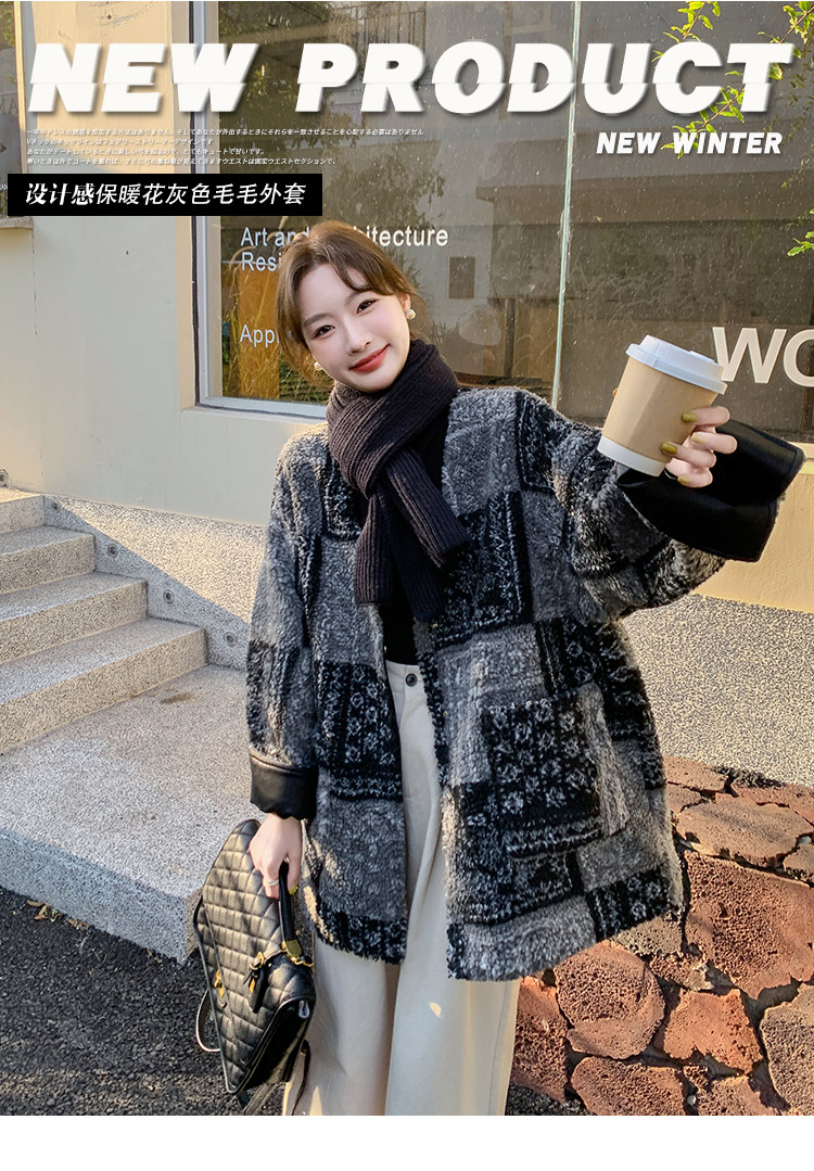 Designed Gray Plaid Lamb Wool Woolen Jacket for Women 2026 Winter New Fashion Stylish Warm Top