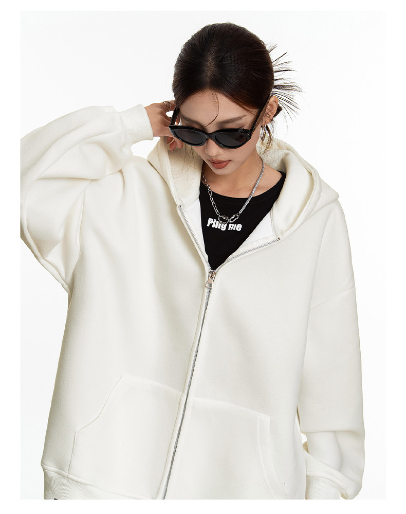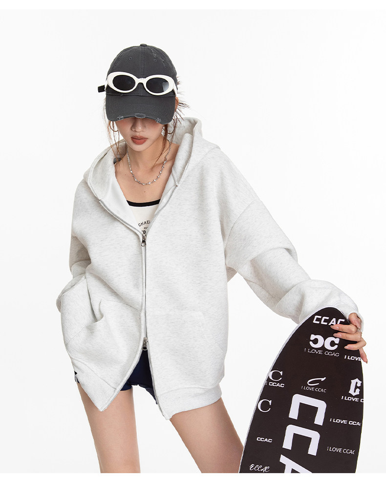 It Izzue American-Style Heavyweight Sweatshirt Jacket for Women, Spring and Autumn 2026 New Loose Hooded Cardigan, Casual Top
