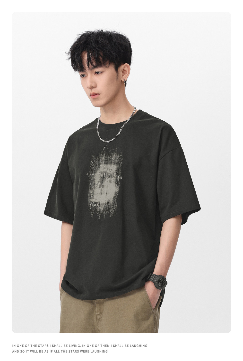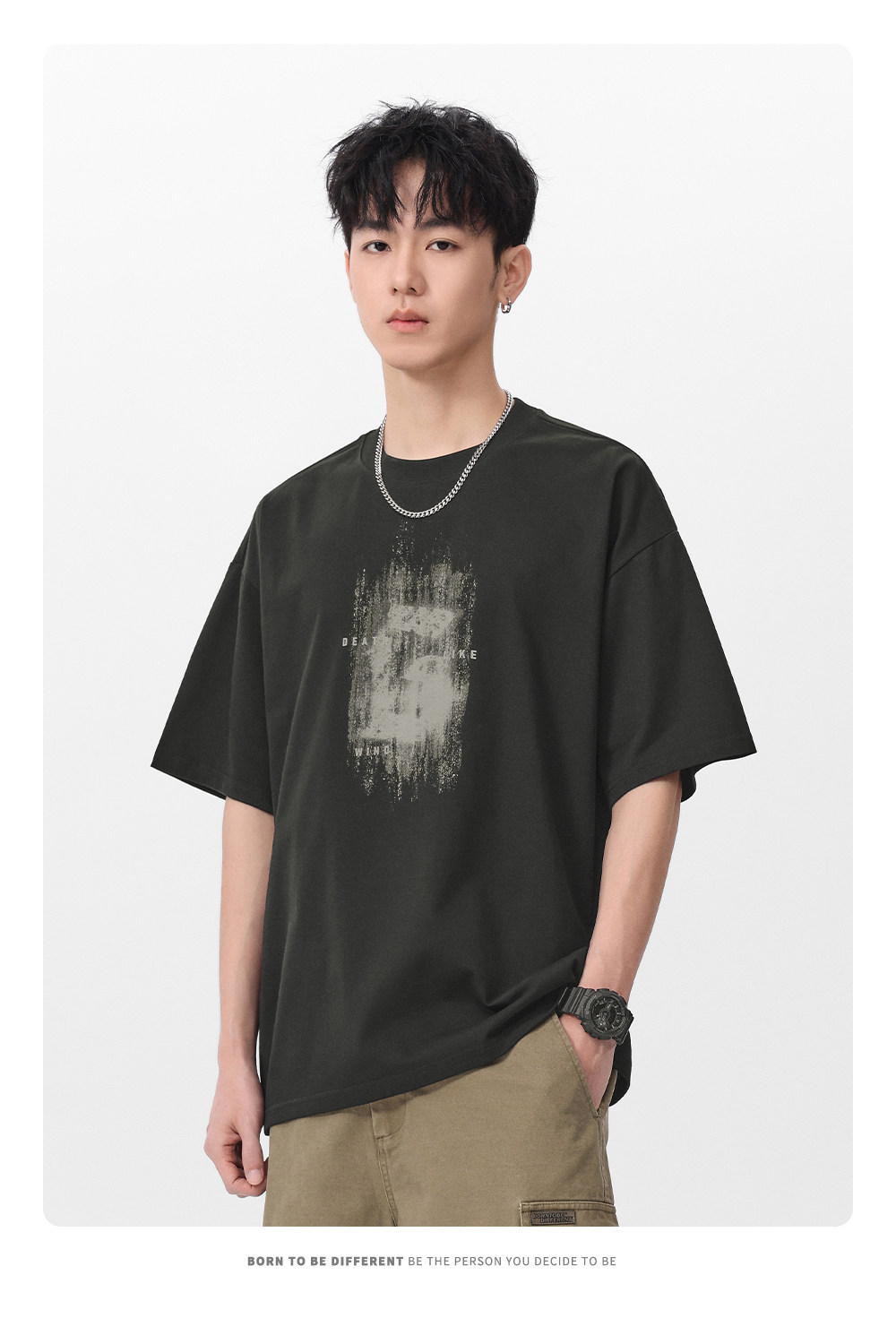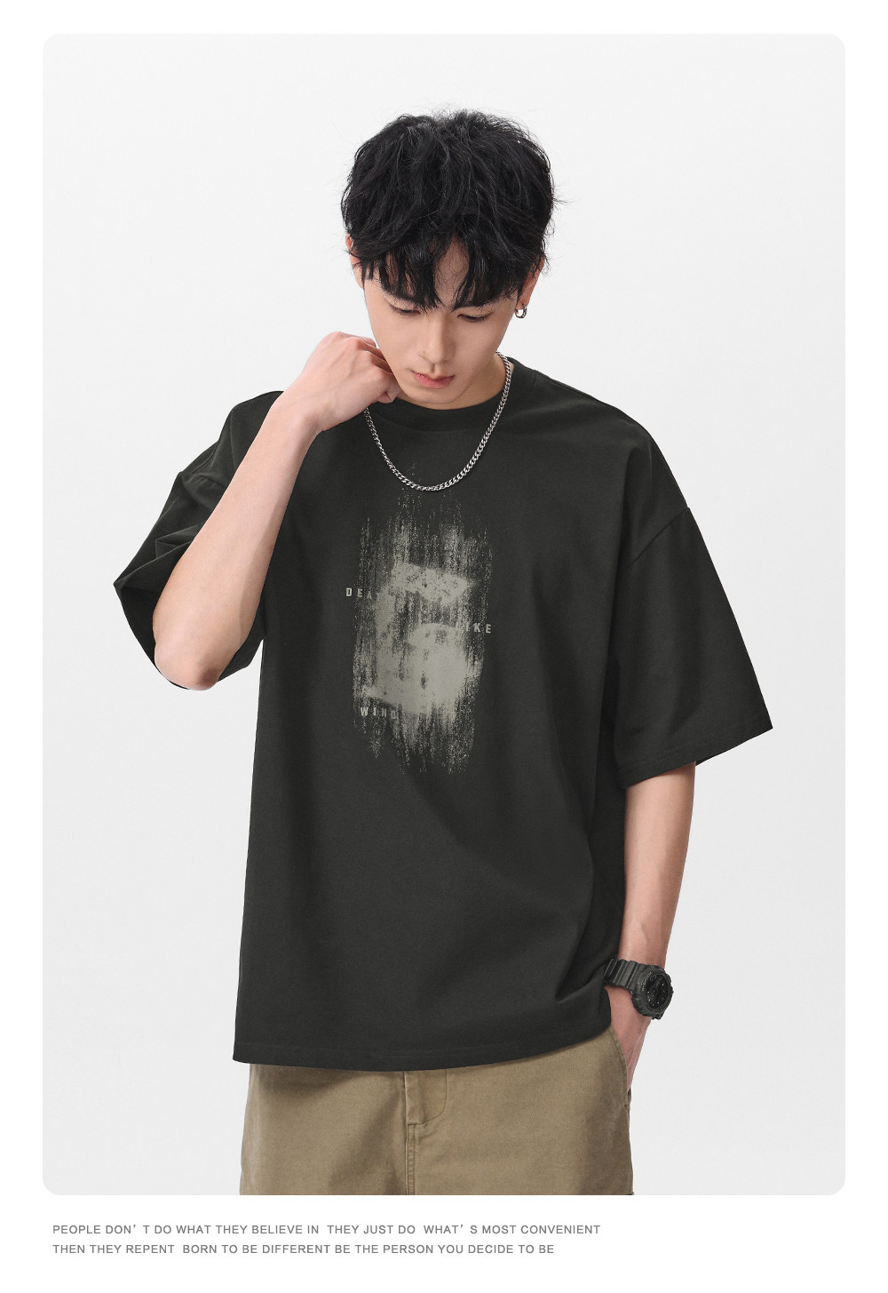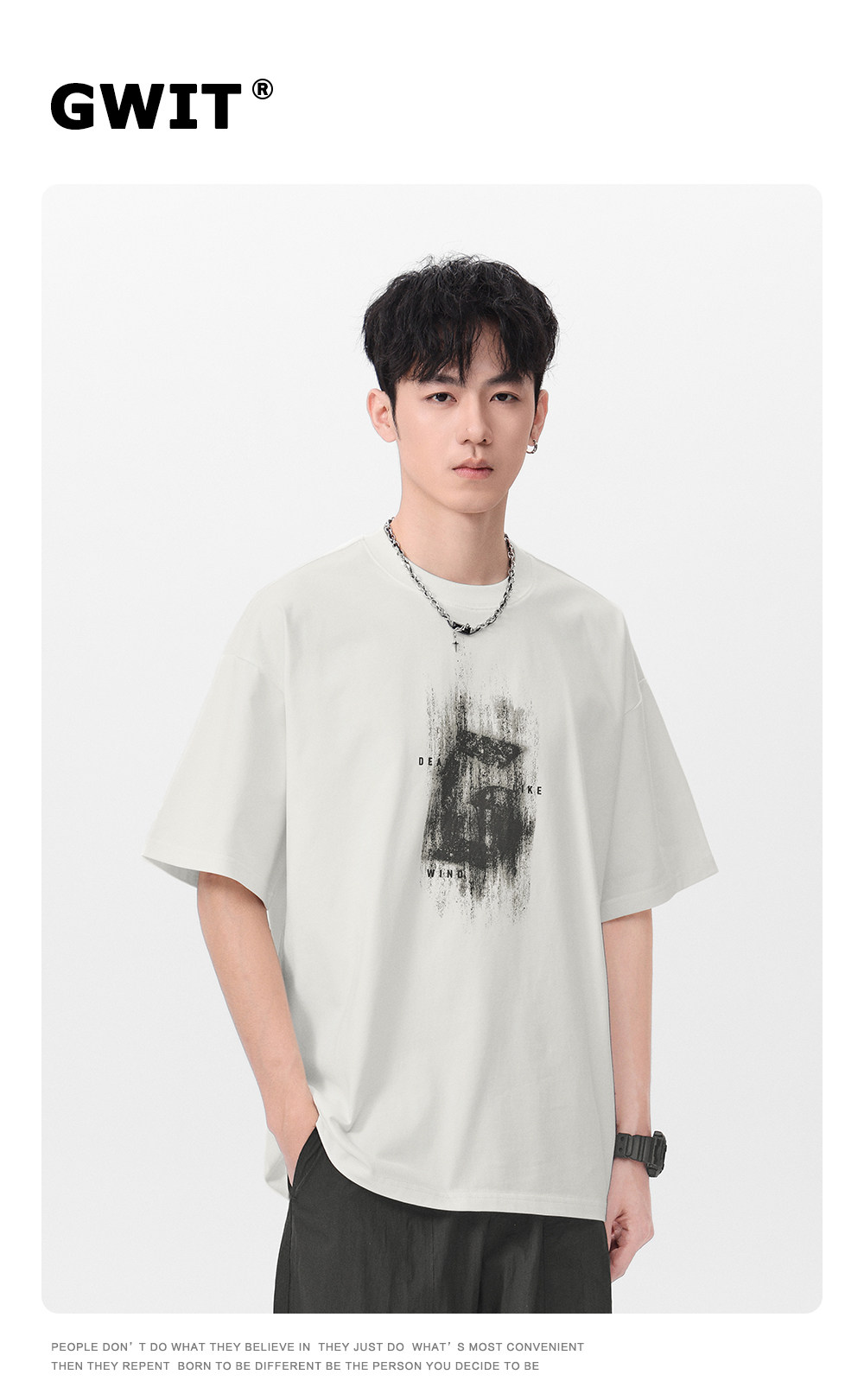 Gwit American High Street Retro Heavyweight Summer Trendy T-Shirt Half-Sleeve Trendy Brand Printed Pure Cotton Short-Sleeve T-Shirt for Men
