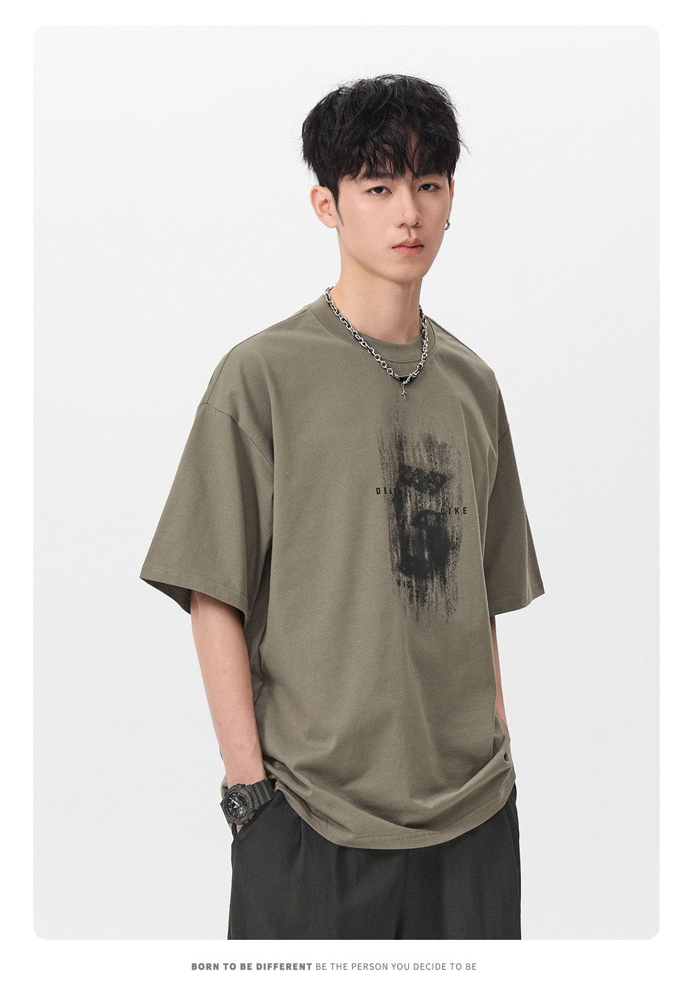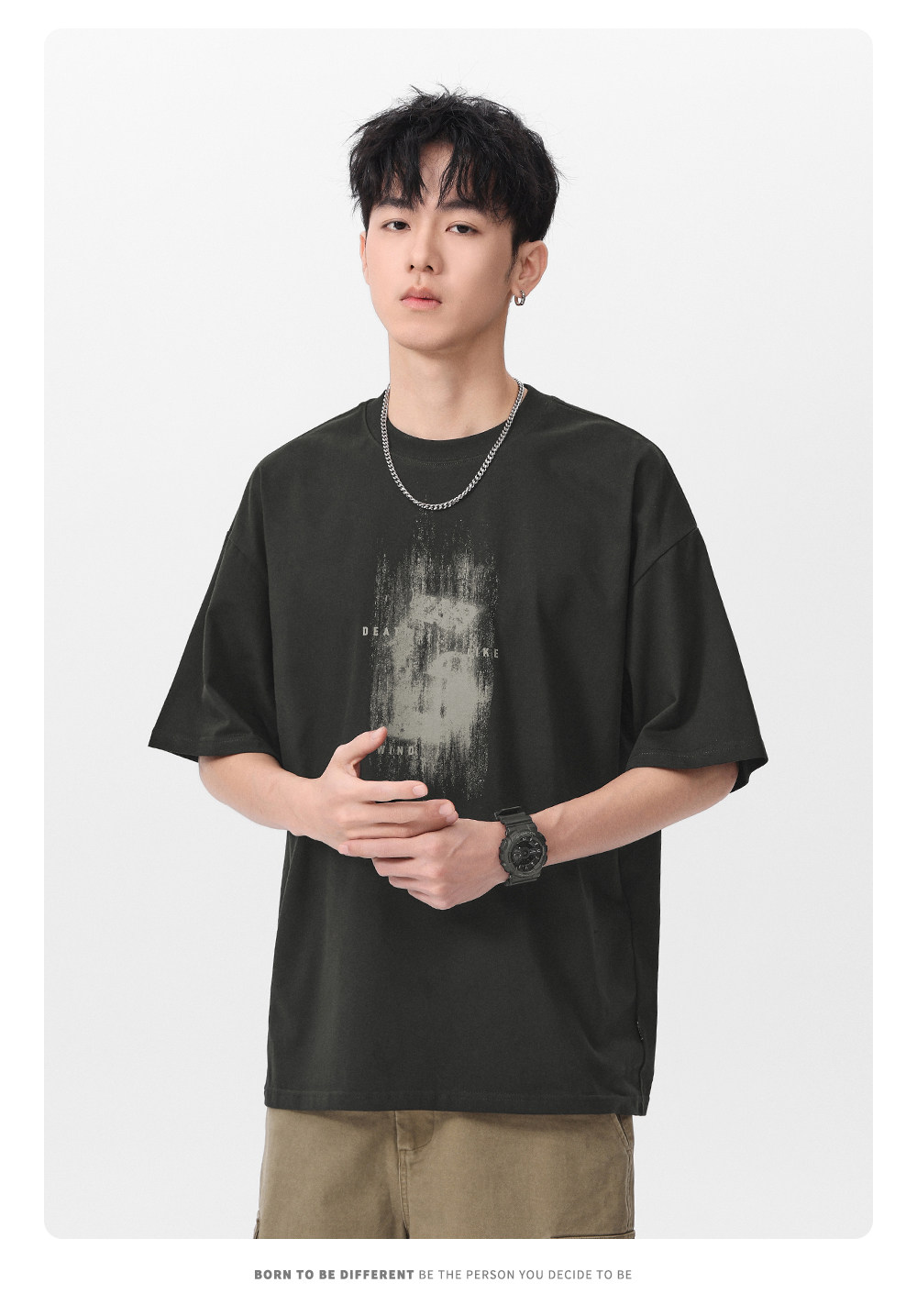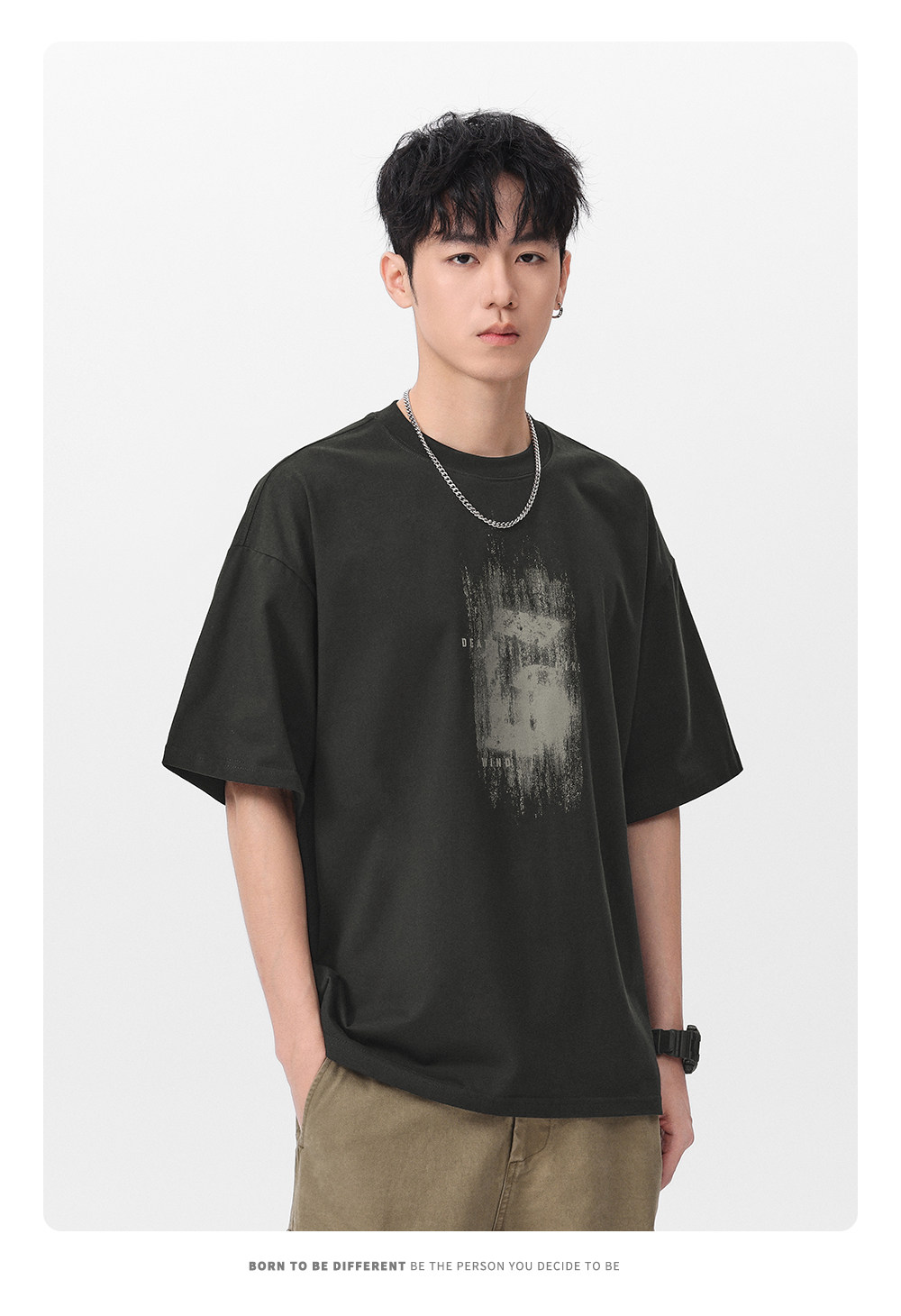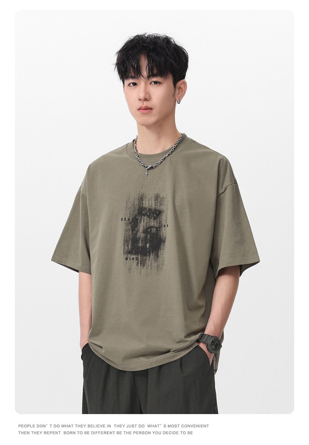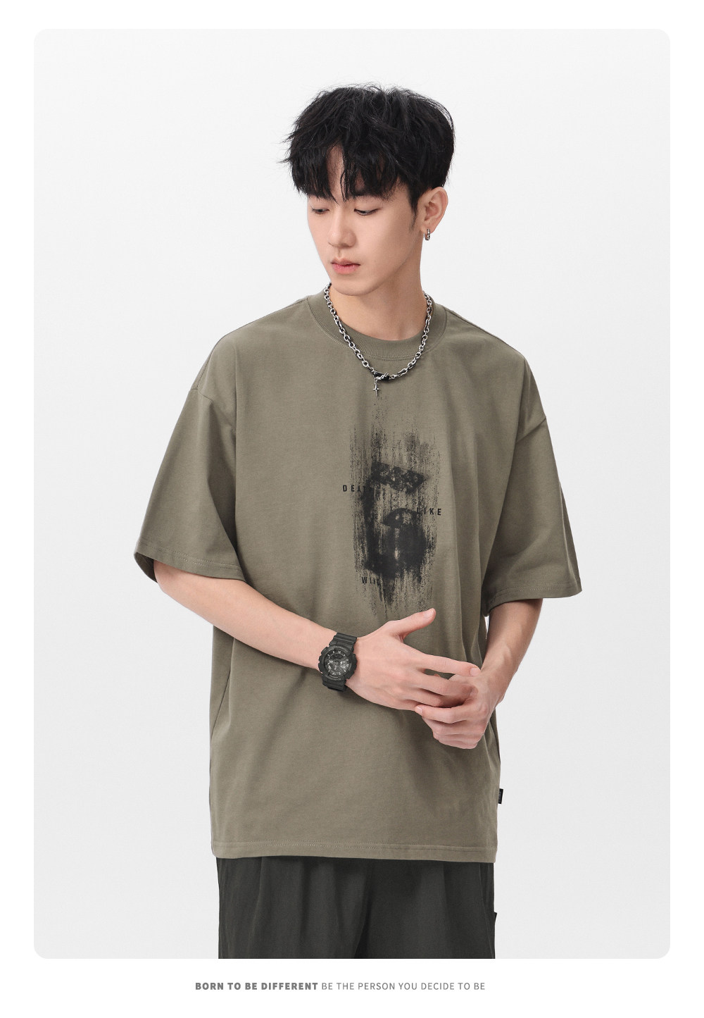 Gwit American High Street Retro Heavyweight Summer Trendy T-Shirt Half-Sleeve Trendy Brand Printed Pure Cotton Short-Sleeve T-Shirt for Men