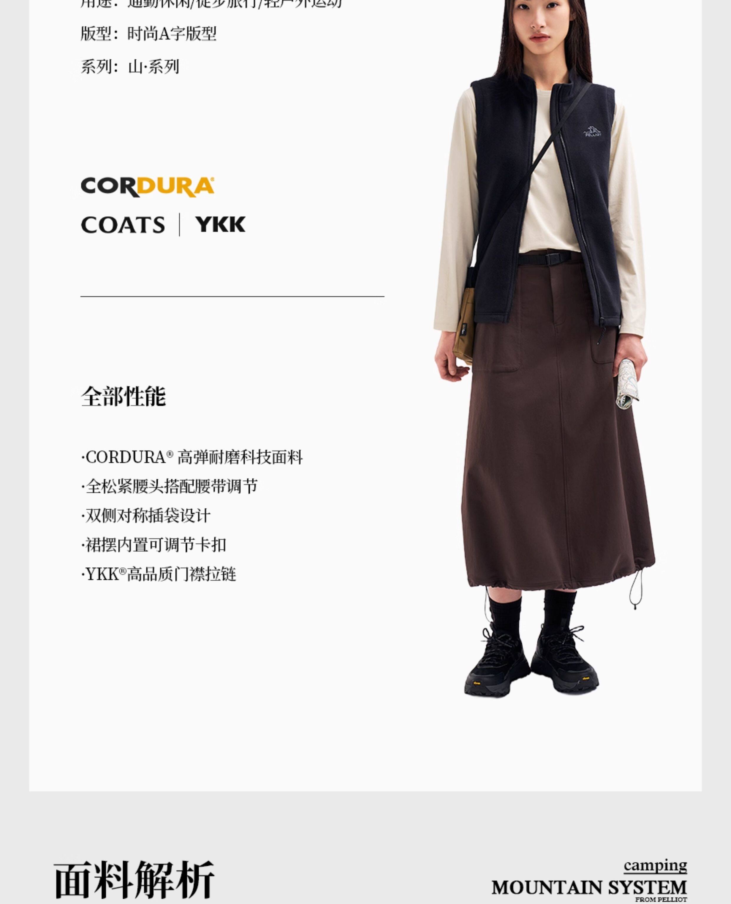 Pelliot Outdoor Skirt for Women, New Spring Model, Cordura Large Hem, Wear-Resistant, Breathable, Hiking Sports Long Skirt