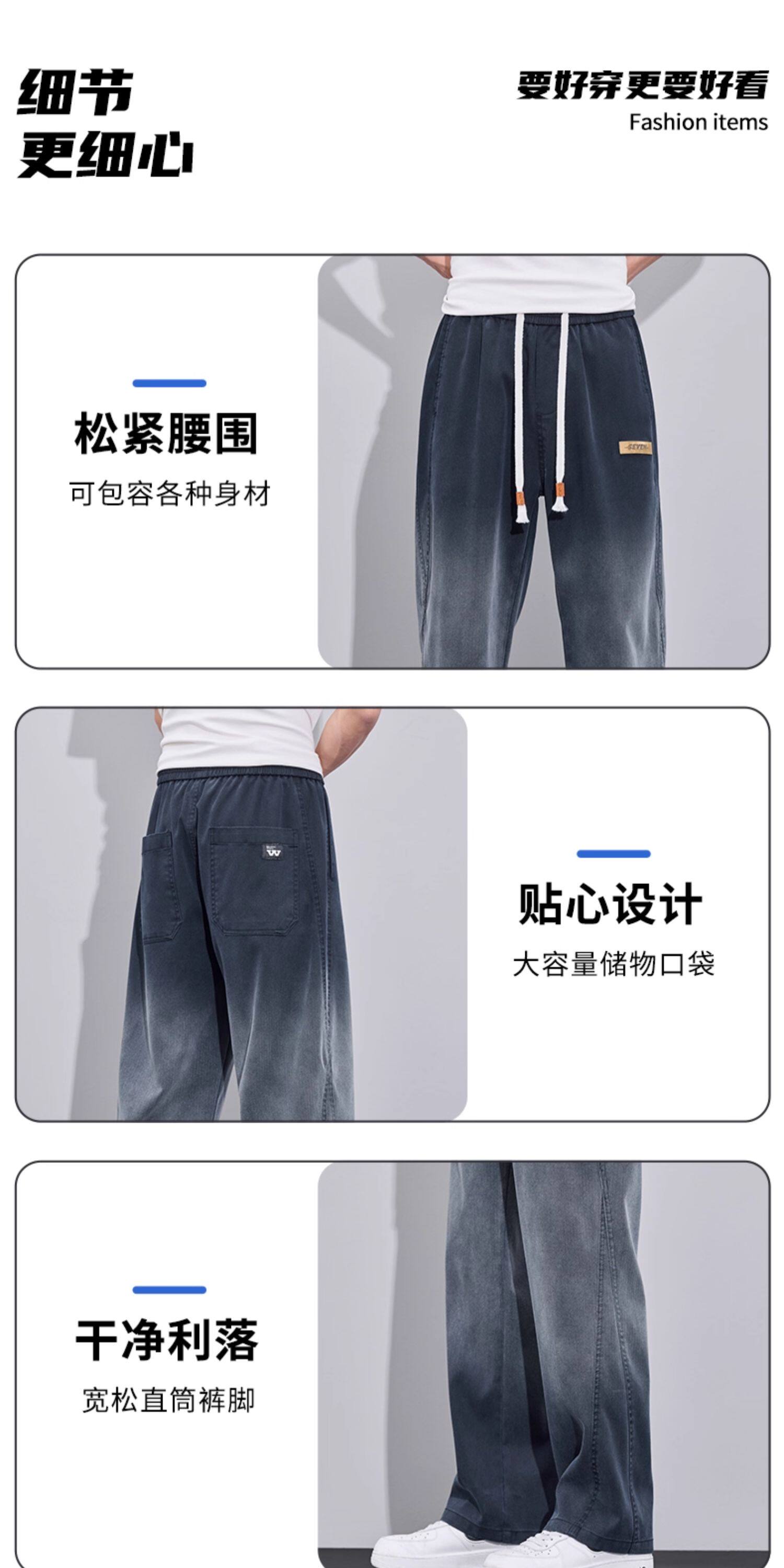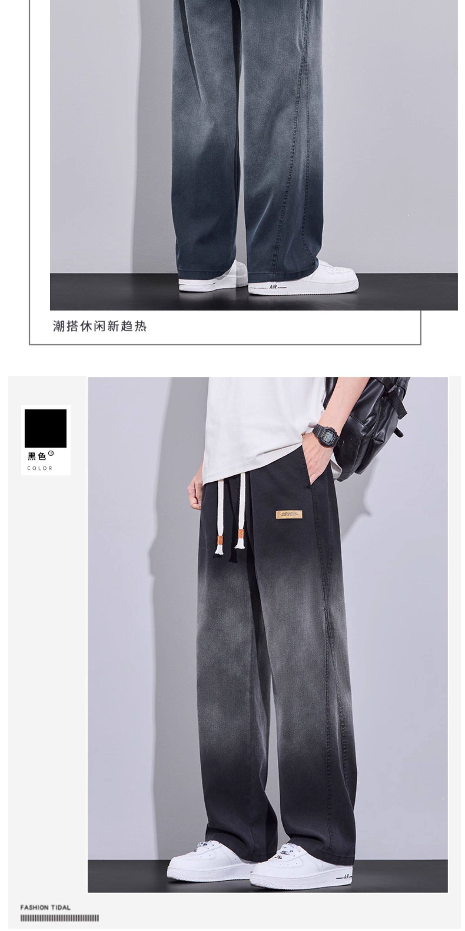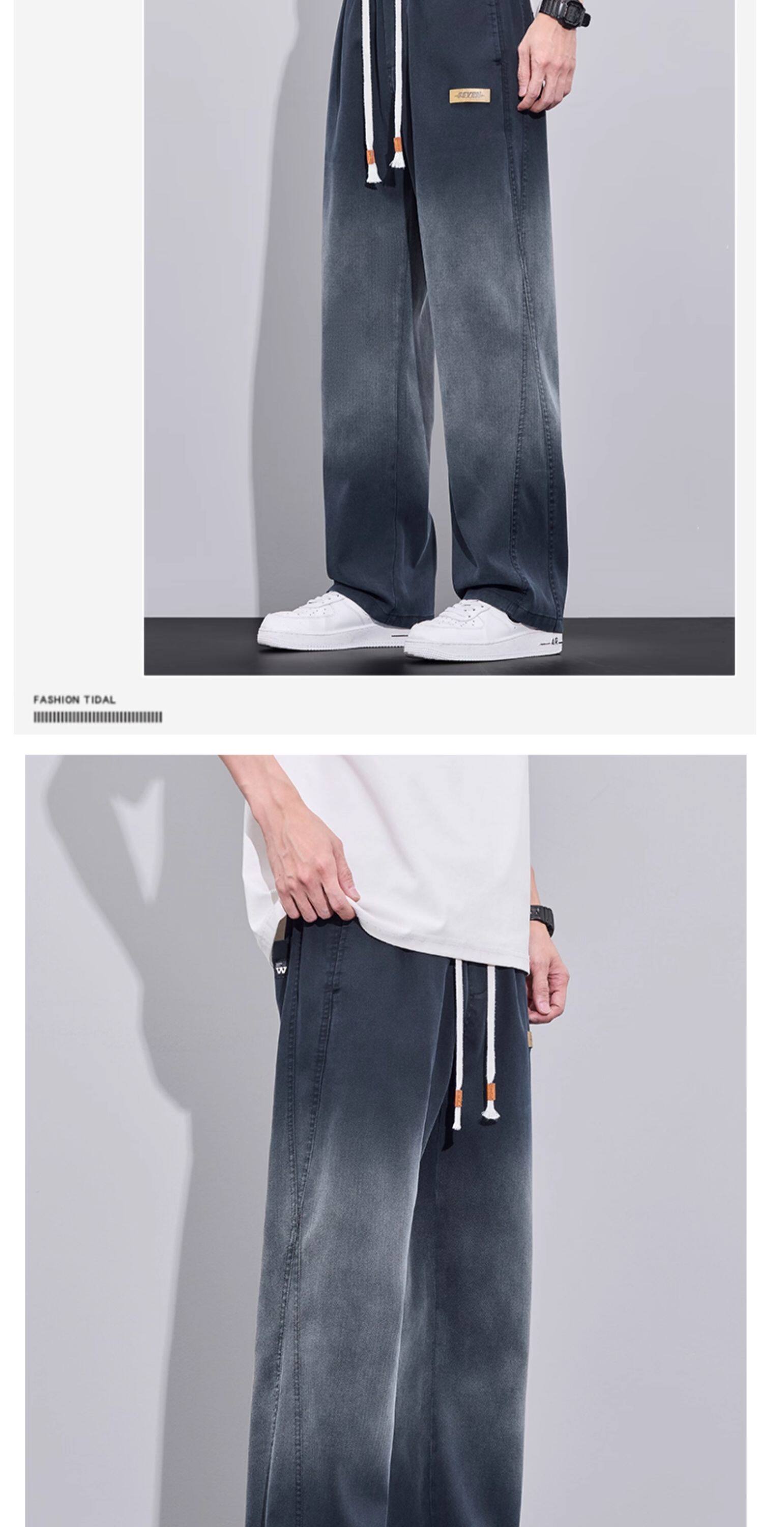 Tencel Jeans for Men, Summer Thin Style 2026 New Gradient Straight Loose American Trendy Casual Long Pants