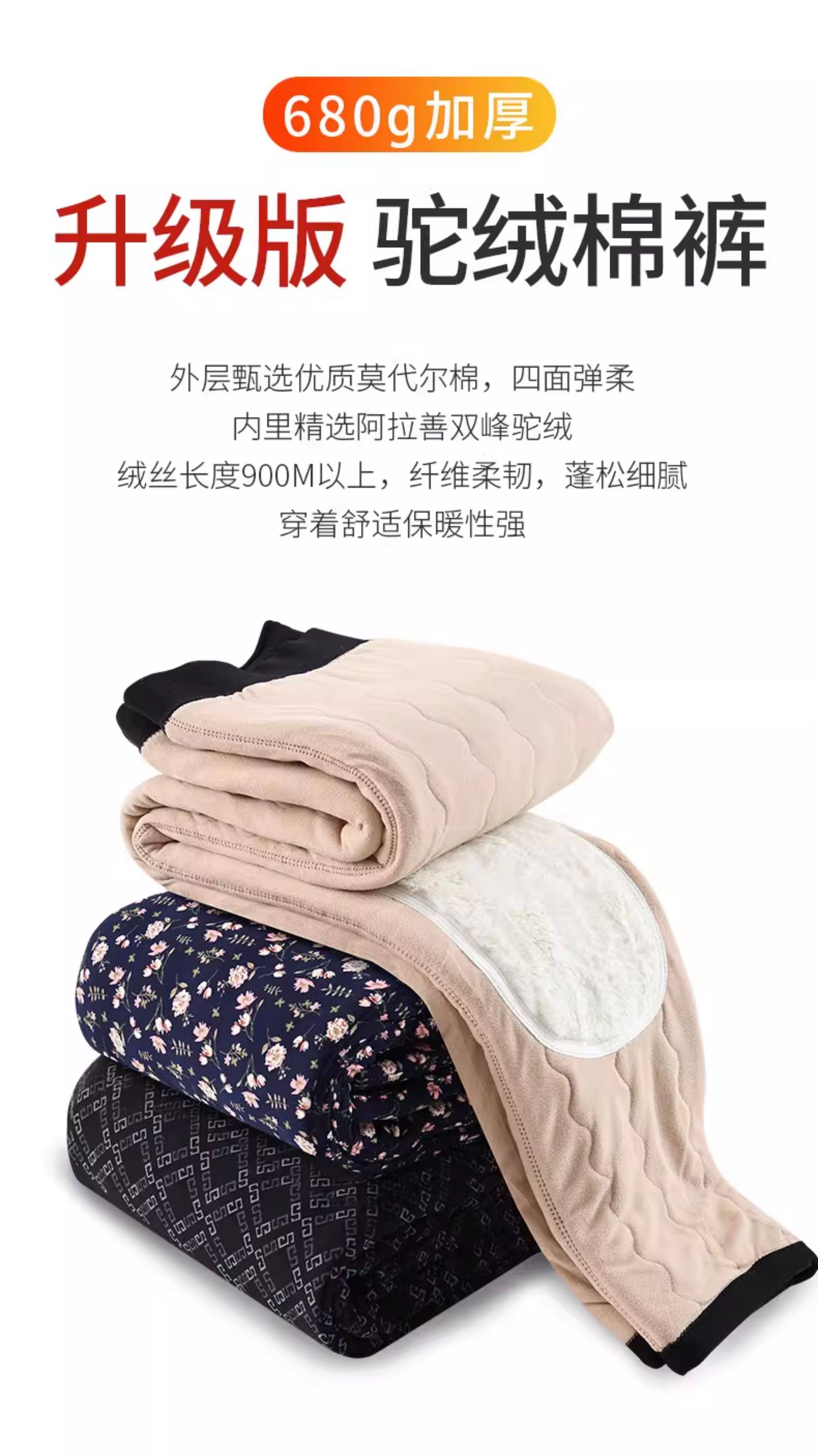 Elderly Women's Winter Cotton Pants for Outdoor Wear, Fleece-Lined, Thickened, High-Waisted, Plus-Size, Camel Wool, Middle-Aged and Elderly Mothers' Warm Pants