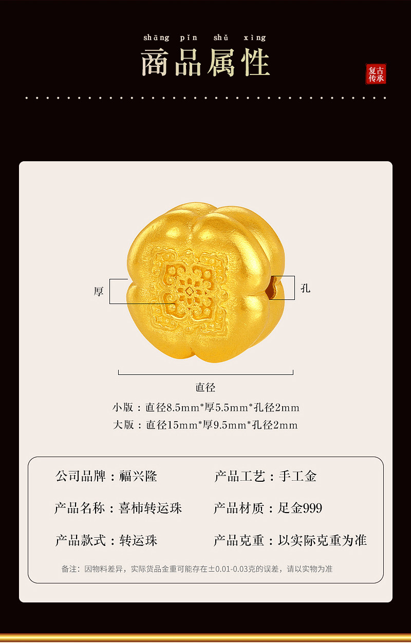 Fuxinglong Lucky Persimmon Transfer Beads Gold Persimmon Handmade DIY Bracelet for Women G2524