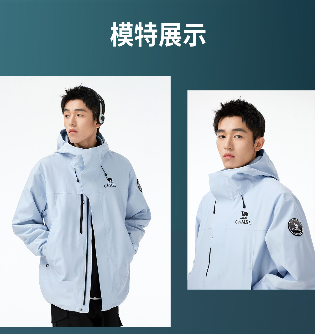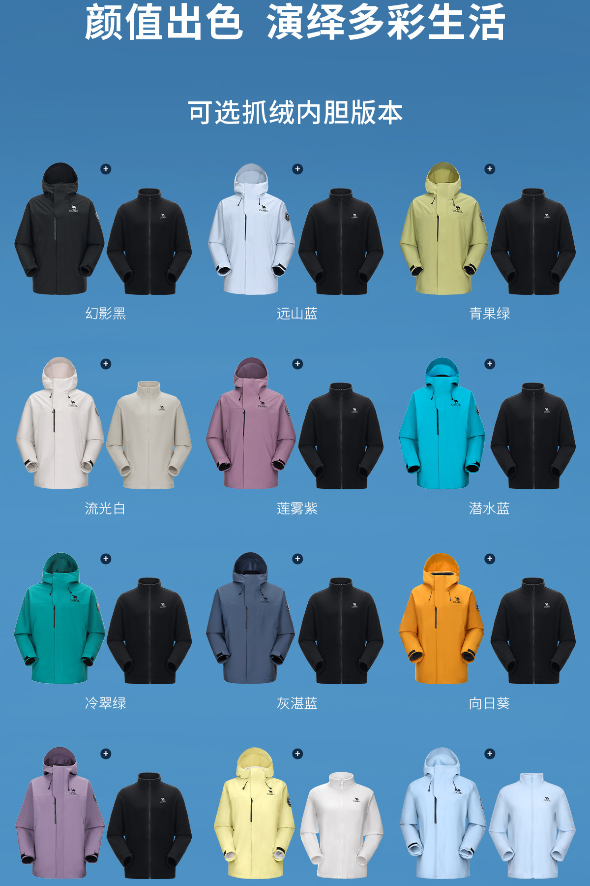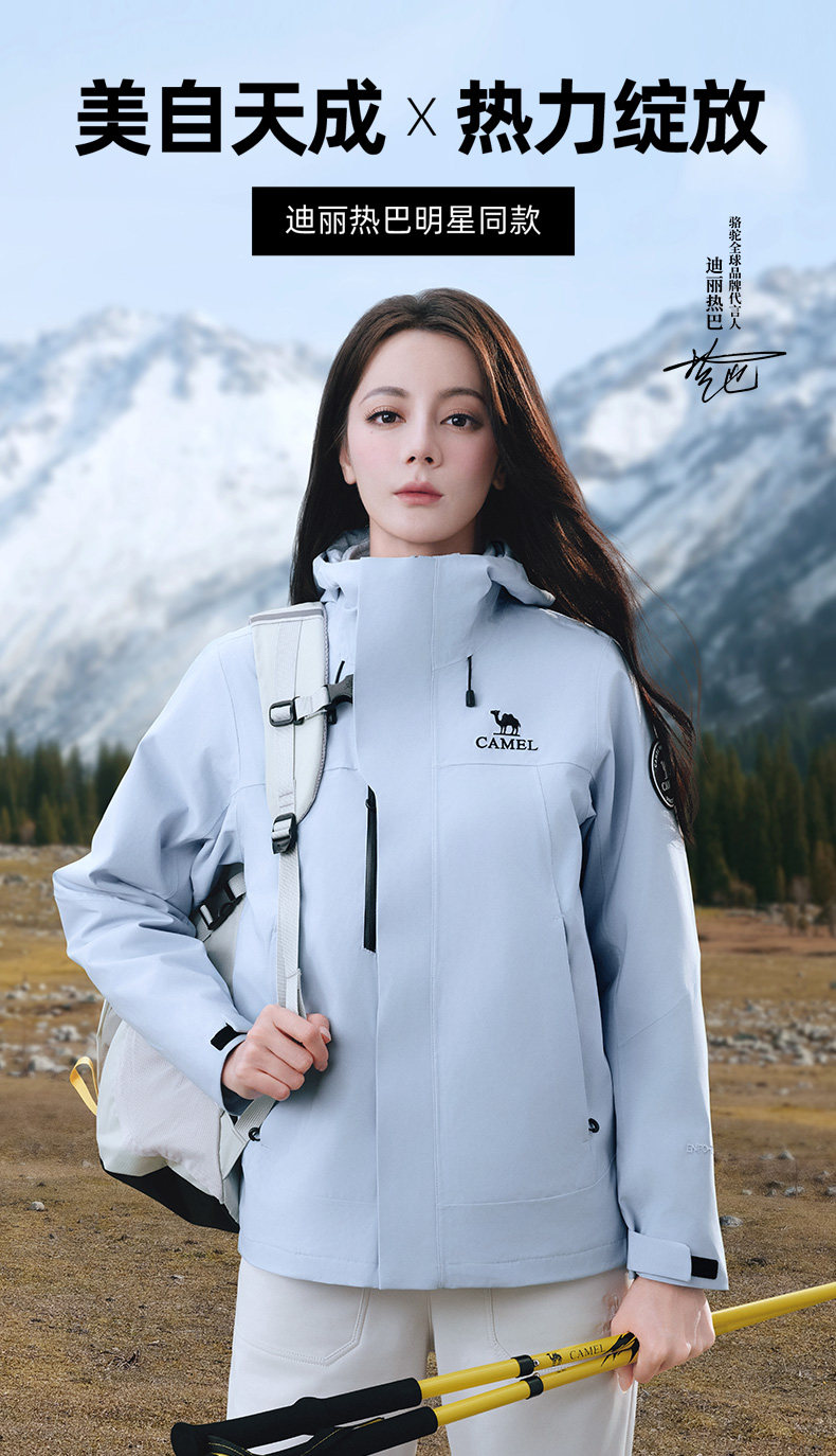 [Same Style as Dilraba] Camel Blue Jacket for Women with Goose down Lining, down Jacket Three-In-One Coat for Men