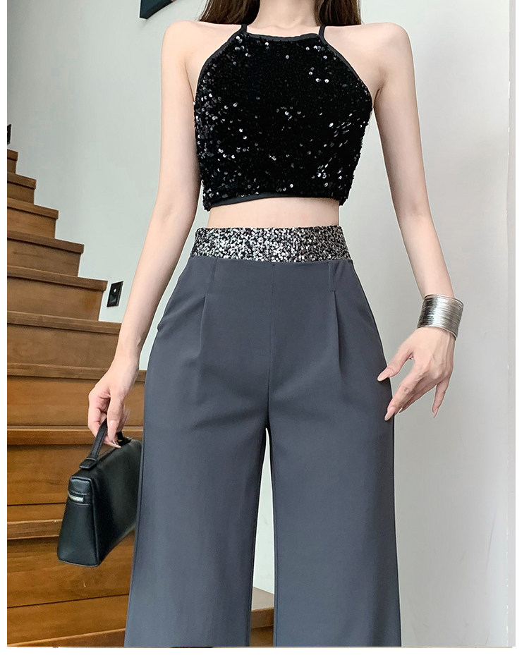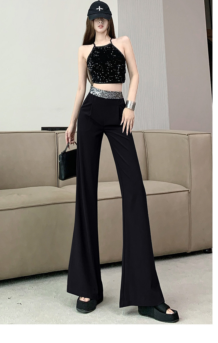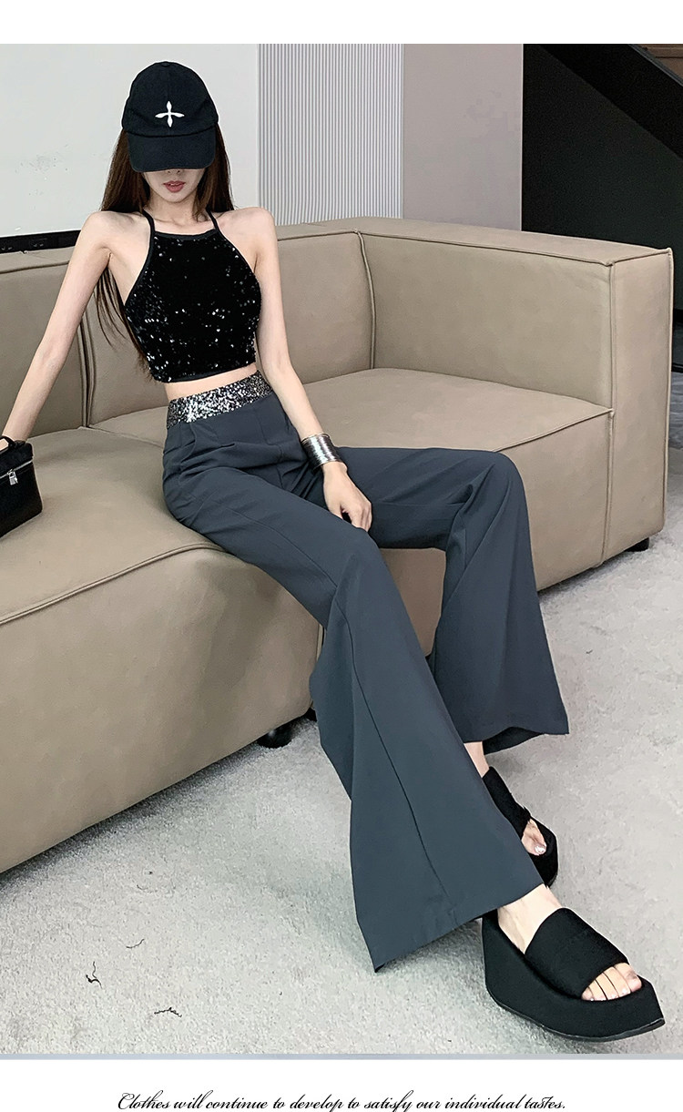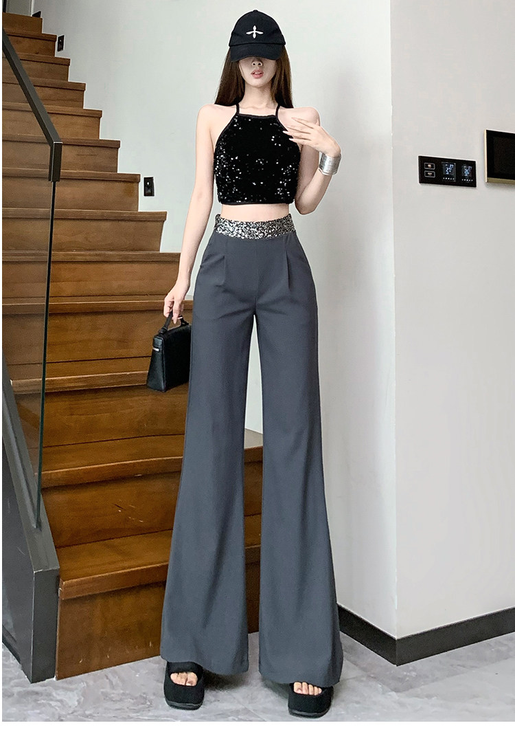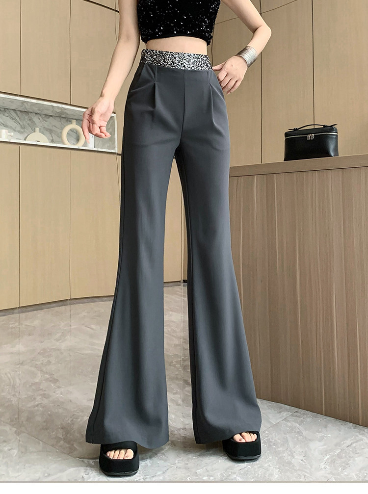 Korean Chic Sequin Patchwork Casual Suit Pants Women's Fashion High-Waisted Slimming Loose Long Floor-Length Pants