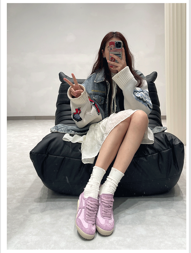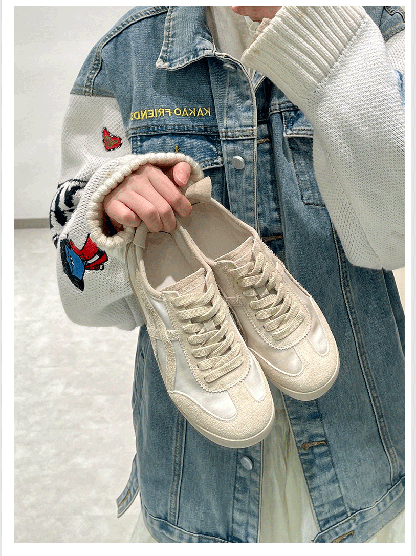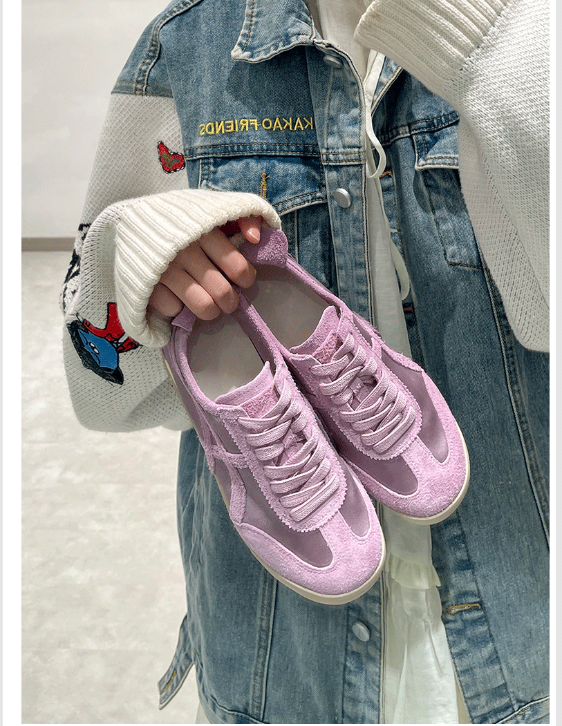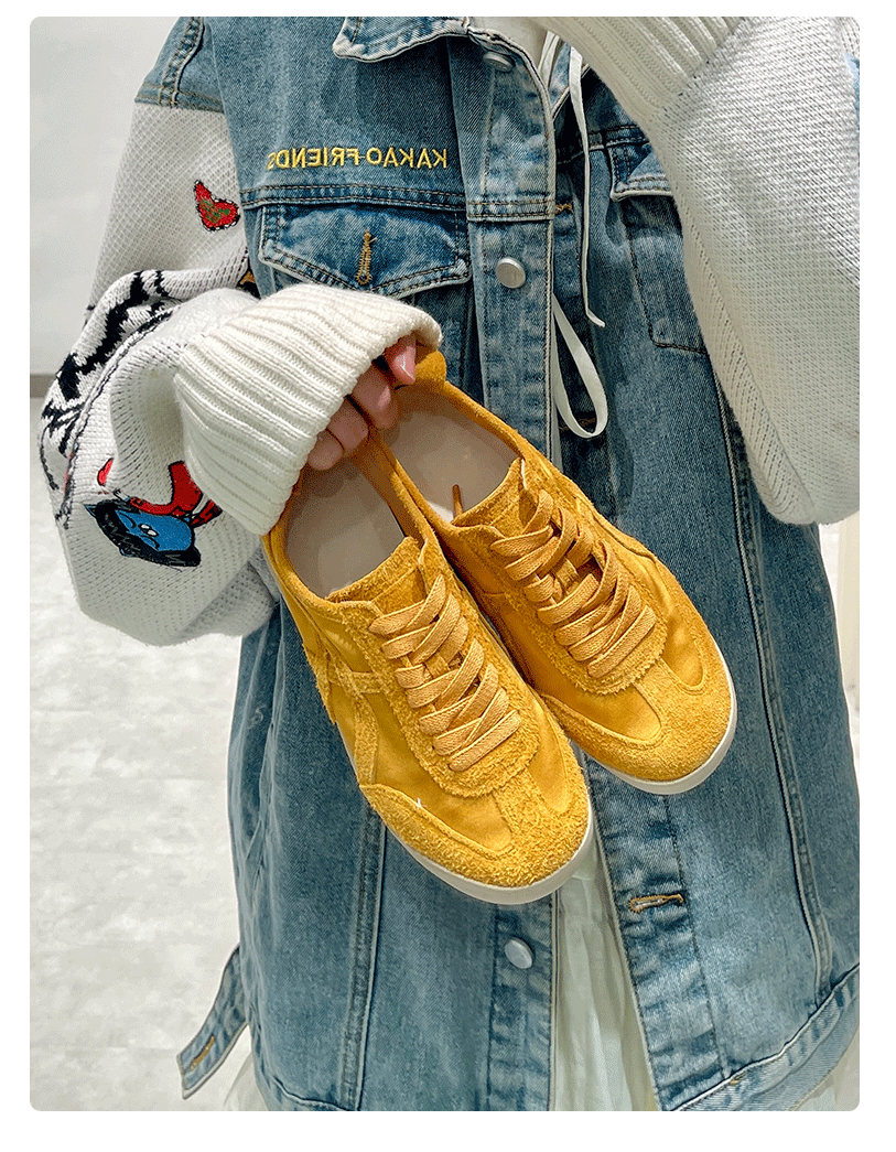 Sanli Genuine Leather Training Shoes for Women 2026 Spring and Autumn New Round-Toe Lace-Up Retro Forrest Gump Shoes Fashionable Casual Sneakers