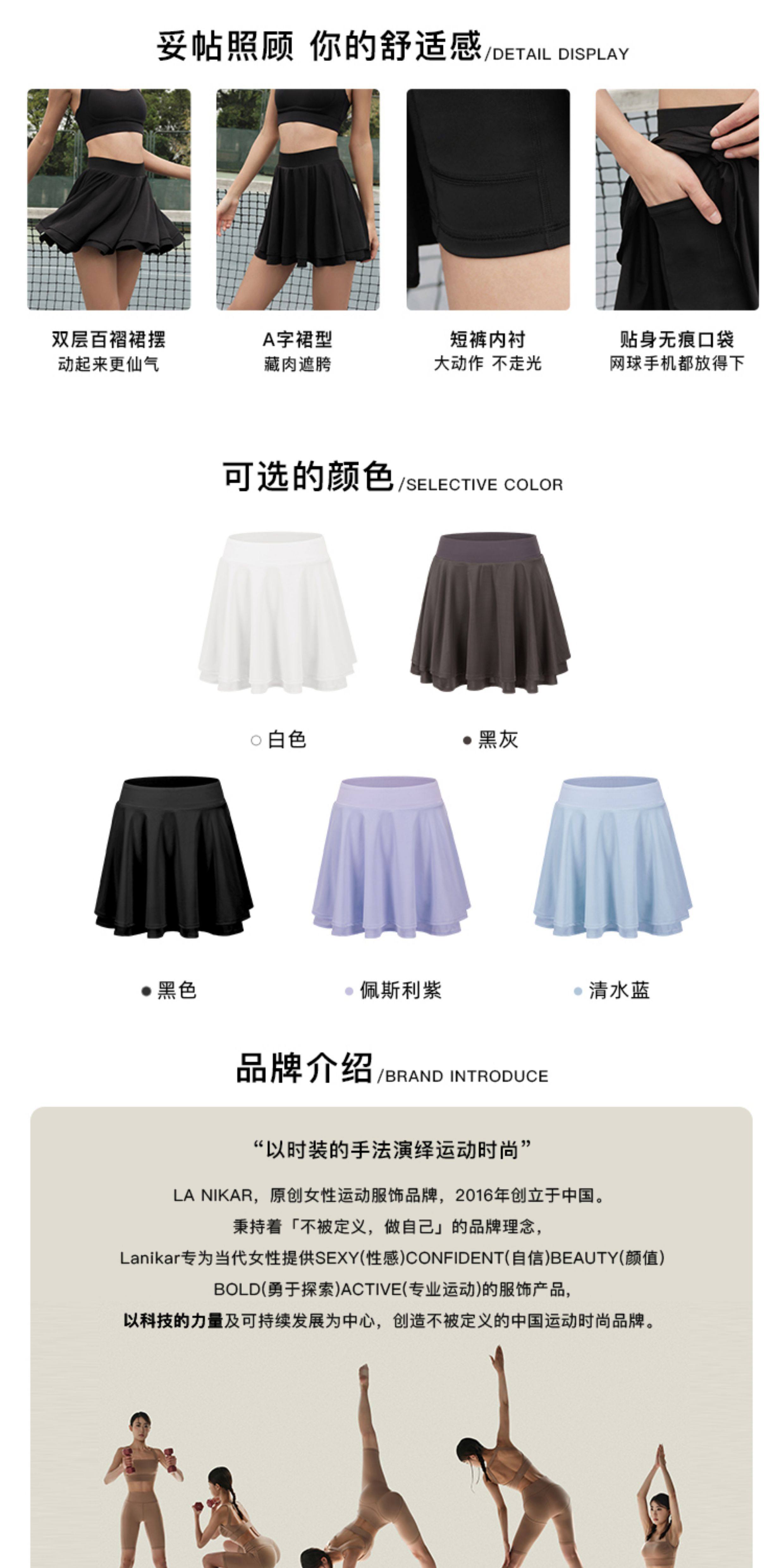 Lanikar Anti-Exposure Quick-Drying Tennis Skirt Badminton Sports Skirt Women's Yoga Running Pleated Fitness Skirt