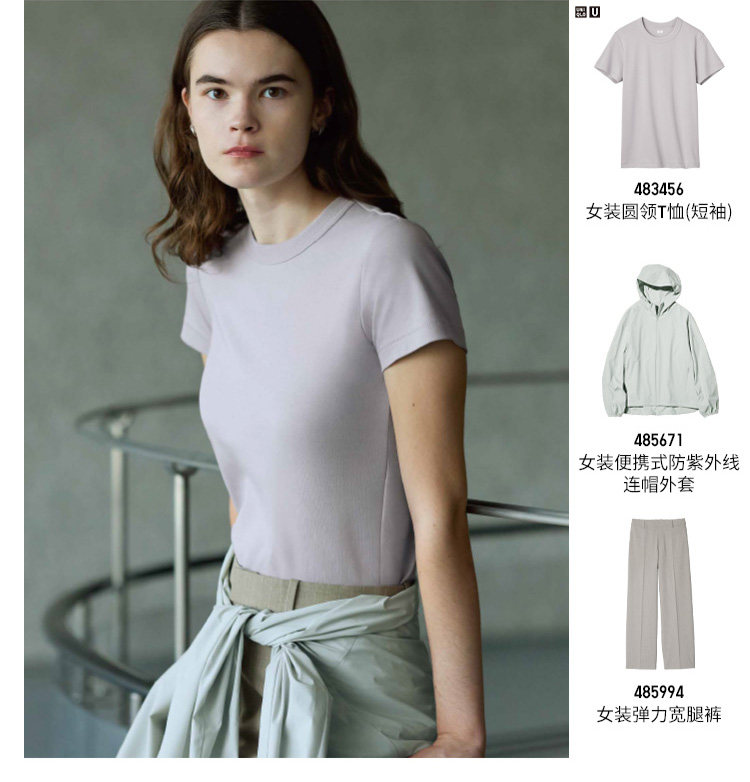 Uniqlo Collaboration Model/Women's Round Neck T-Shirt/Short-Sleeve Regular Shoulder Master t Plain Color 483456