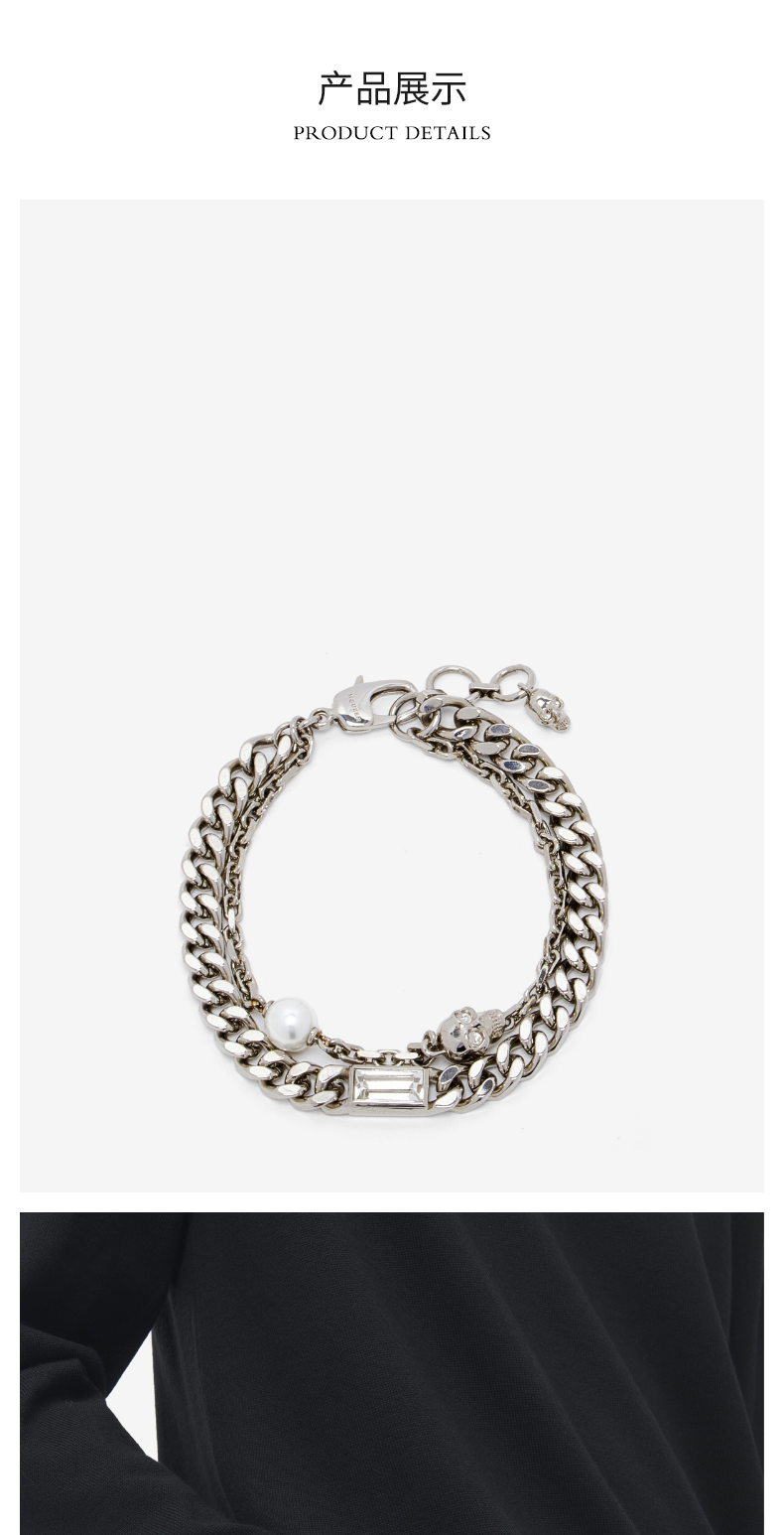 [Gift] Mcqueen Mcqueen Men's Skull&Pearl Layered Chain Bracelet